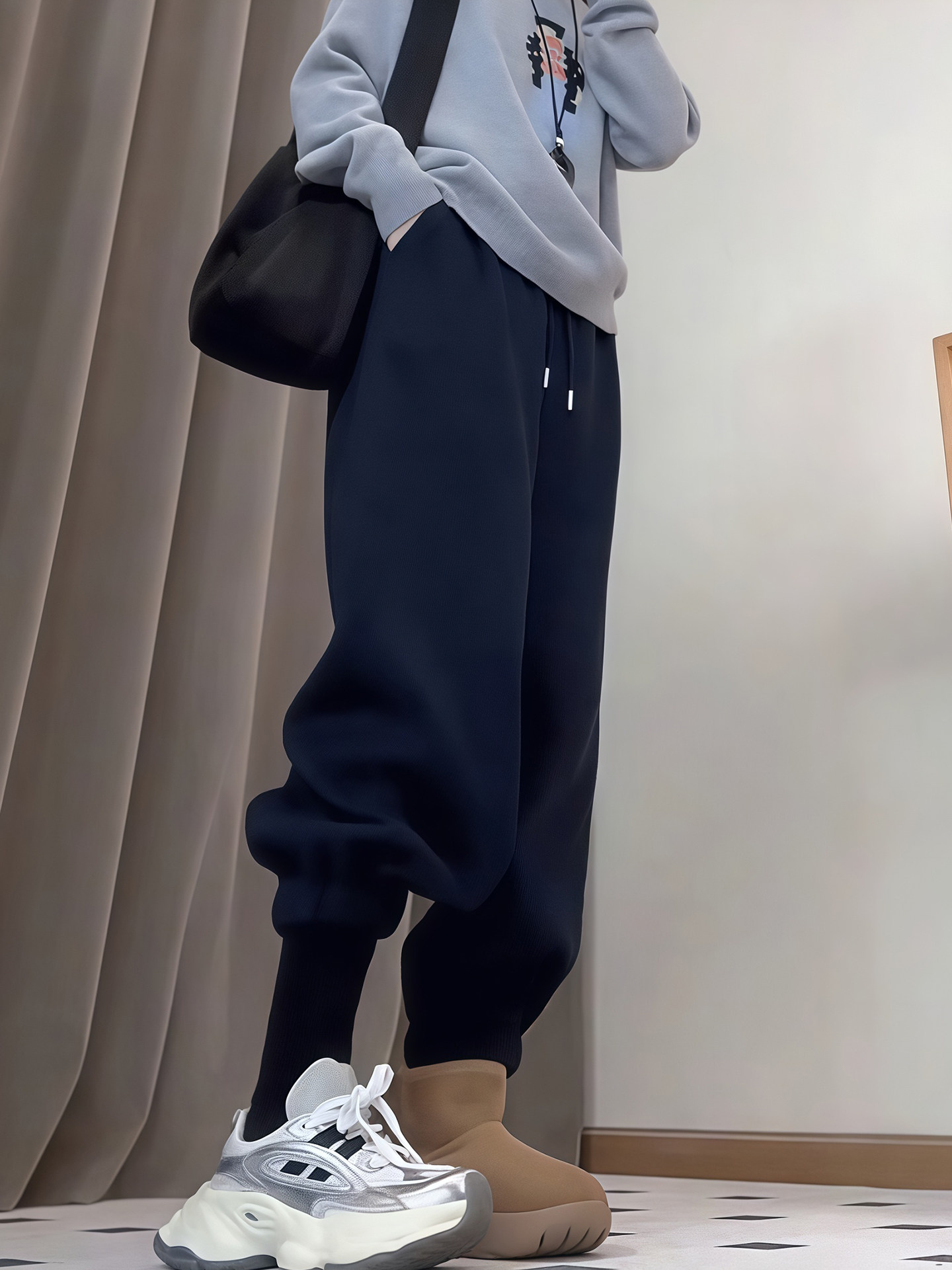 Korean version of fleece pants women's winter 2025 new thickened high-waisted legged sweatpants sweatpants sweatpants that are popular this year