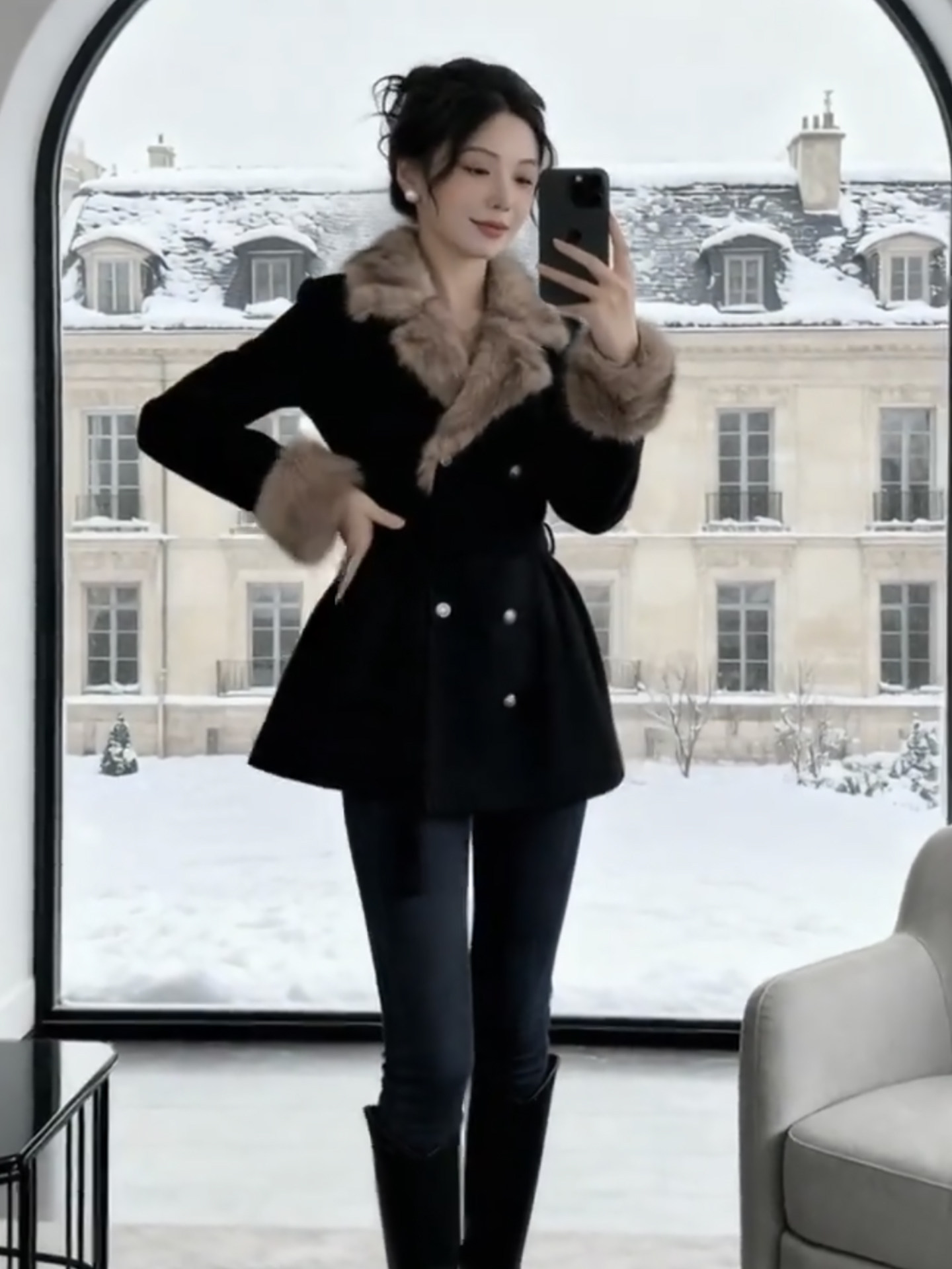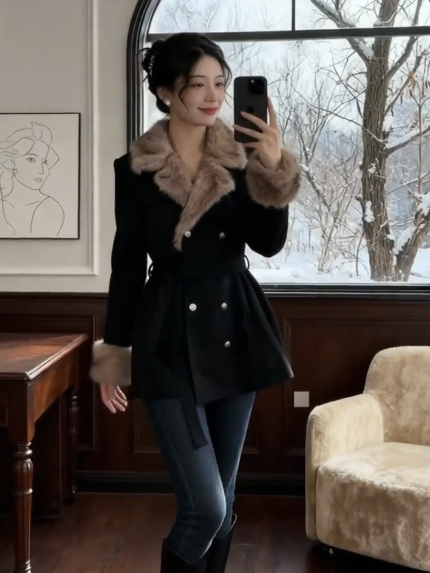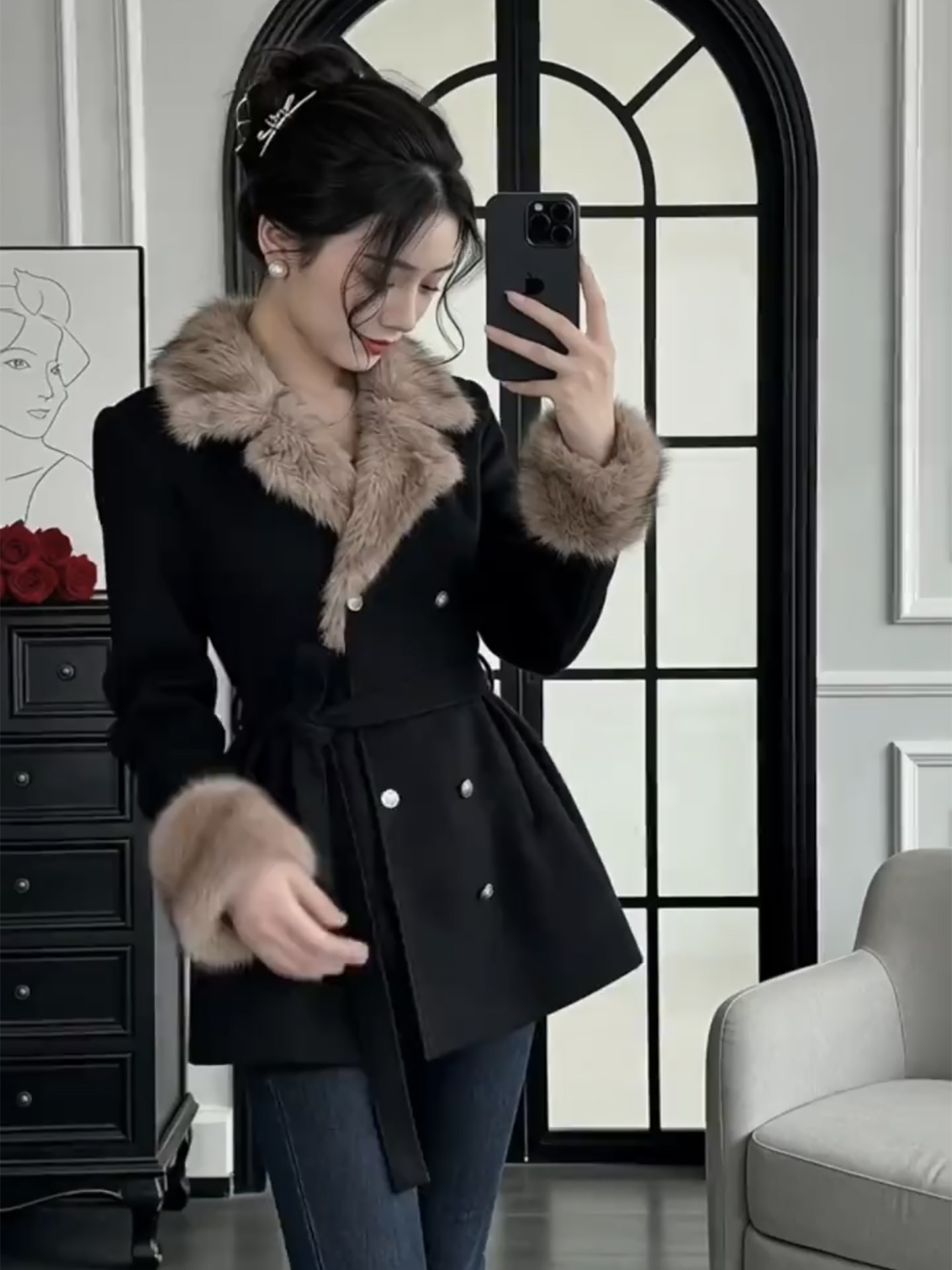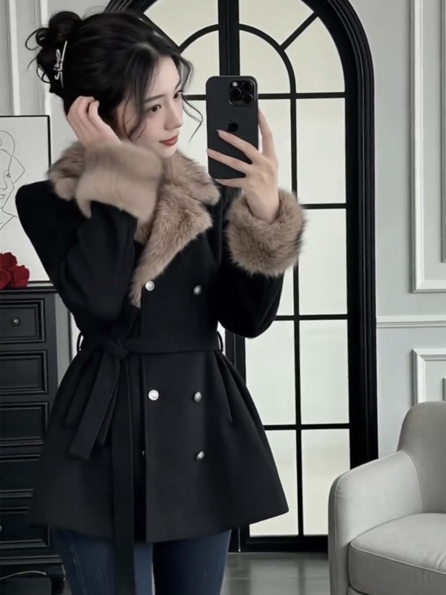Daughter's style woolen jacket women's autumn and winter new high-end temperament waist slimming woolen coat dress