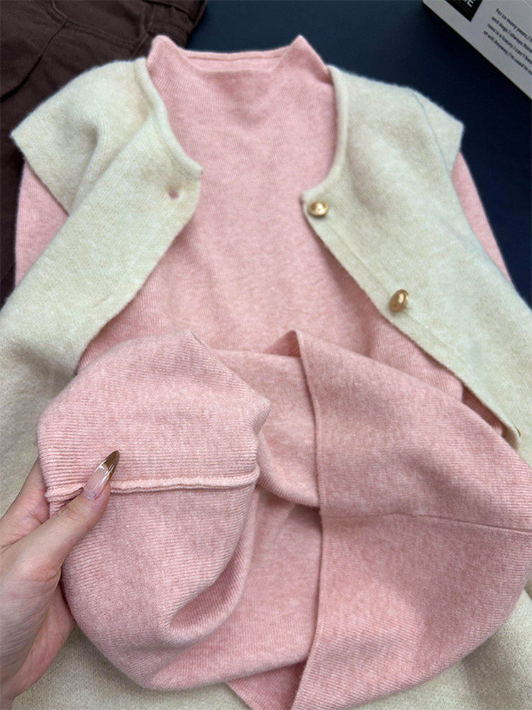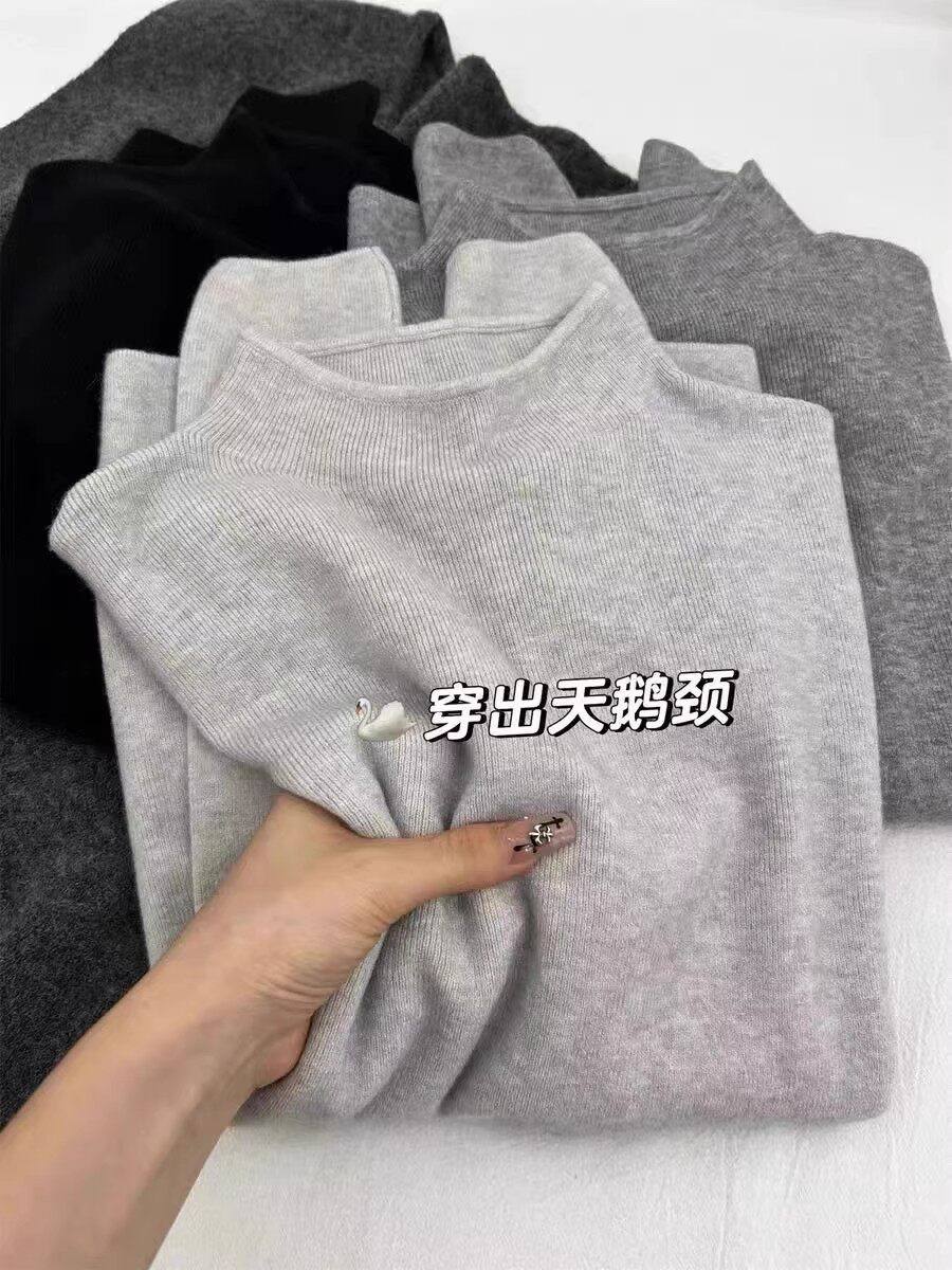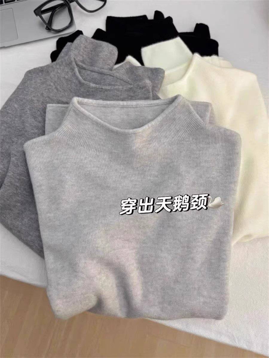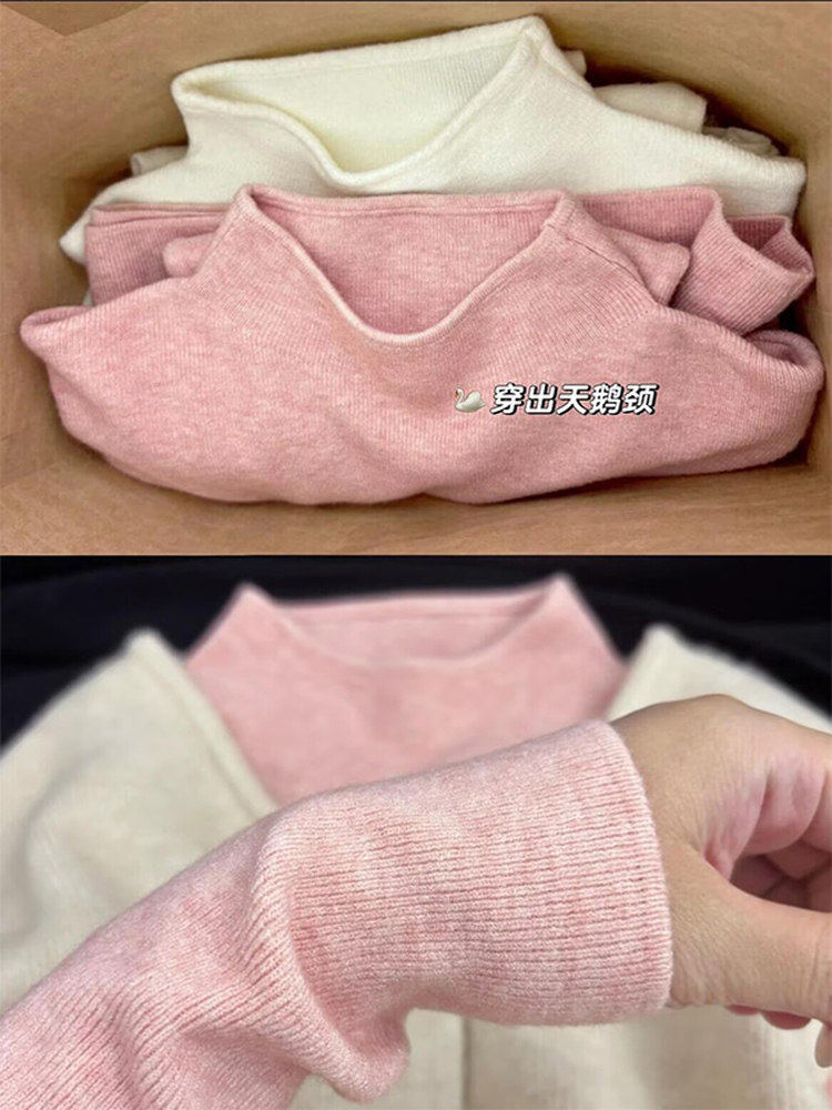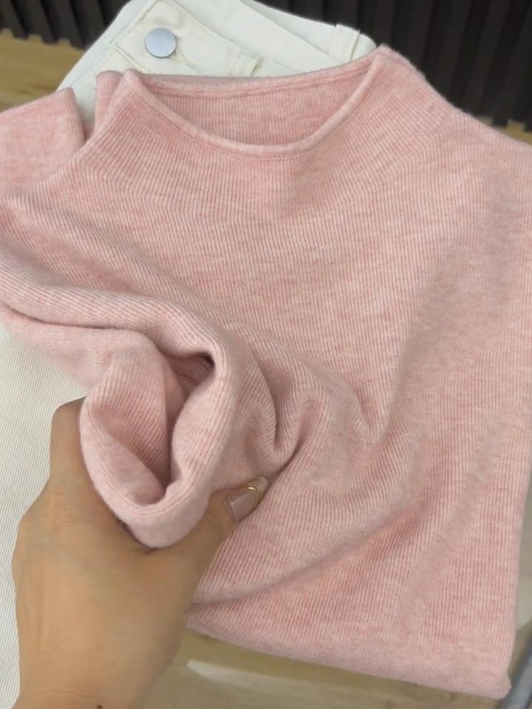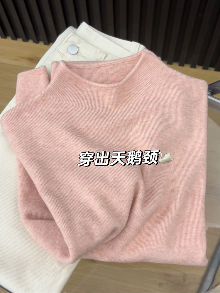 Pink semi-turtleneck inner sweater knitted sweater women's 2025 winter new unique and beautiful age-reducing base layer top