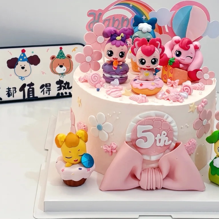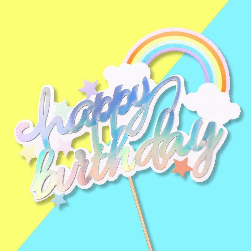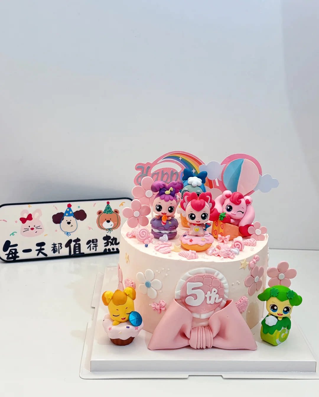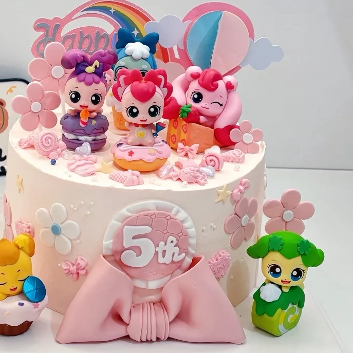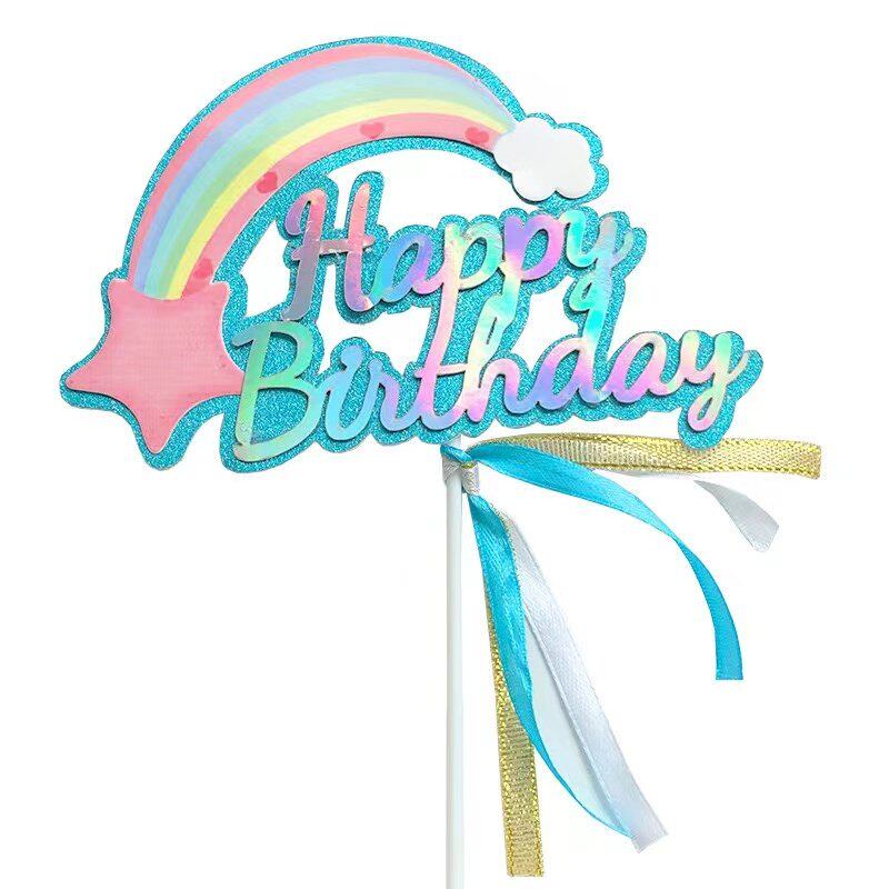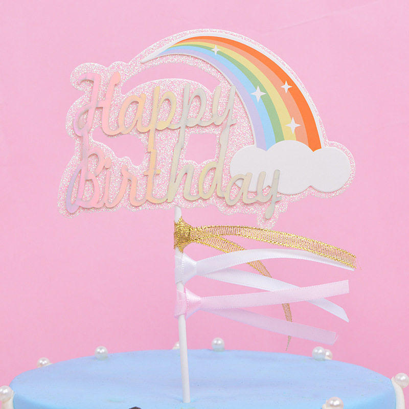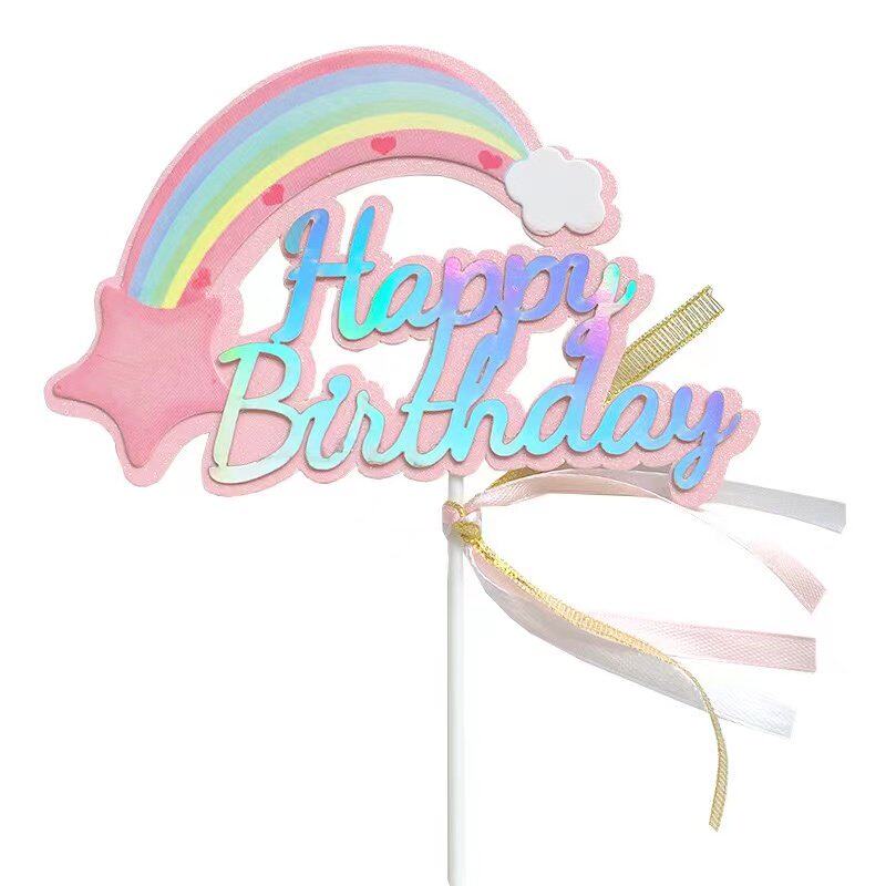 Cartoon wonderful cute little girl birthday cake decoration rainbow ornament wonderful little fairy happy birthday insert
