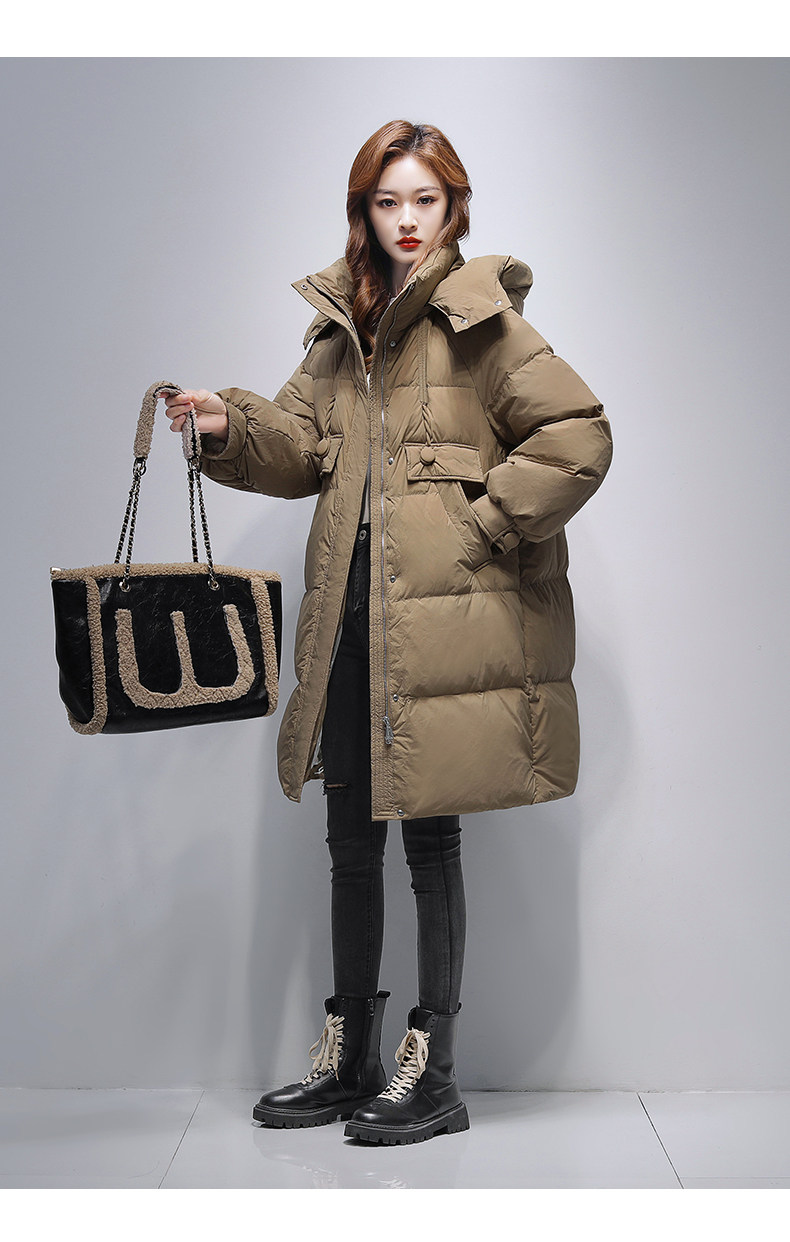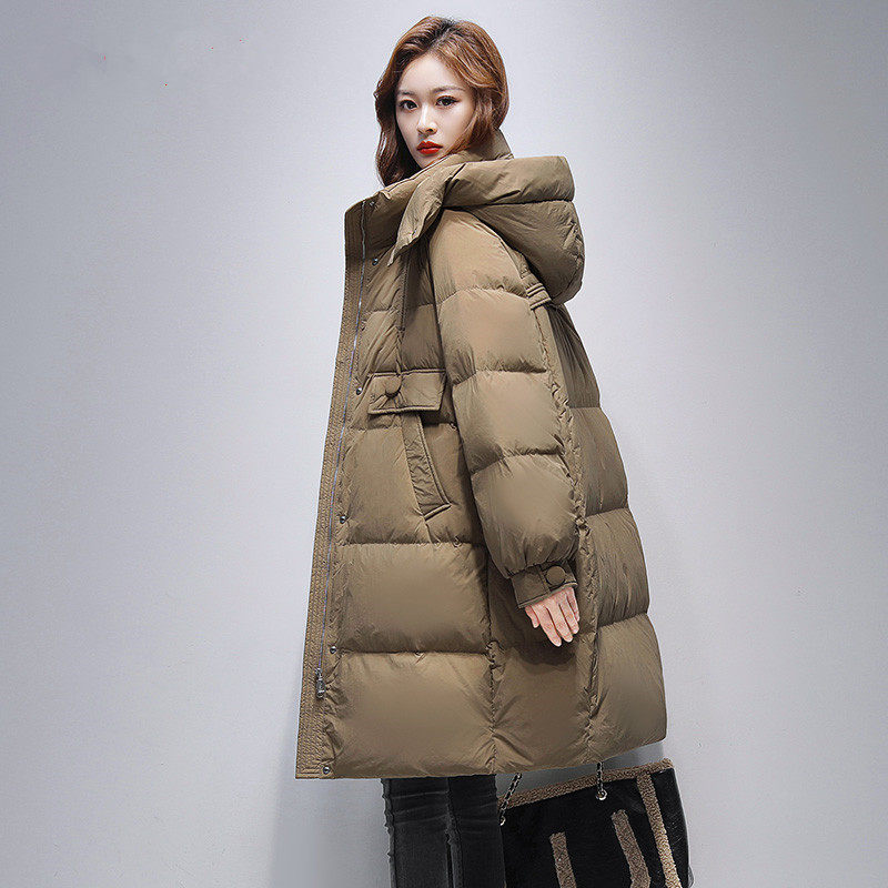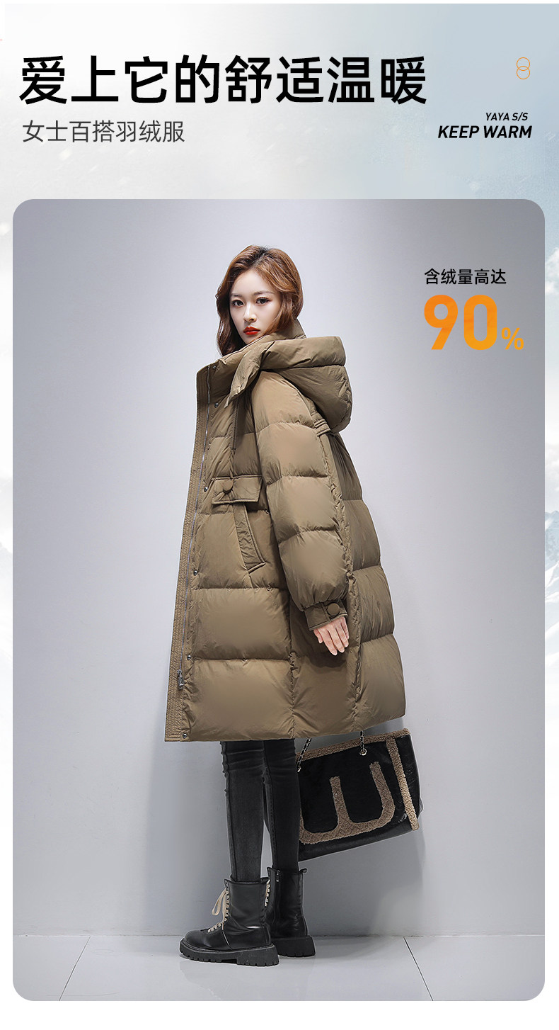 Duck duck down jacket women's mid-length over-the-knee thickening 2025 winter new fashion casual brand warm jacket trend
