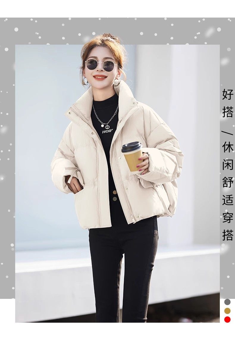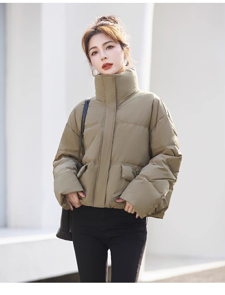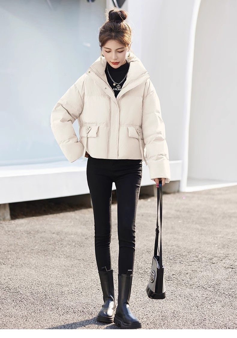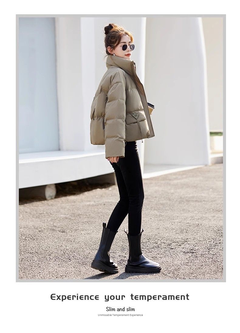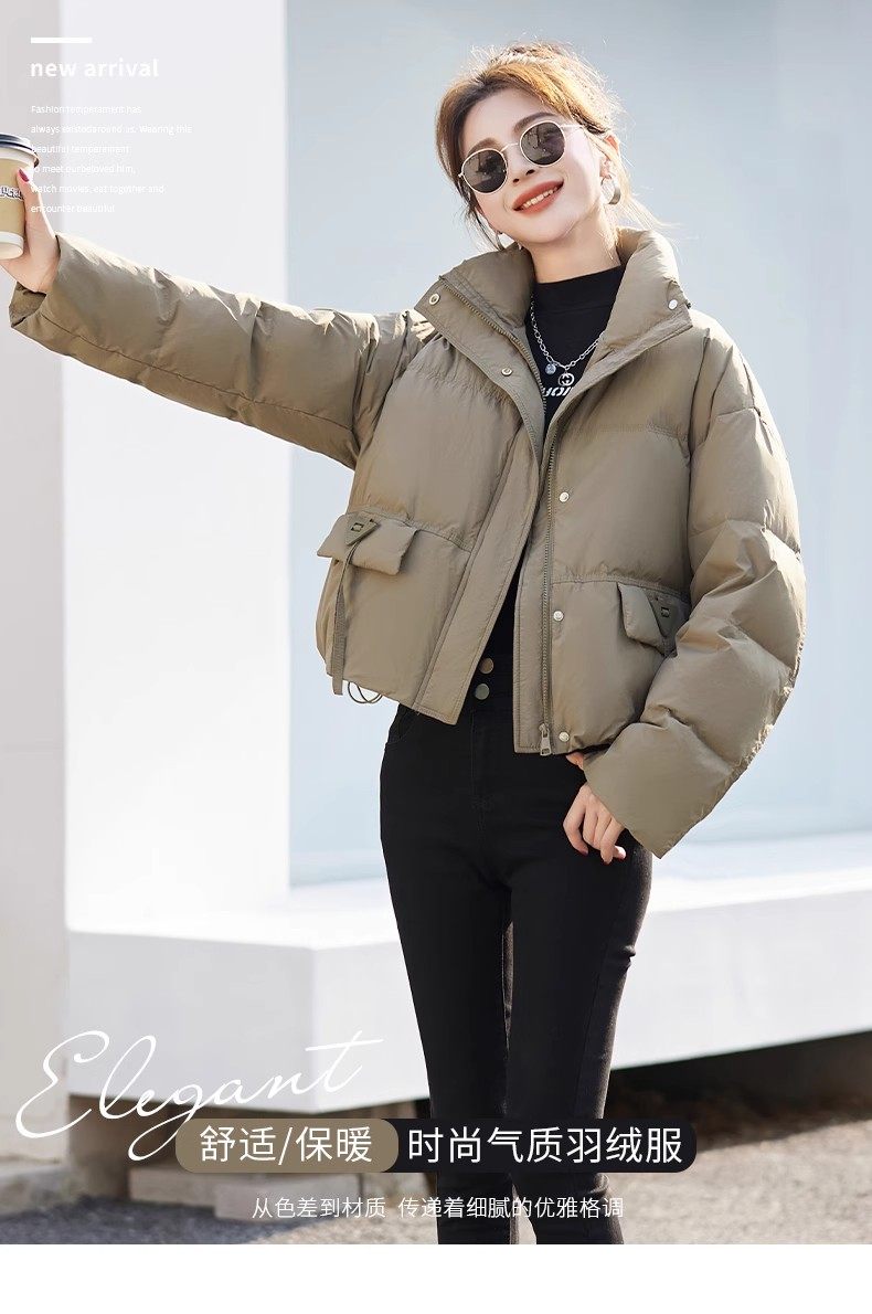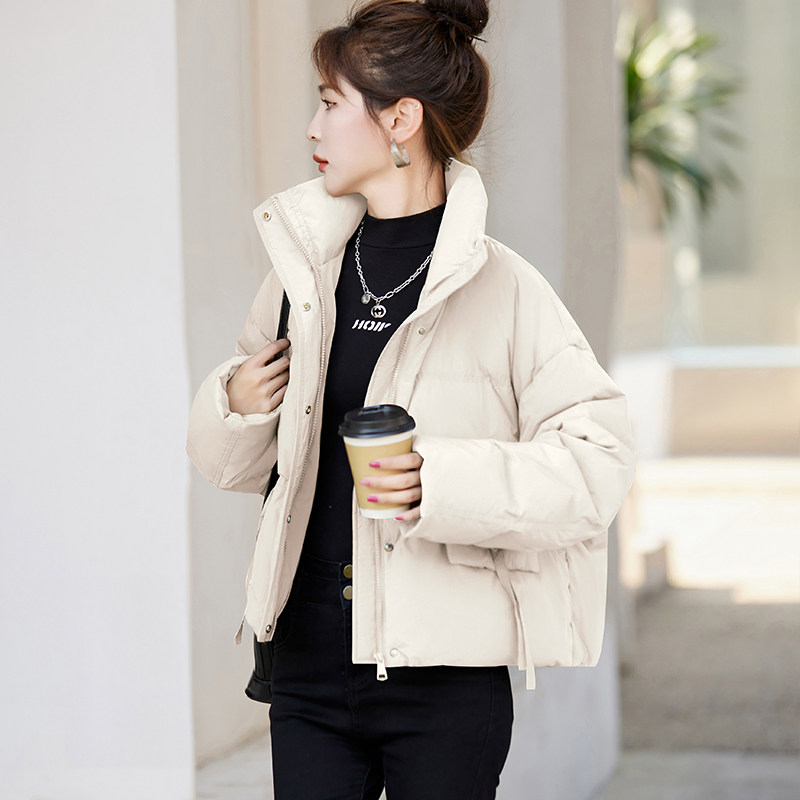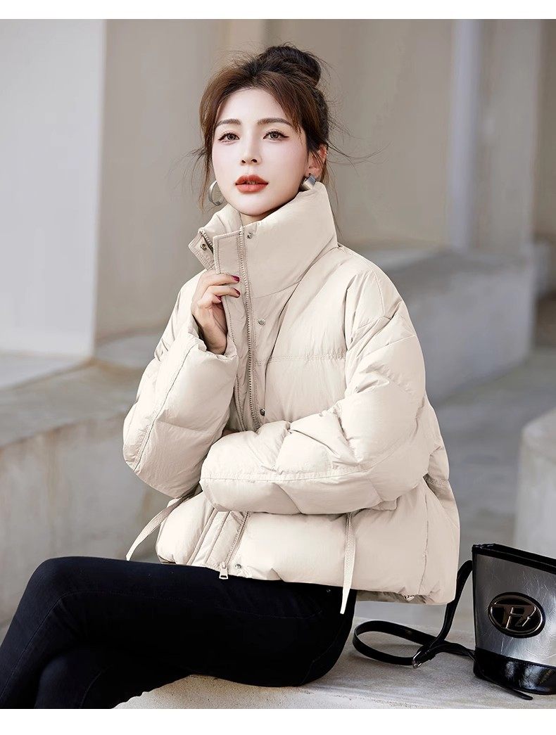 Fashionable small warm down jacket trend 2025 new European feminine temperament short white duck down stand-up collar bread jacket