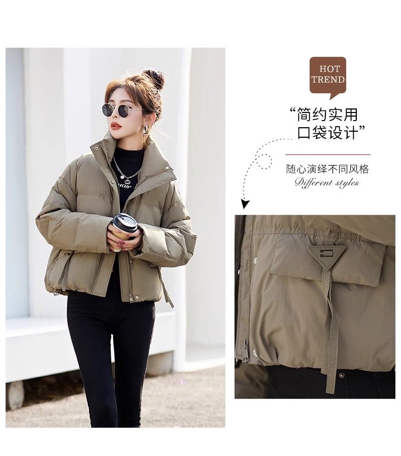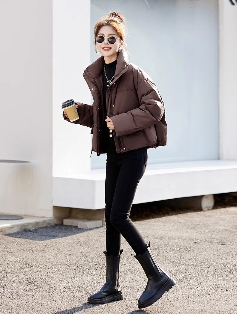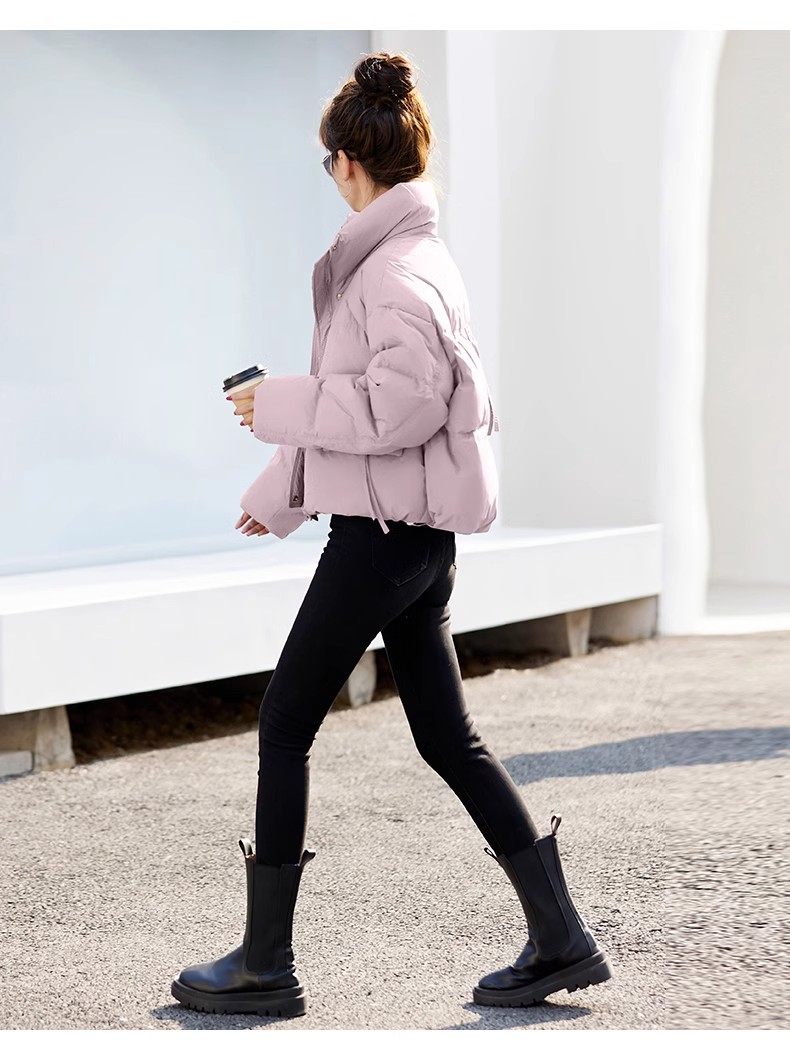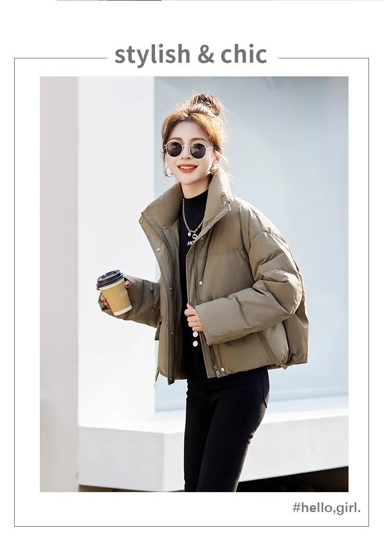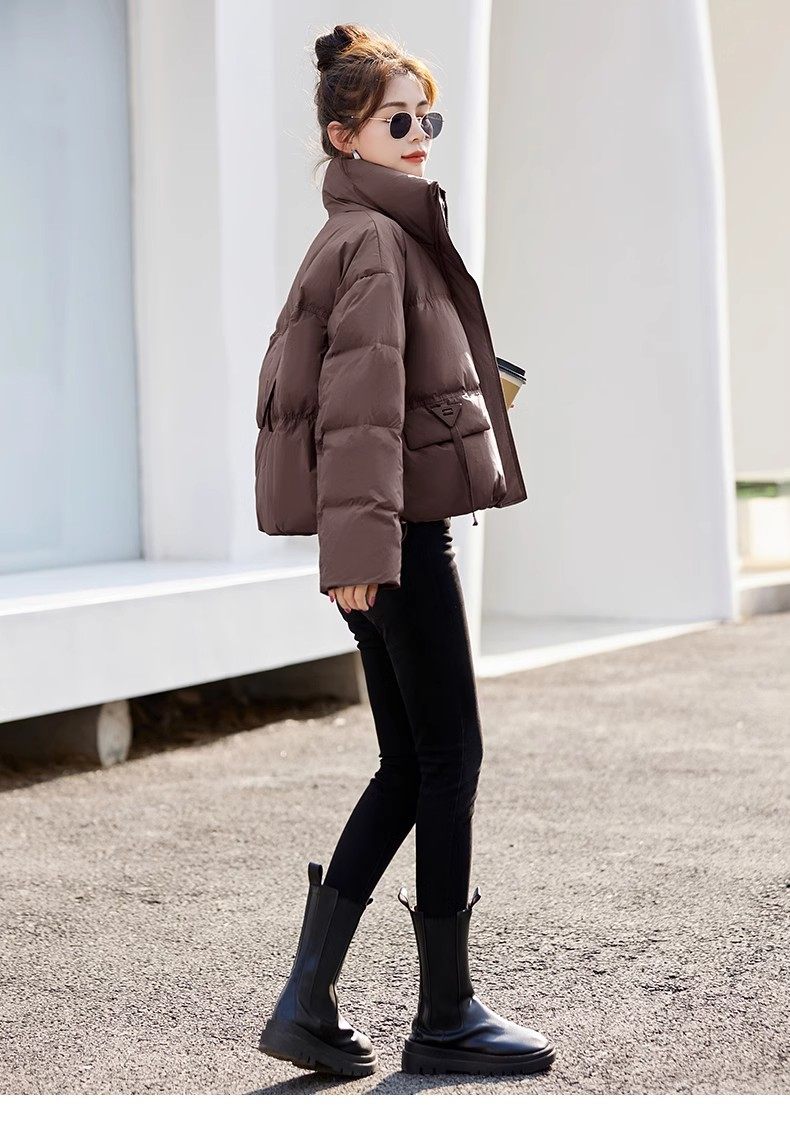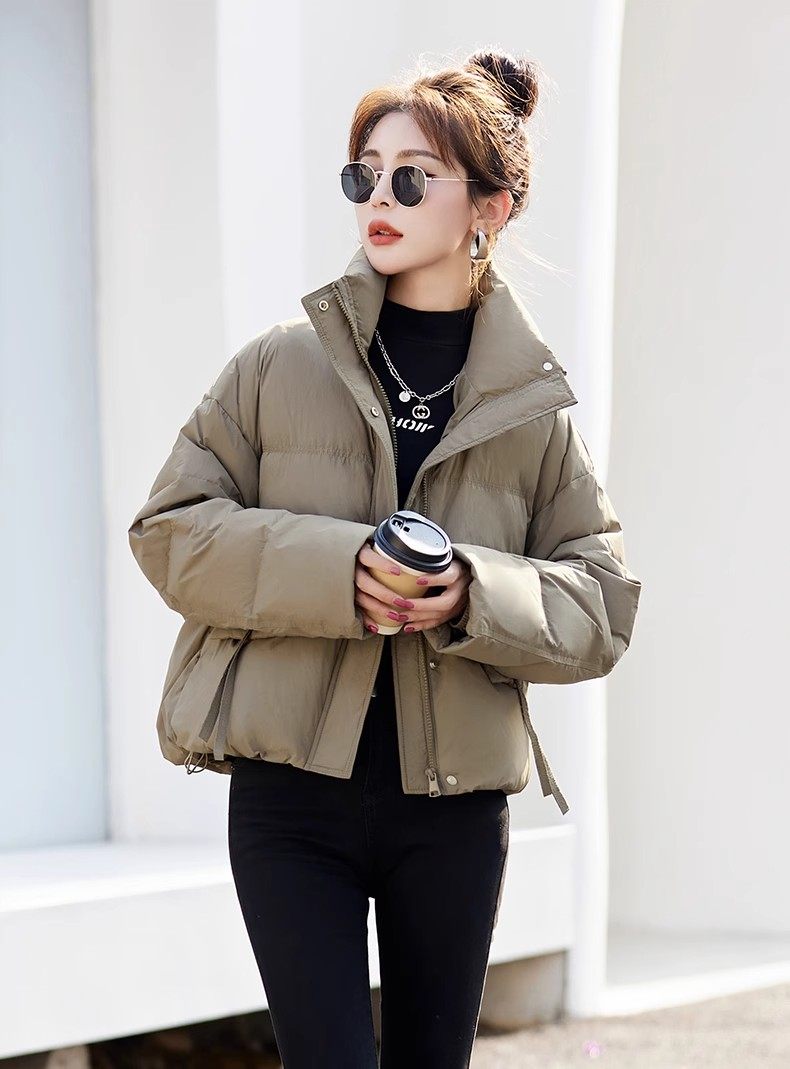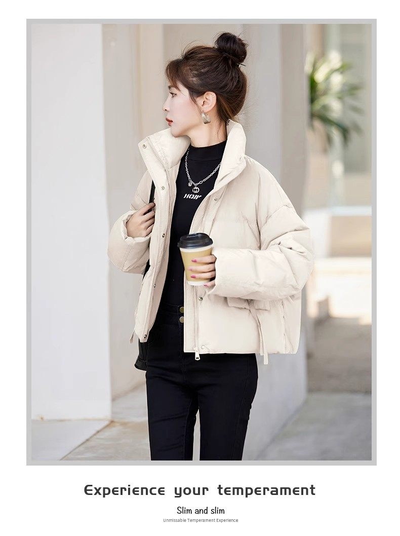 Fashionable small warm down jacket trend 2025 new European feminine temperament short white duck down stand-up collar bread jacket