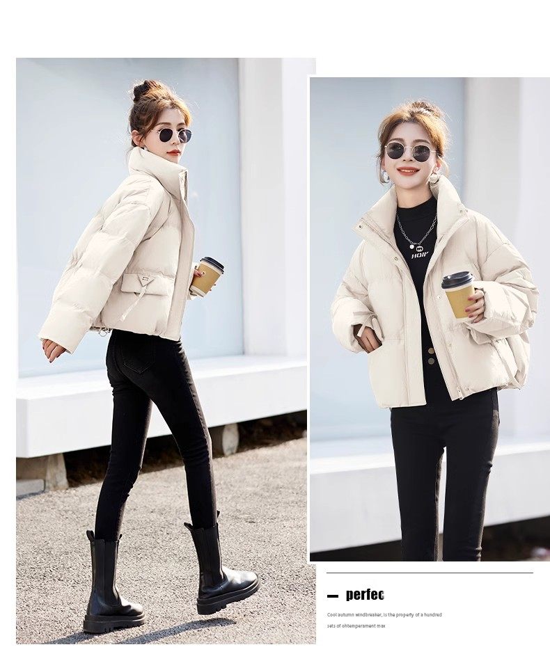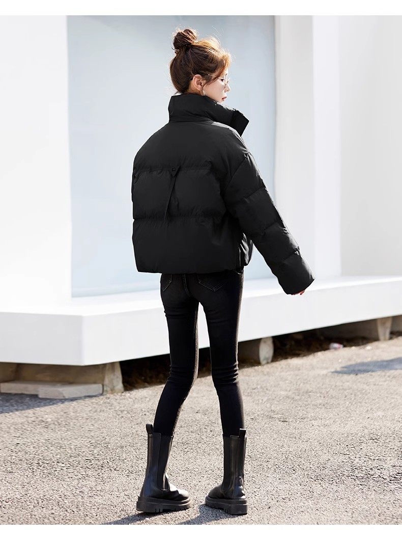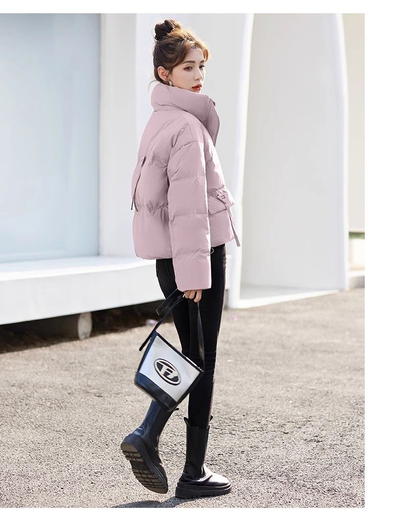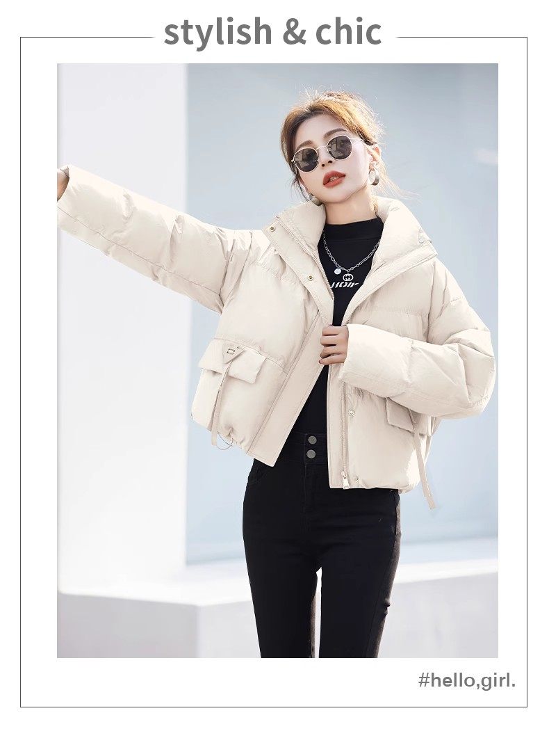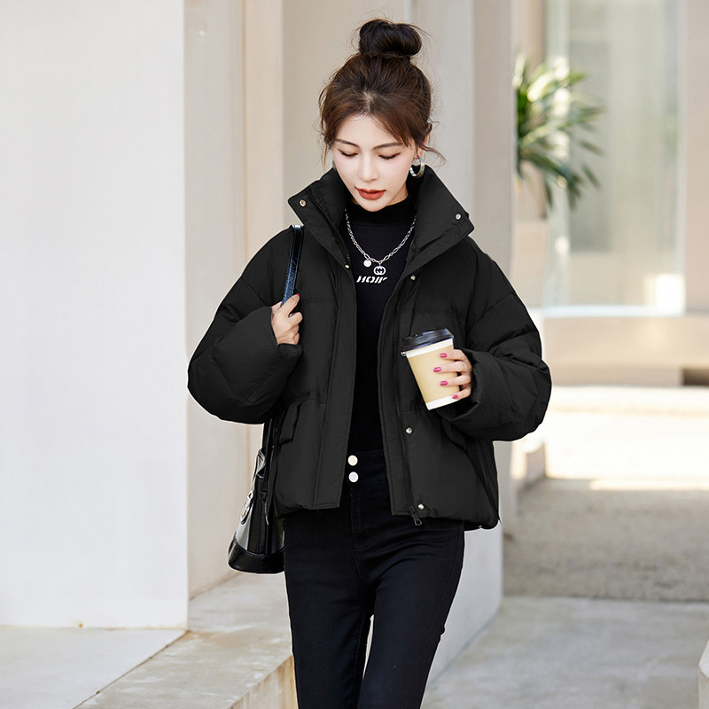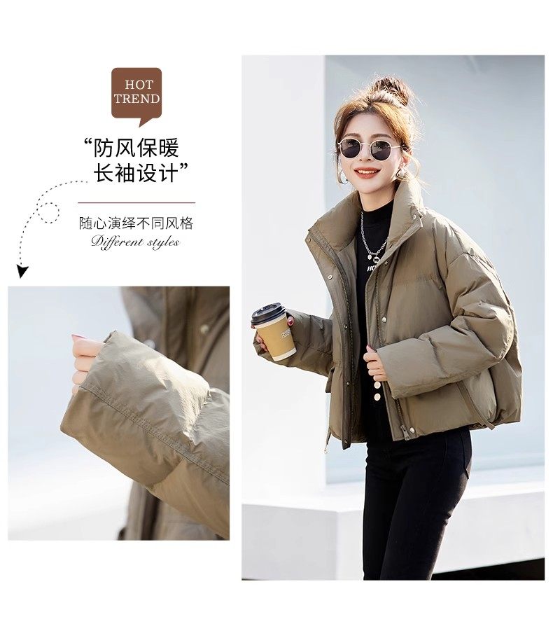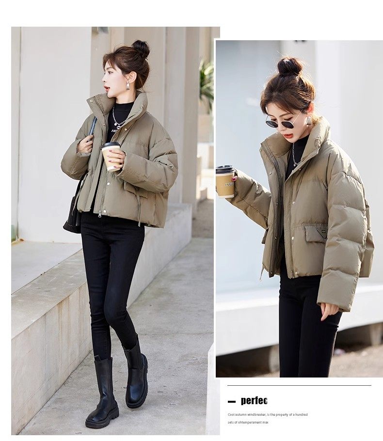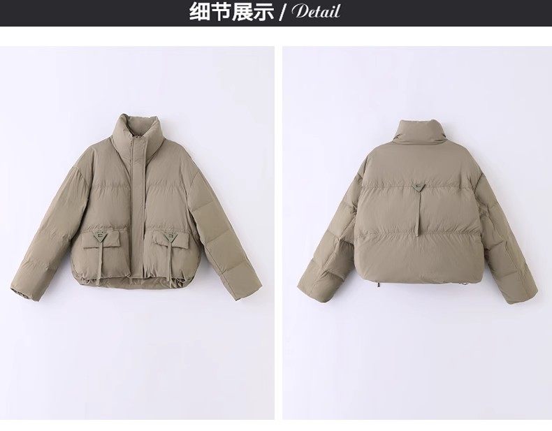 Fashionable small warm down jacket trend 2025 new European feminine temperament short white duck down stand-up collar bread jacket