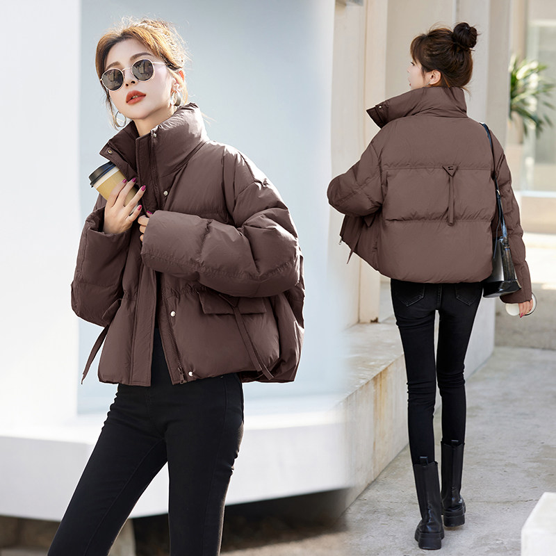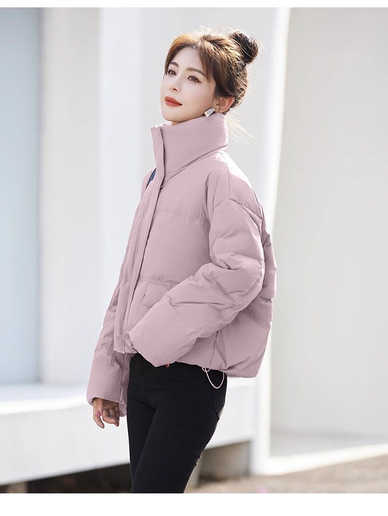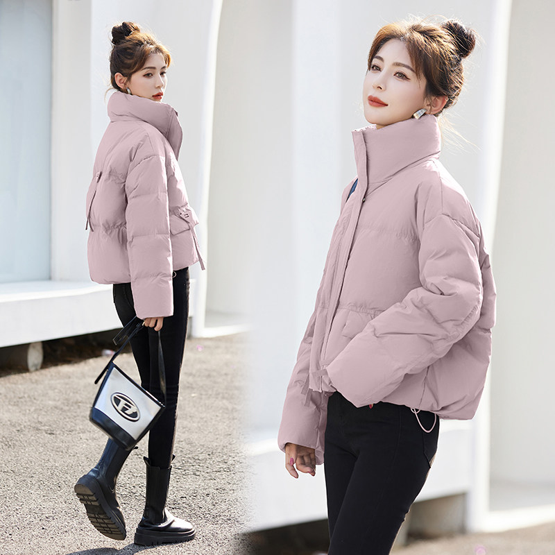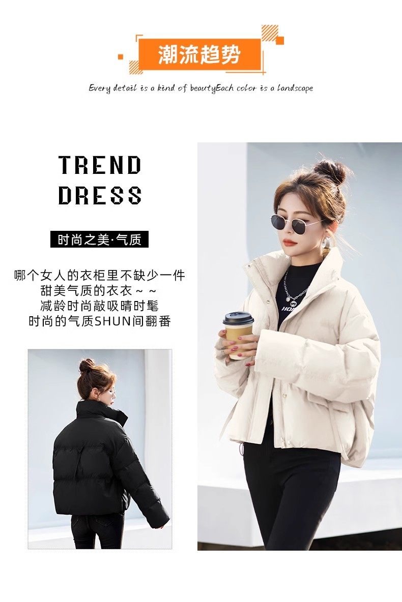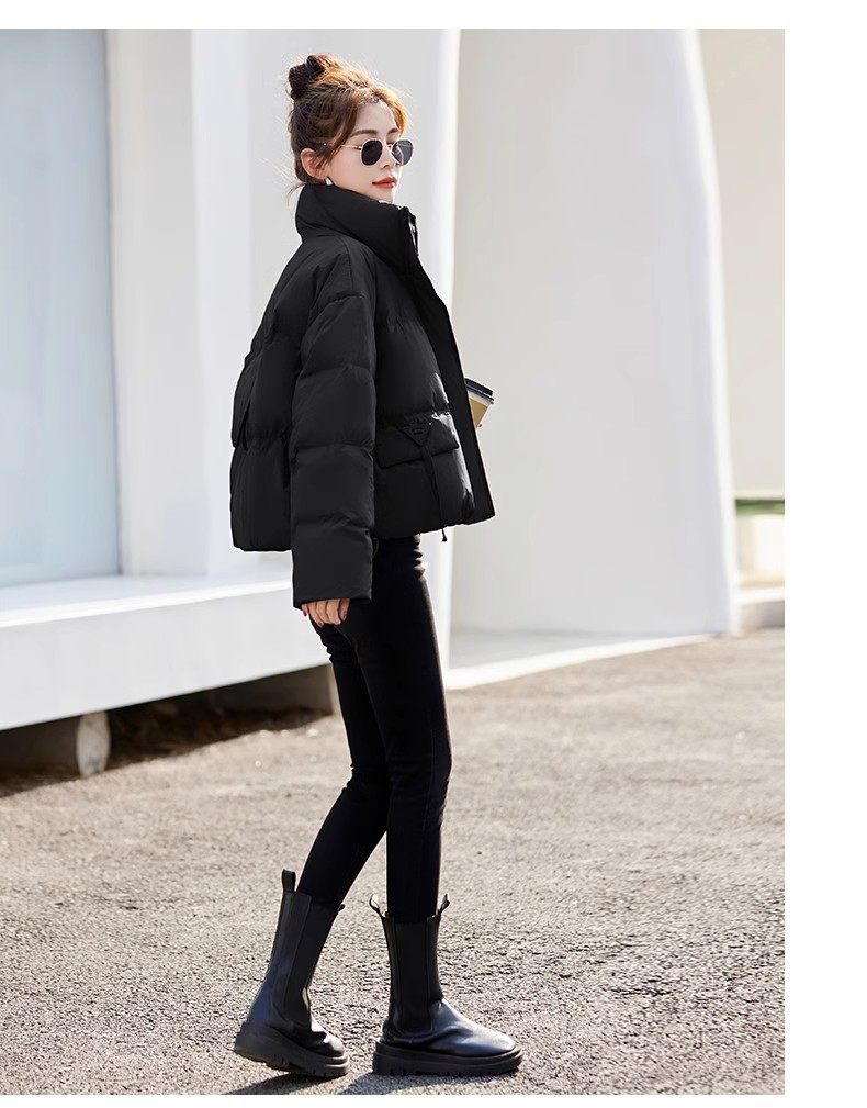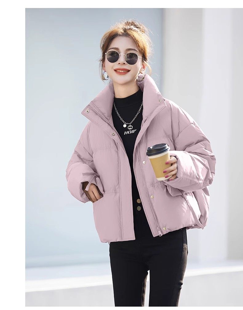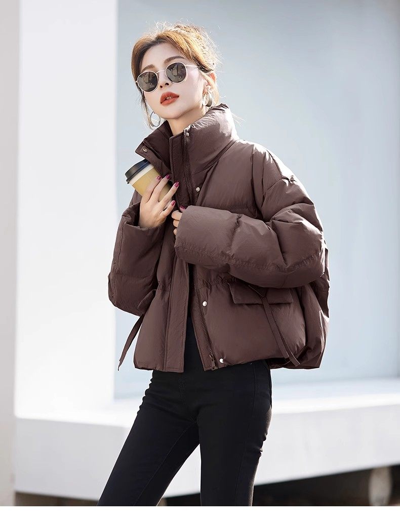 Fashionable small warm down jacket trend 2025 new European feminine temperament short white duck down stand-up collar bread jacket