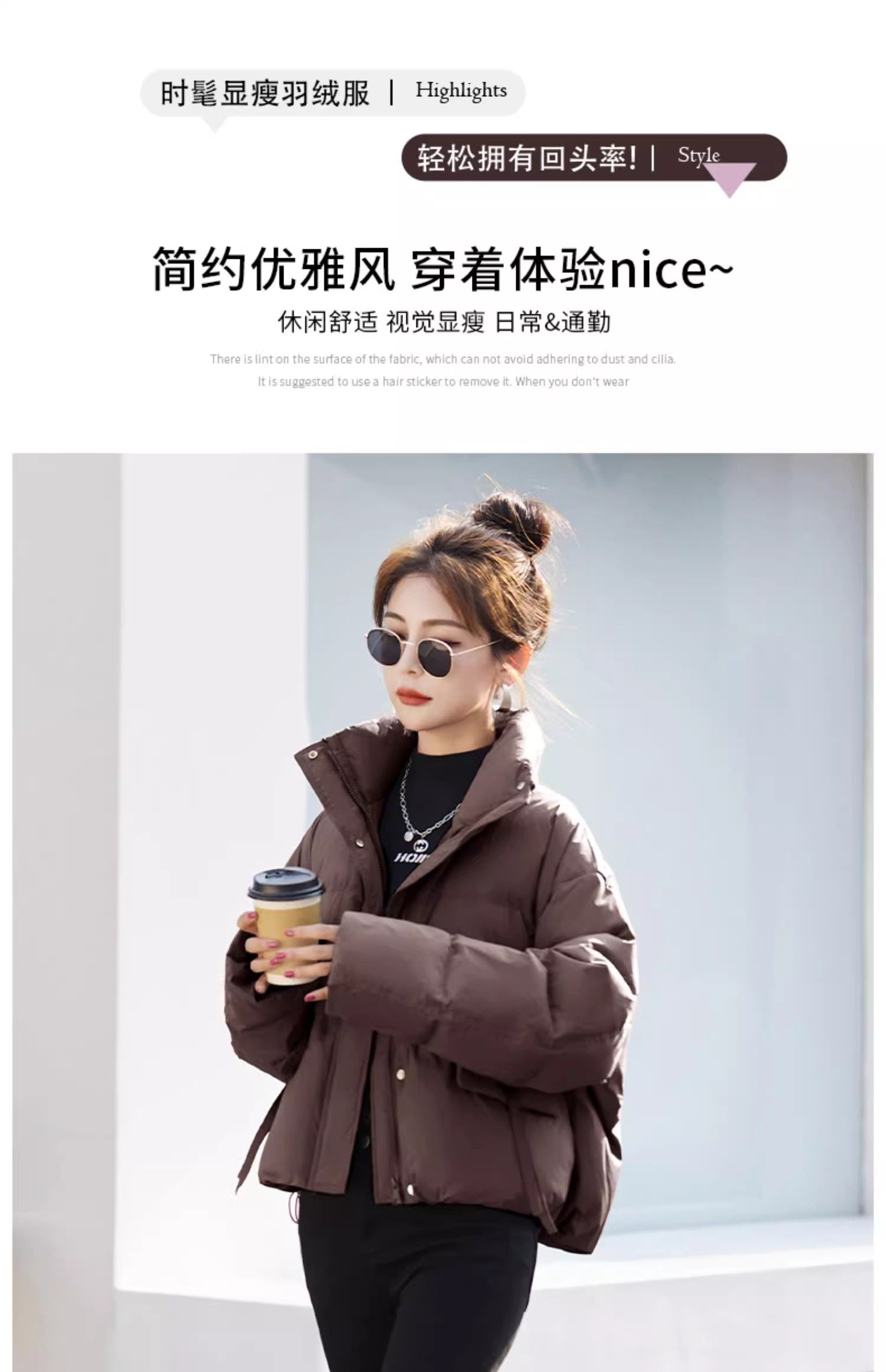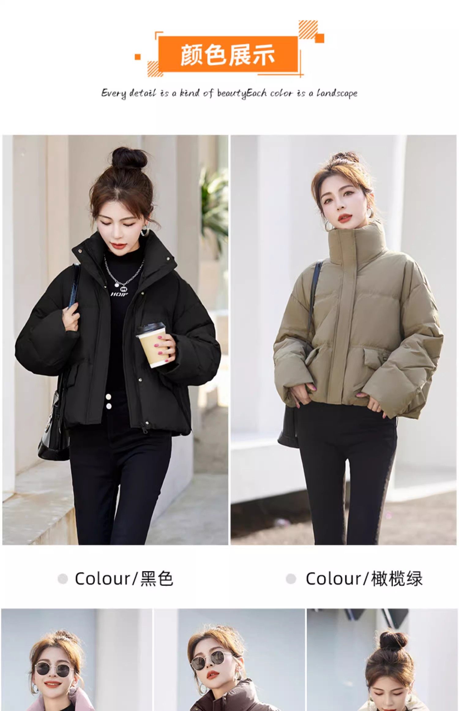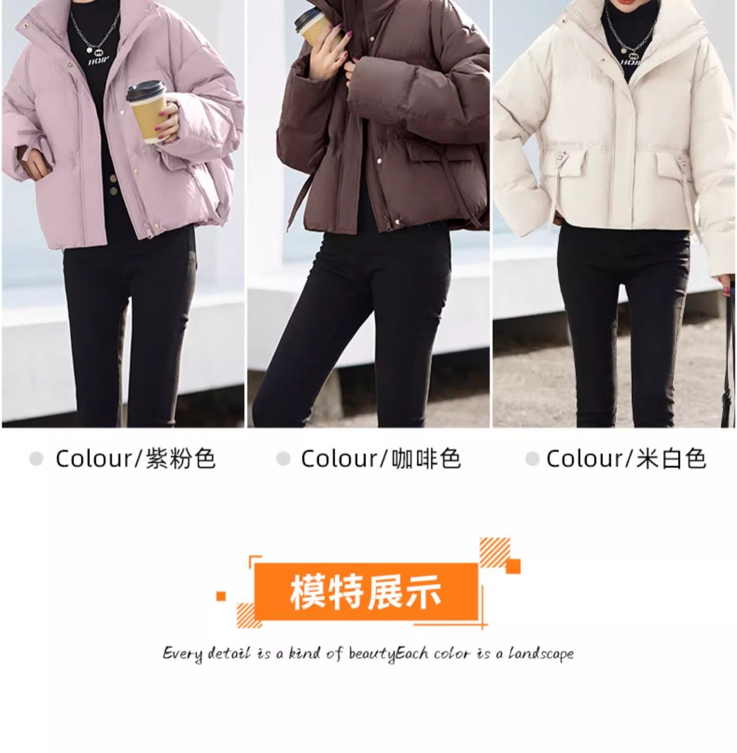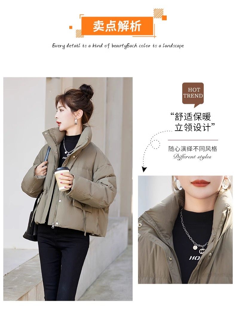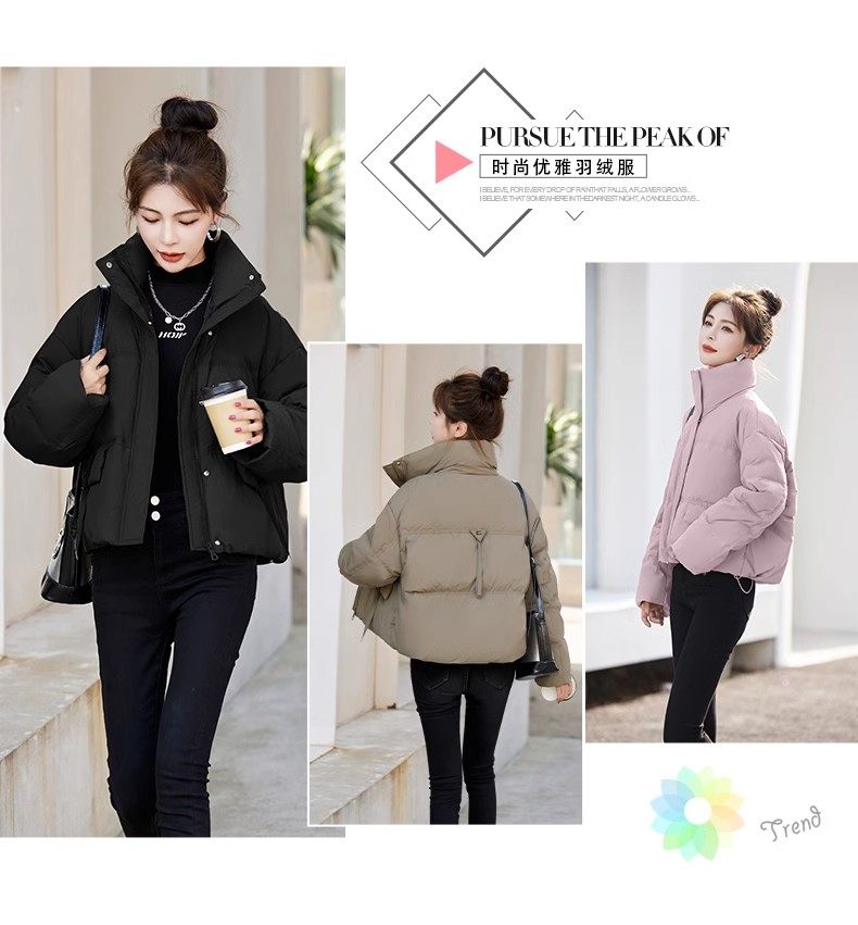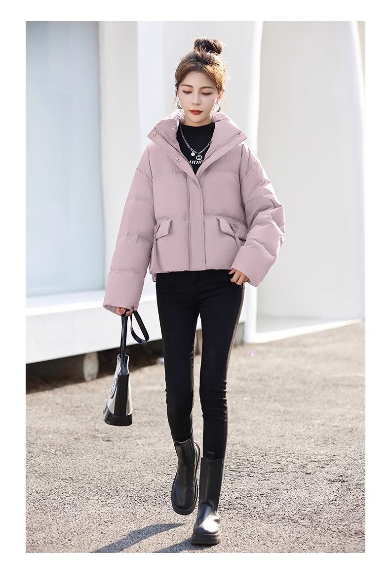 Fashionable small warm down jacket trend 2025 new European feminine temperament short white duck down stand-up collar bread jacket