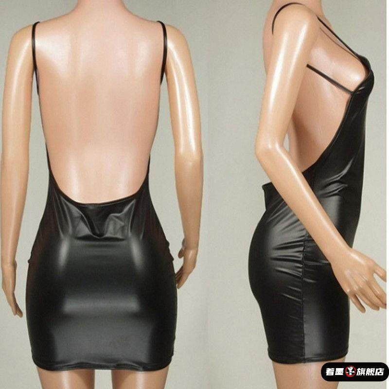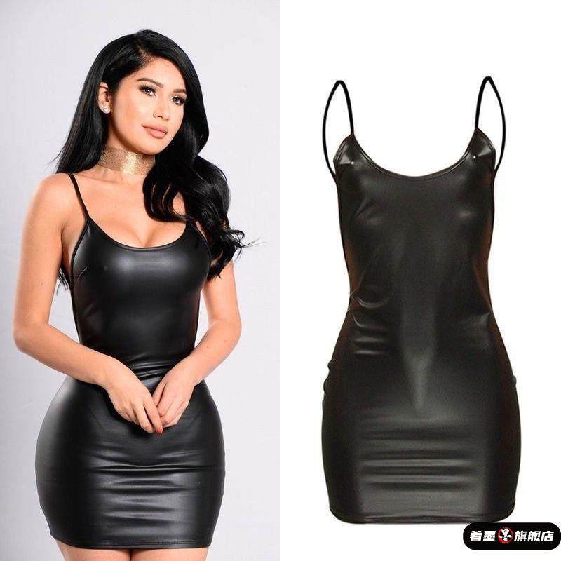 Tight hip-hugging leather skirt, new ins large size patent leather, high stretch suspender sleeveless backless skirt, short outside