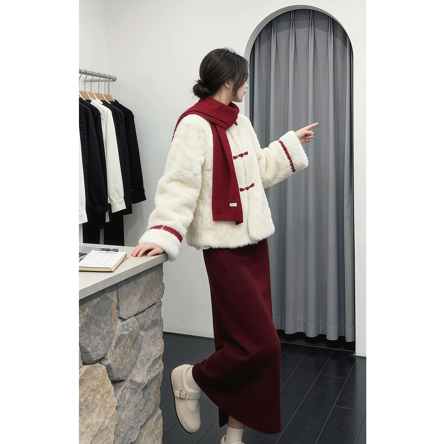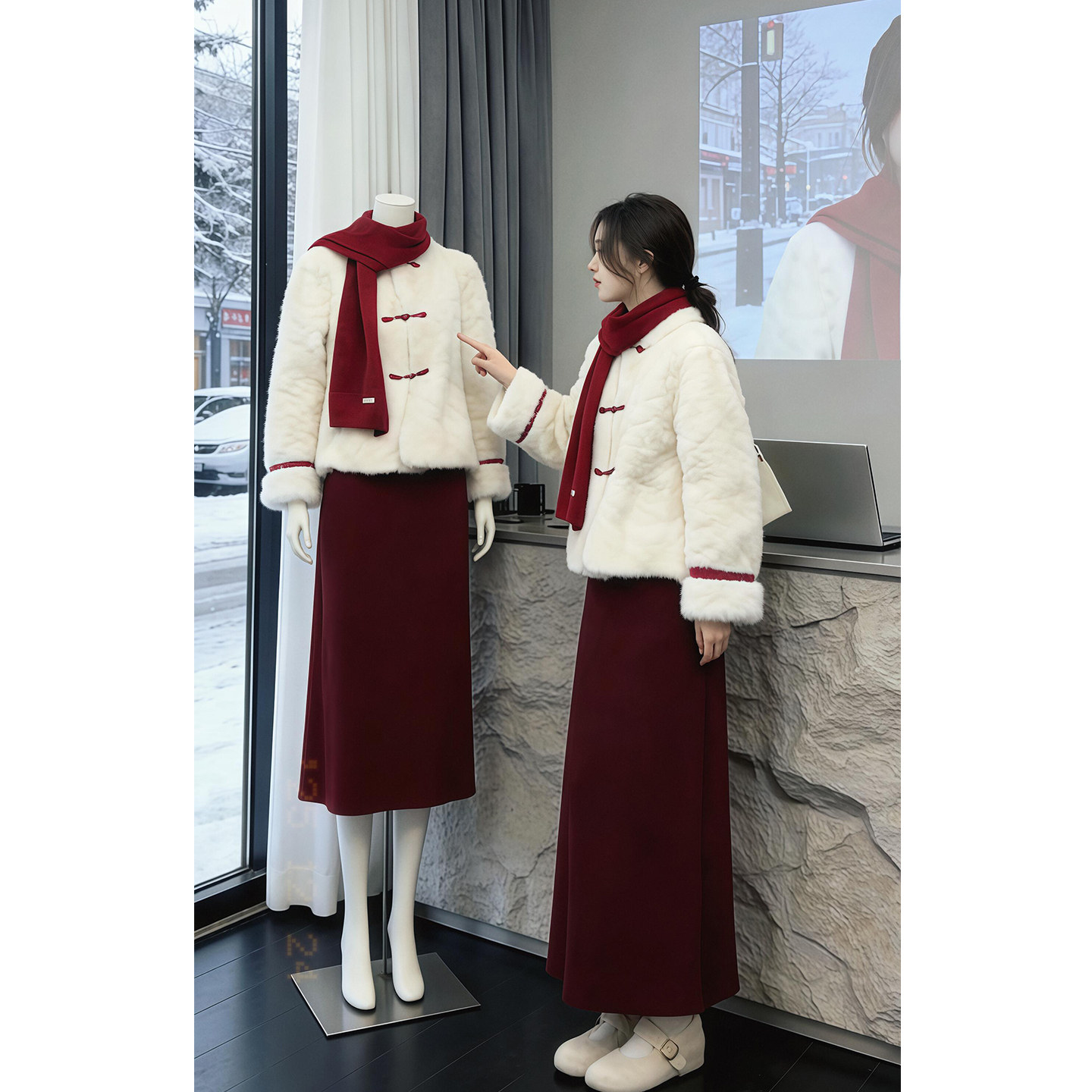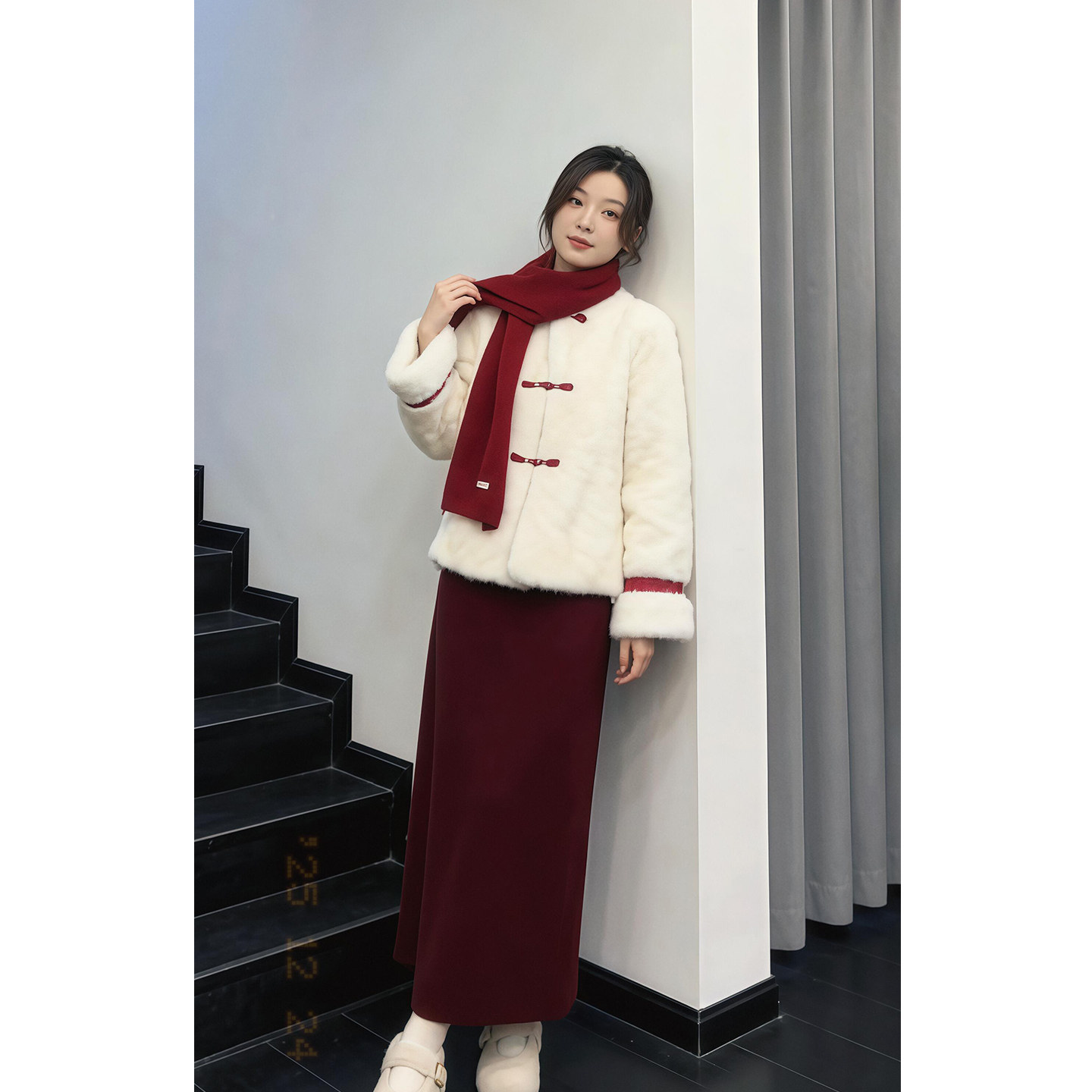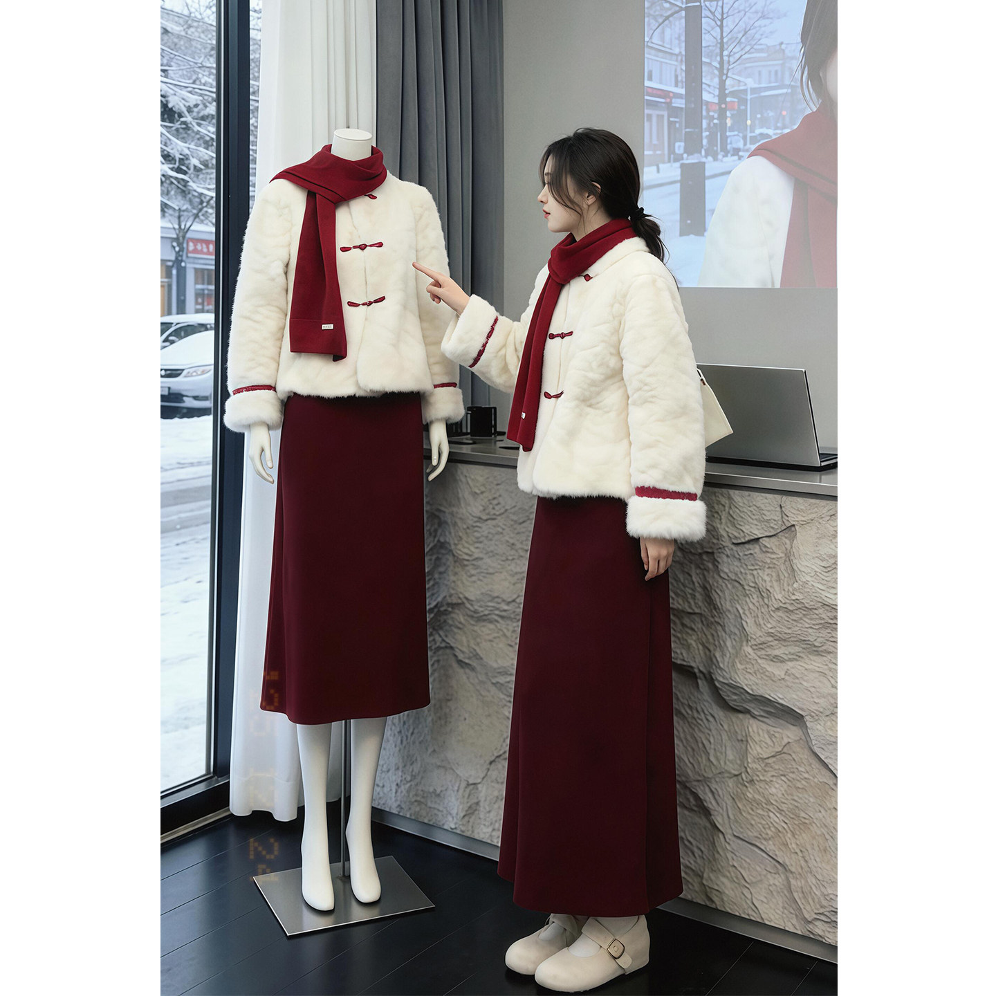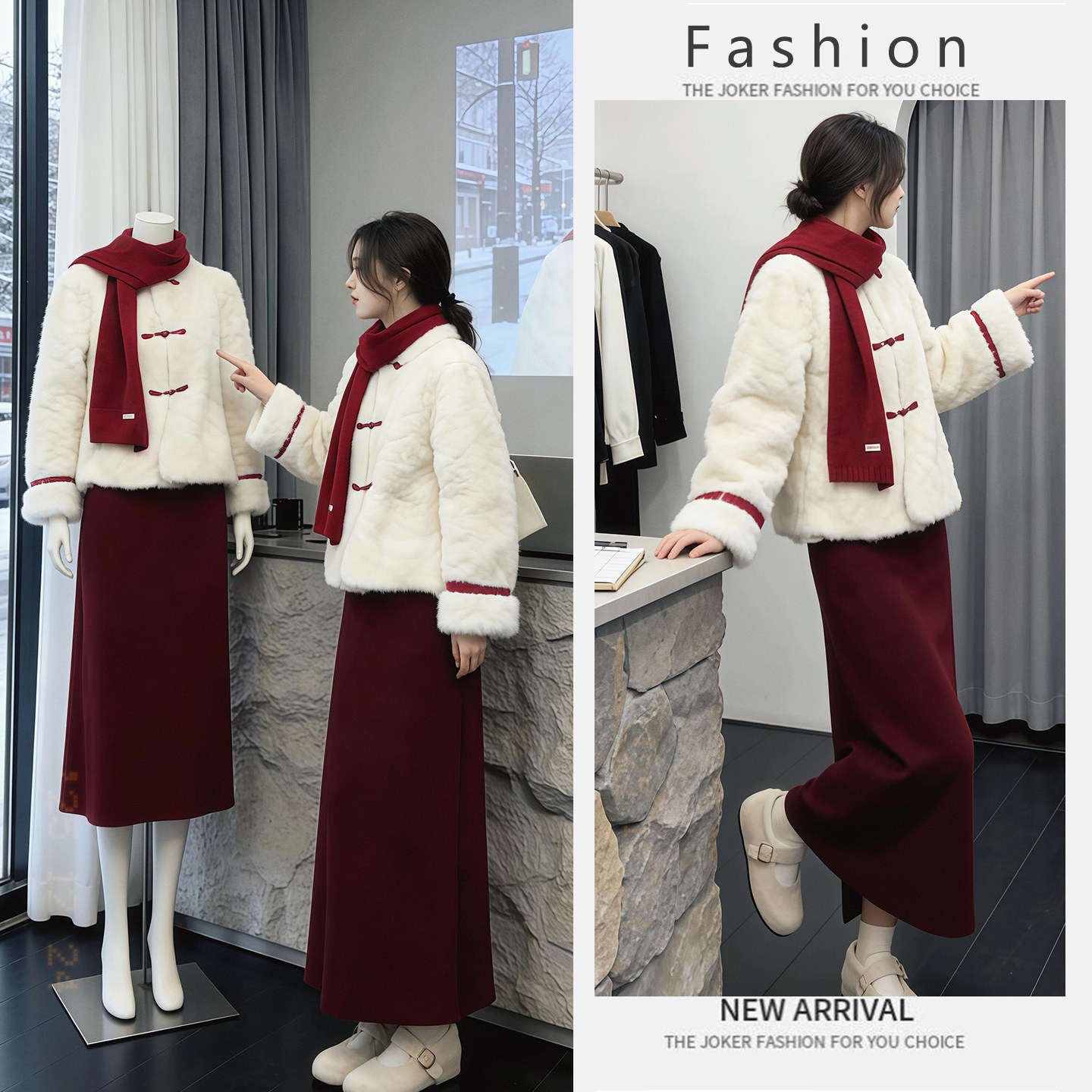 New Year's robe wears a full set of sweet and warm fur jacket tops, women's versatile skirts, two-piece suits