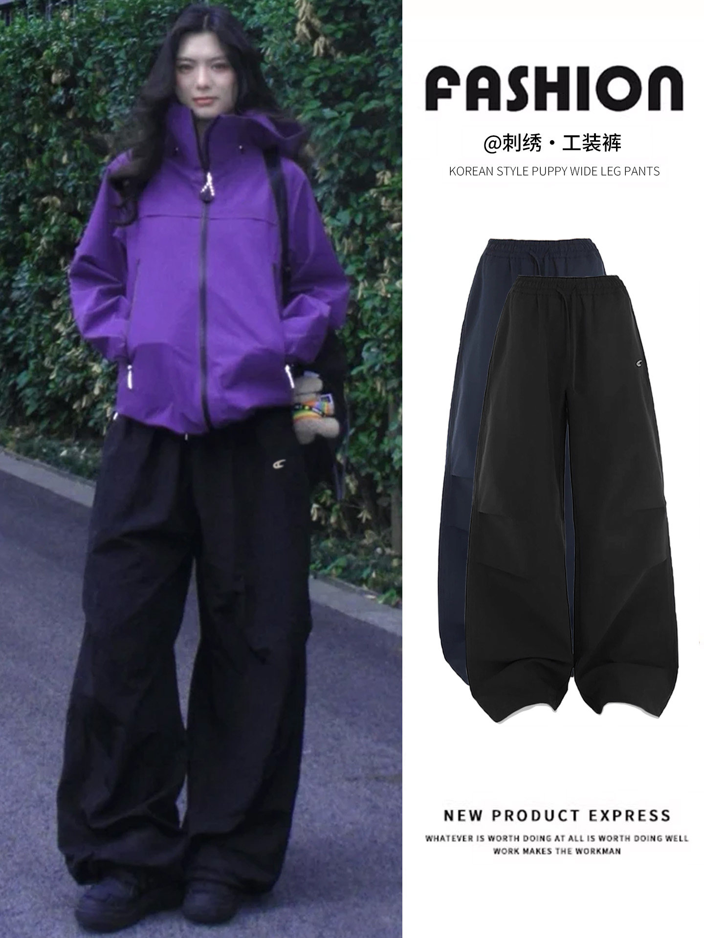 American cool sassy style cargo sweatpants women's spring 2026 new high-waisted slimming black embroidered assault pants autumn and winter