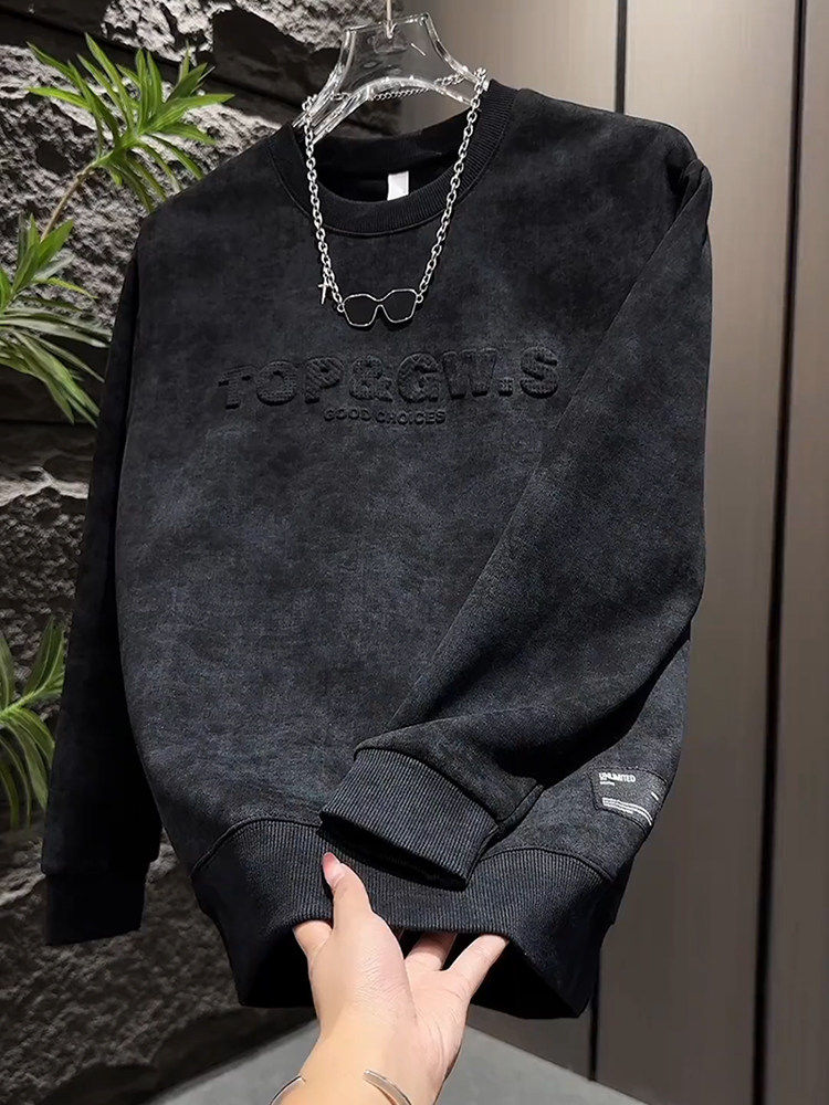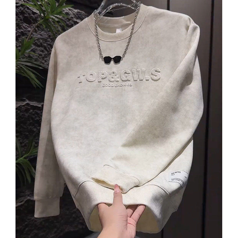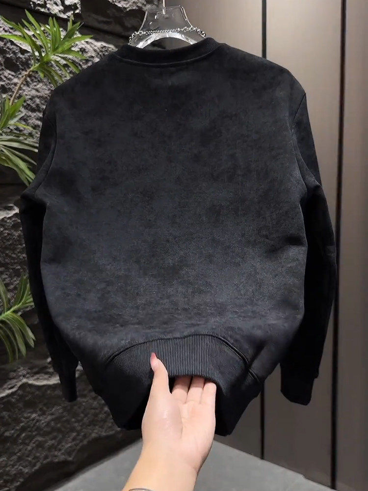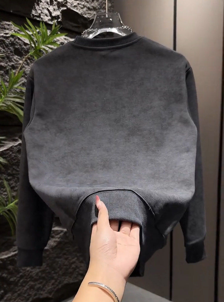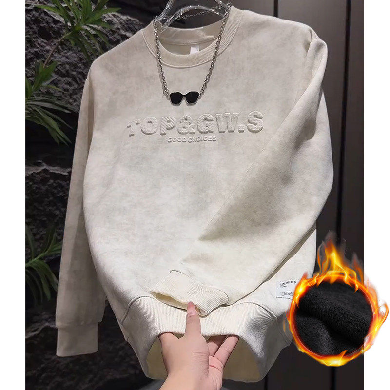 2026 new tie-dye sweatshirt, men's fleece thickened autumn and winter base shirts, Korean version of fashion ruffian, handsome, high-end tops