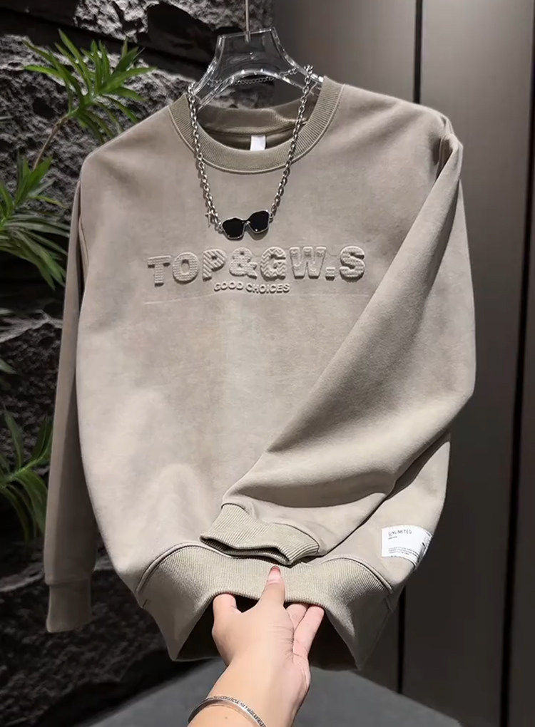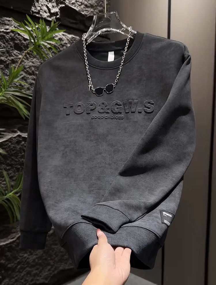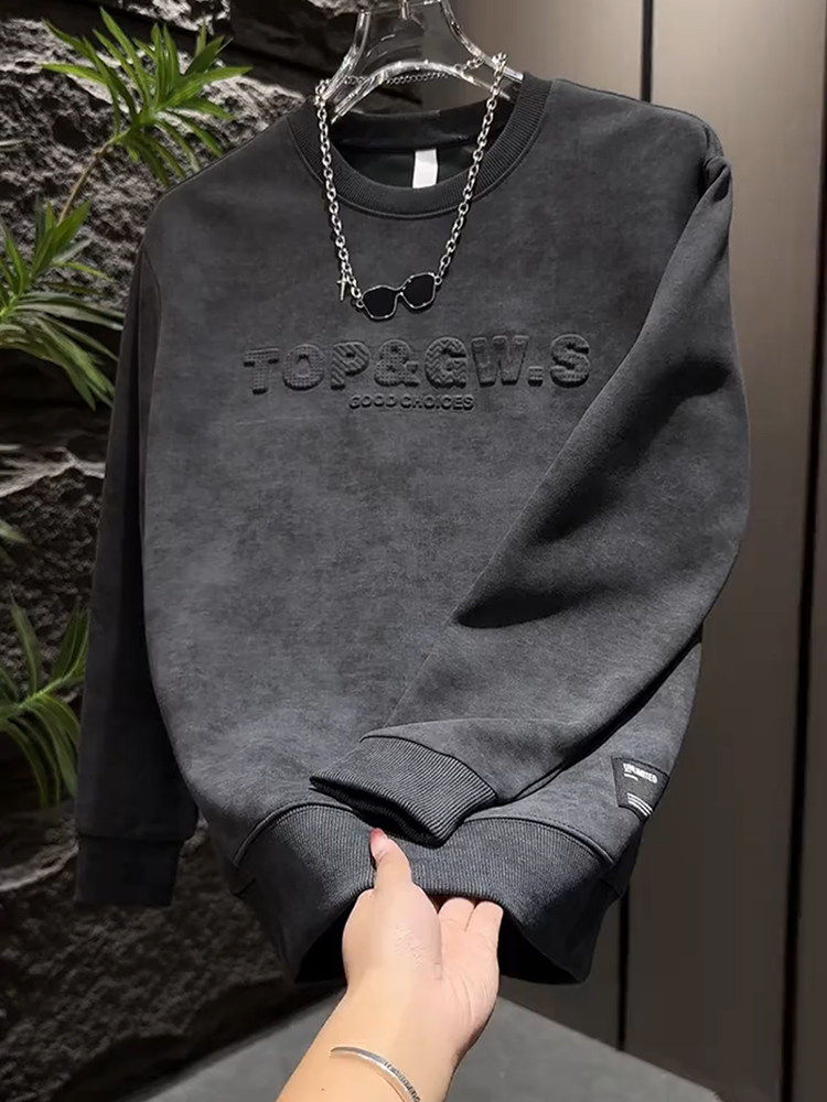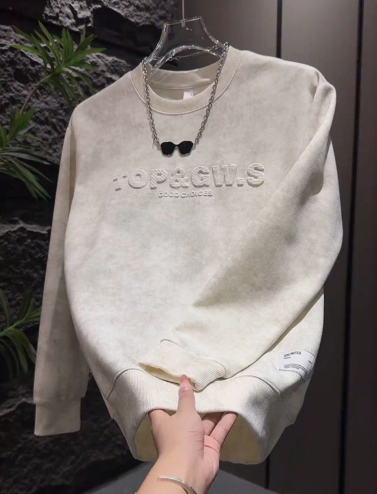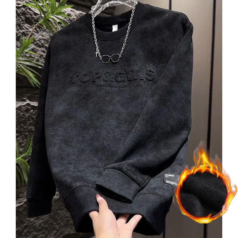 2026 new tie-dye sweatshirt, men's fleece thickened autumn and winter base shirts, Korean version of fashion ruffian, handsome, high-end tops