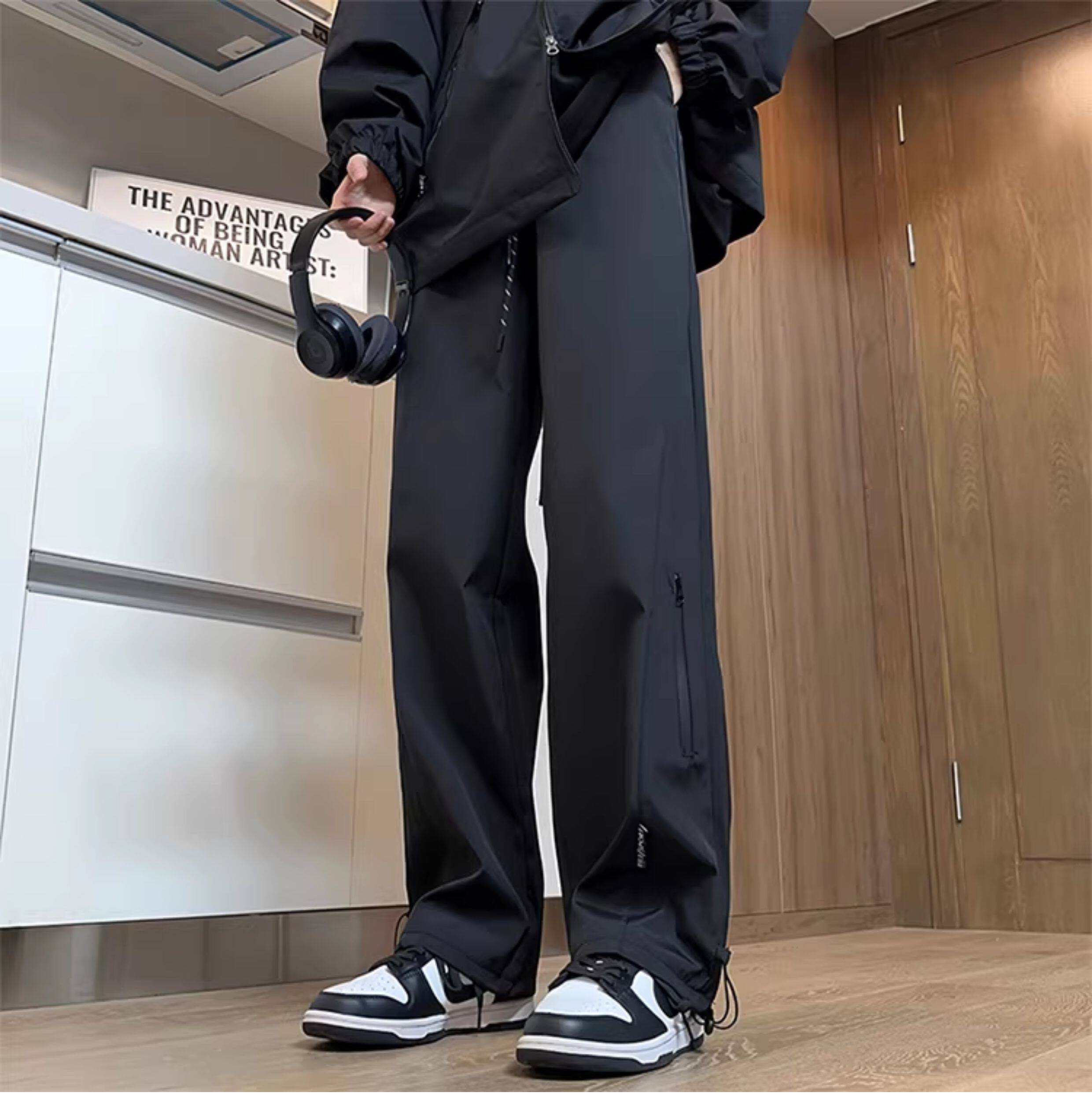 Jacket pants men's trendy brand autumn and winter fleece new windproof loose straight sports workwear casual plus size long pants