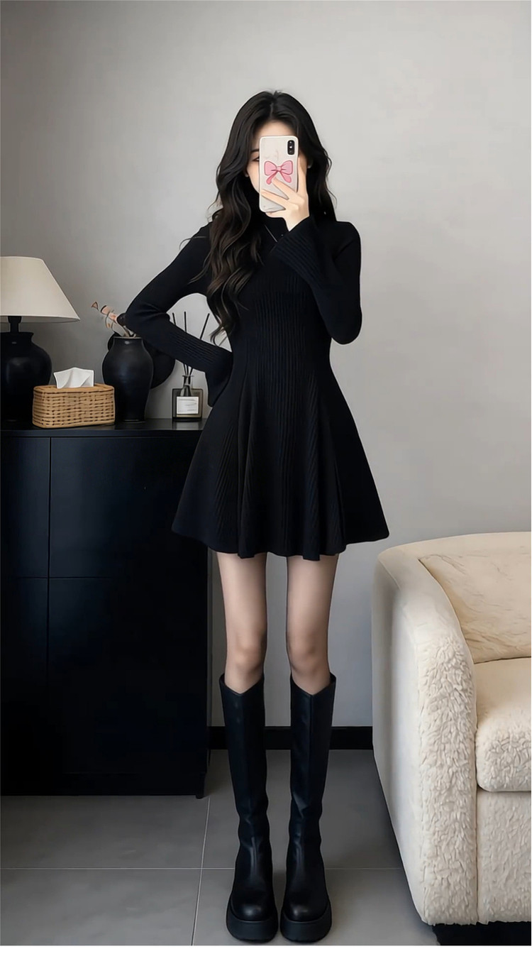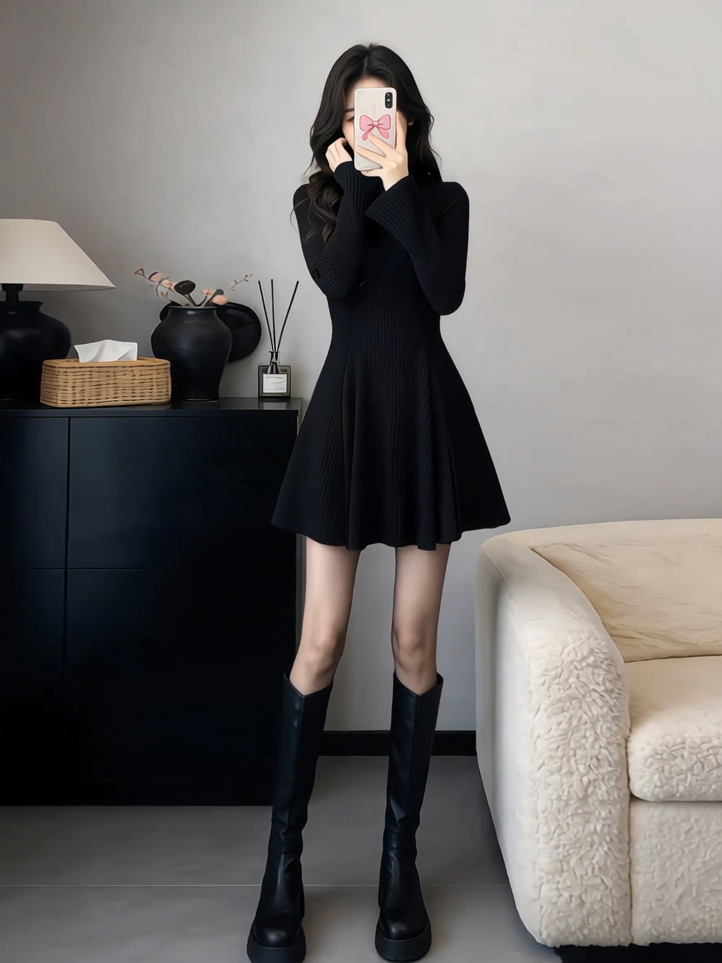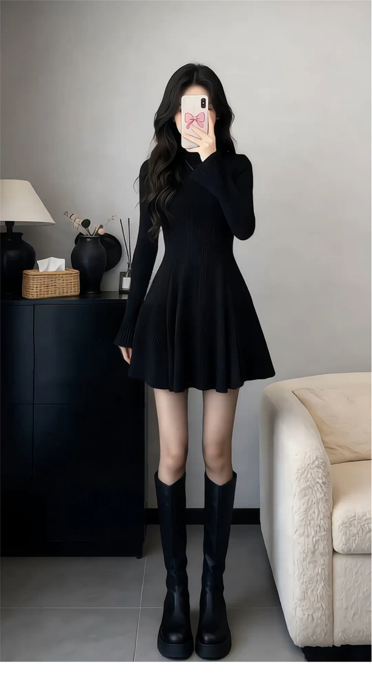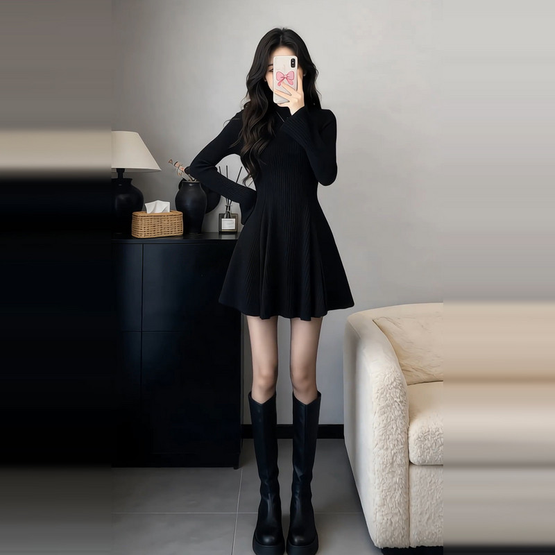 Small French black knitted dress women's autumn and winter 2026 new coat with a base little black dress