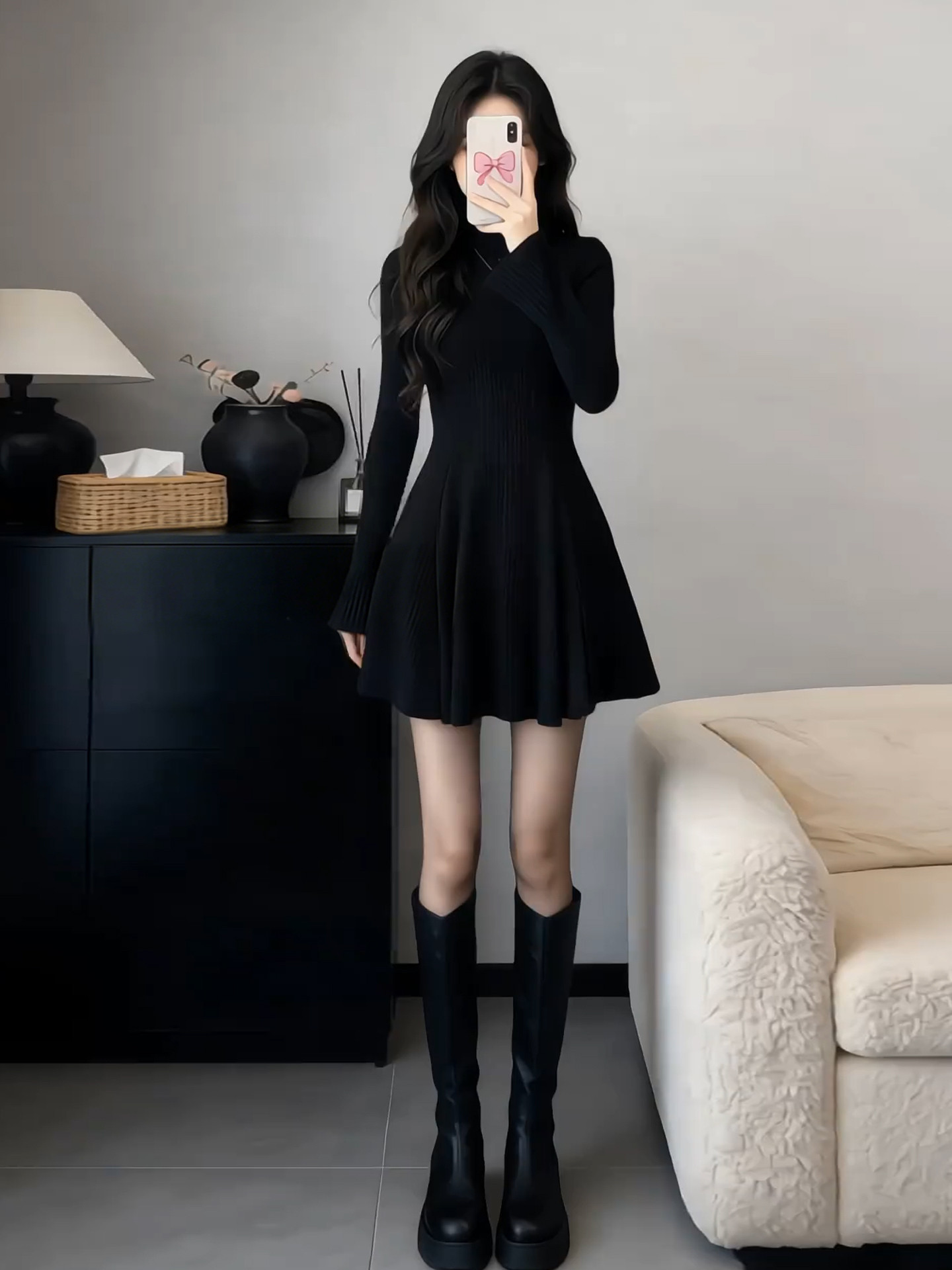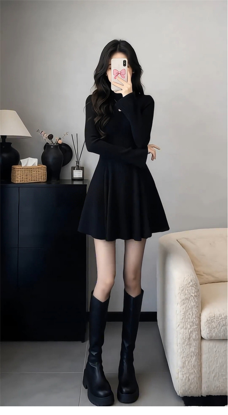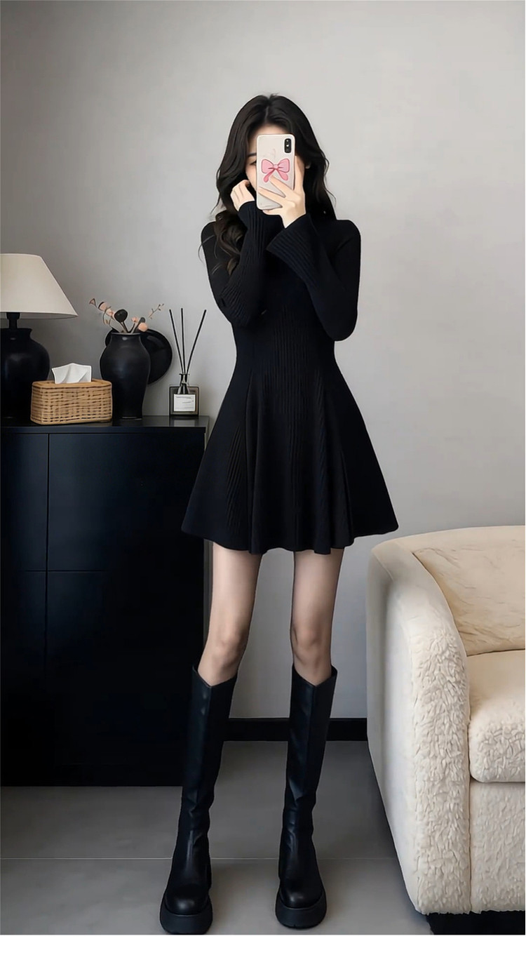 Small French black knitted dress women's autumn and winter 2026 new coat with a base little black dress