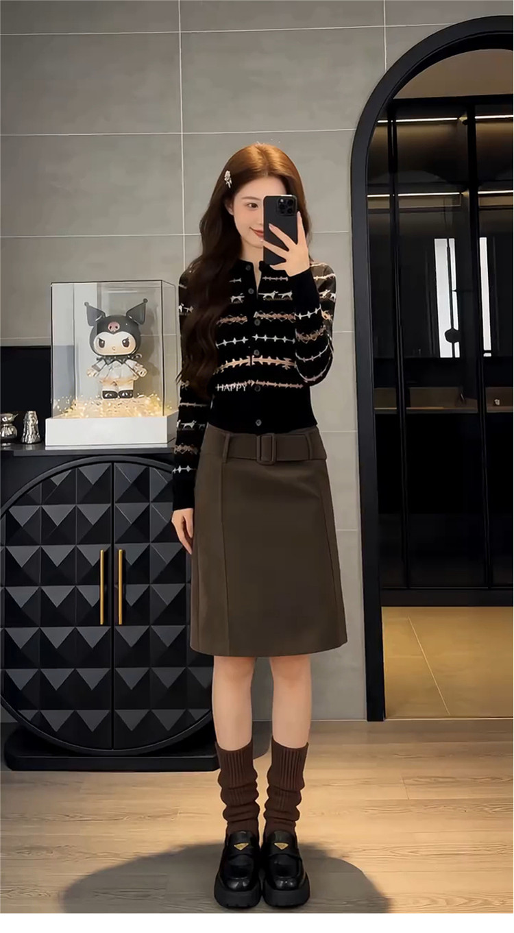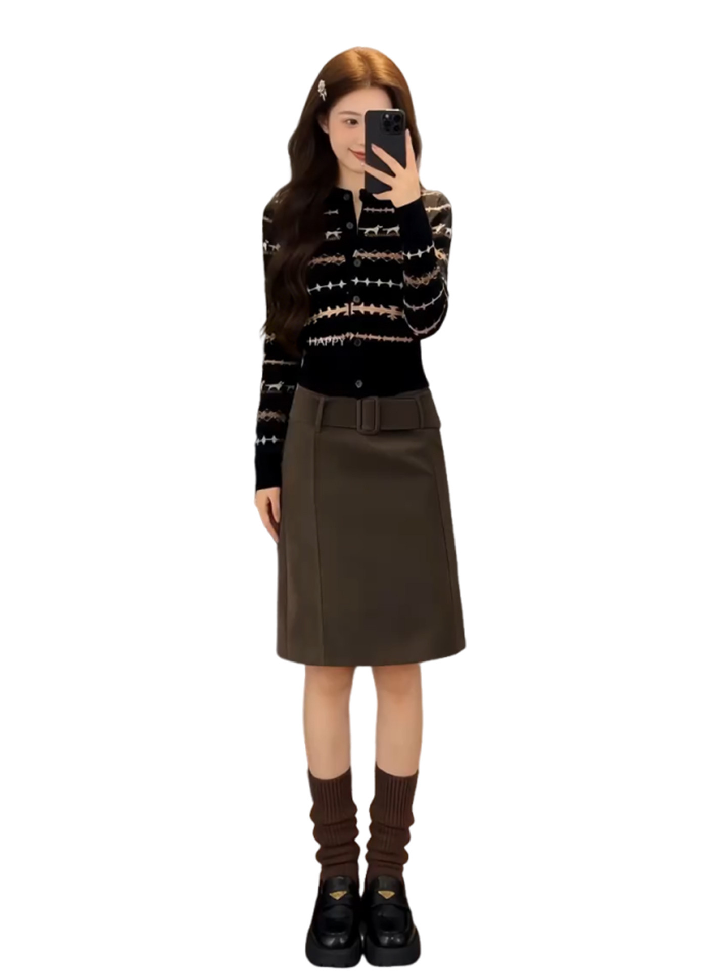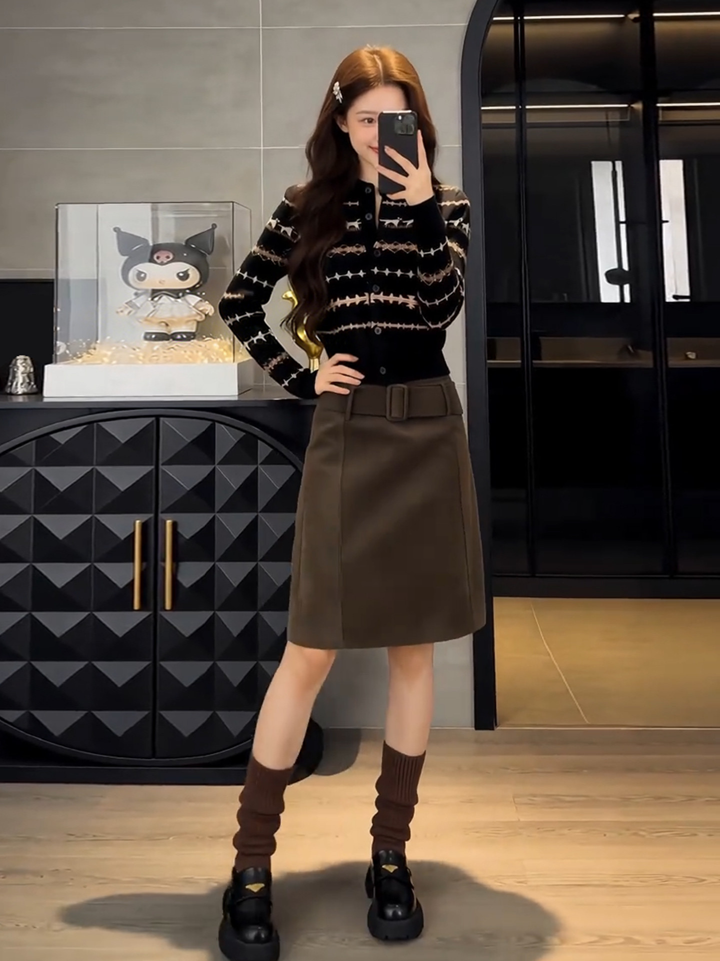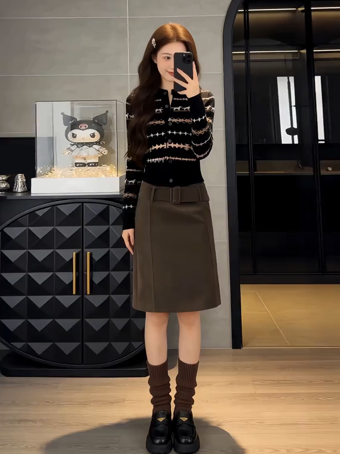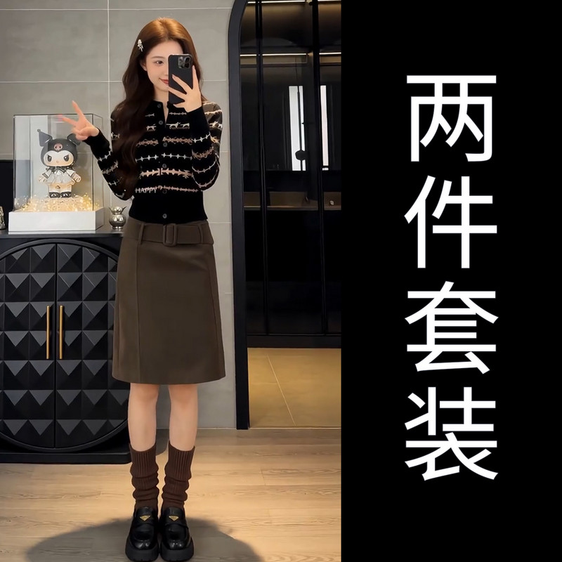 Black contrasting sweater skirt women's autumn and winter 2026 new super hot outfit with a complete sense of luxury