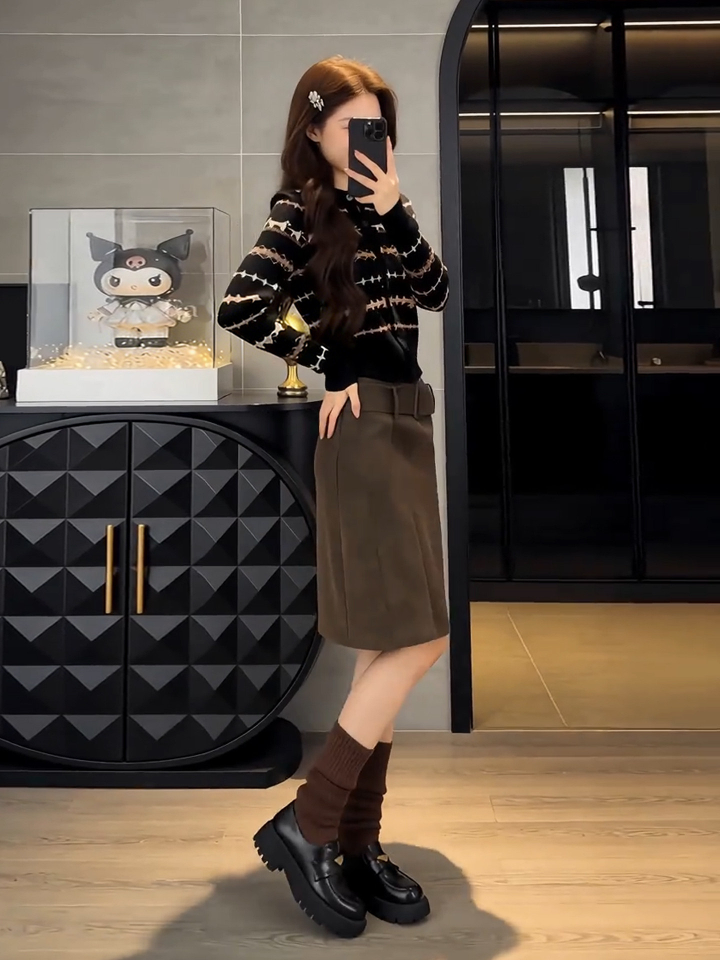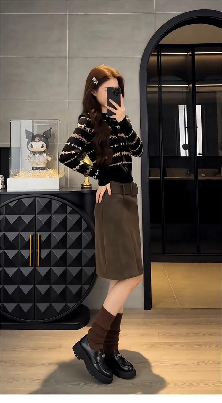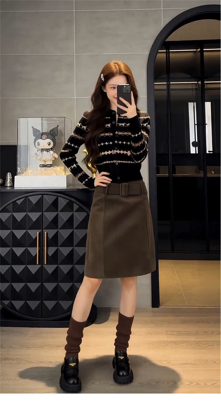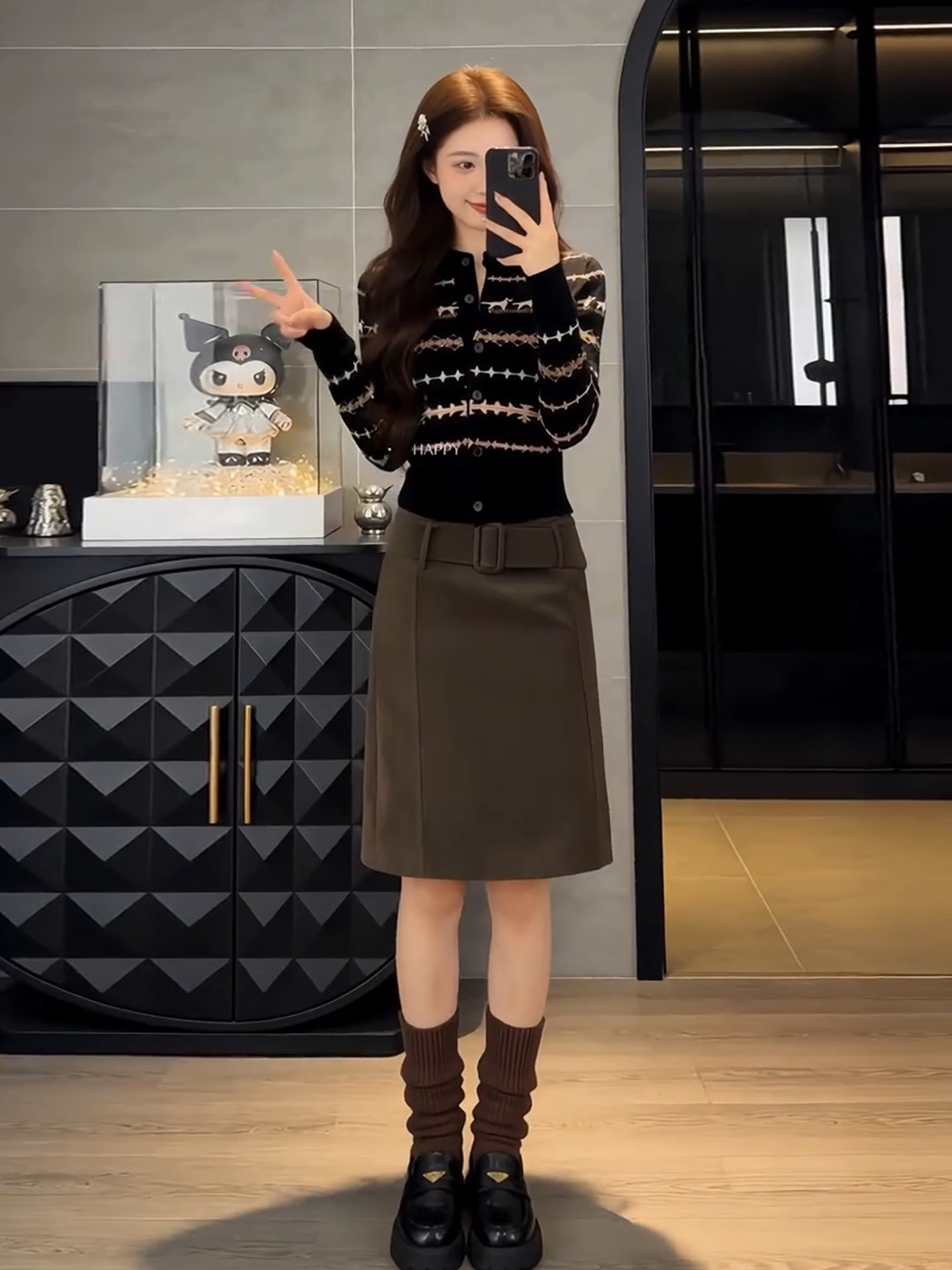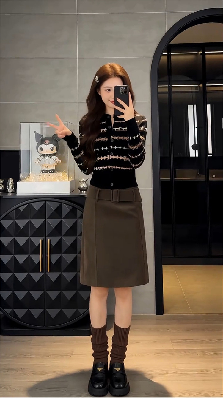 Black contrasting sweater skirt women's autumn and winter 2026 new super hot outfit with a complete sense of luxury