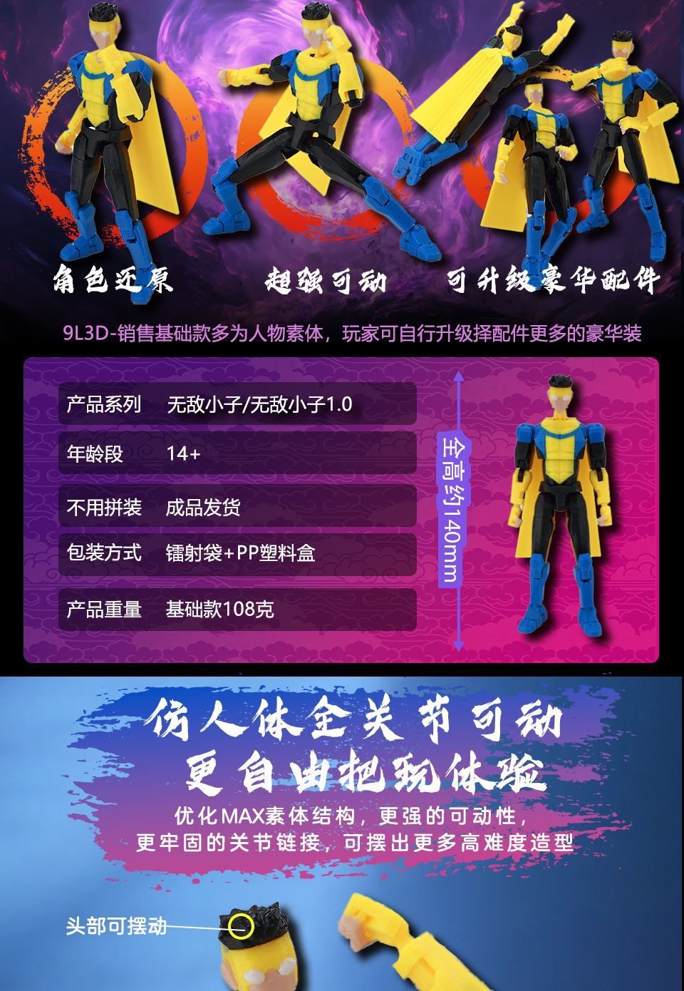 9L3D printing multi-joint movable lucky 13 doll invincible young hero series figure model collection ornament