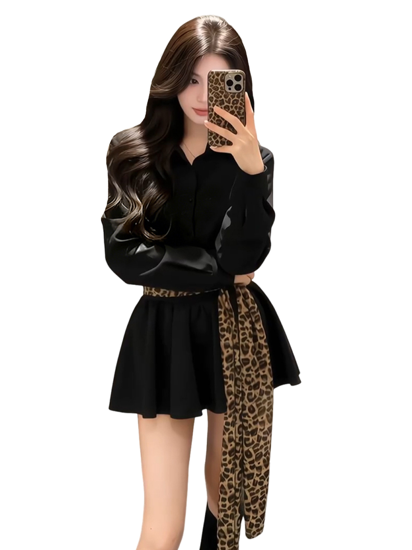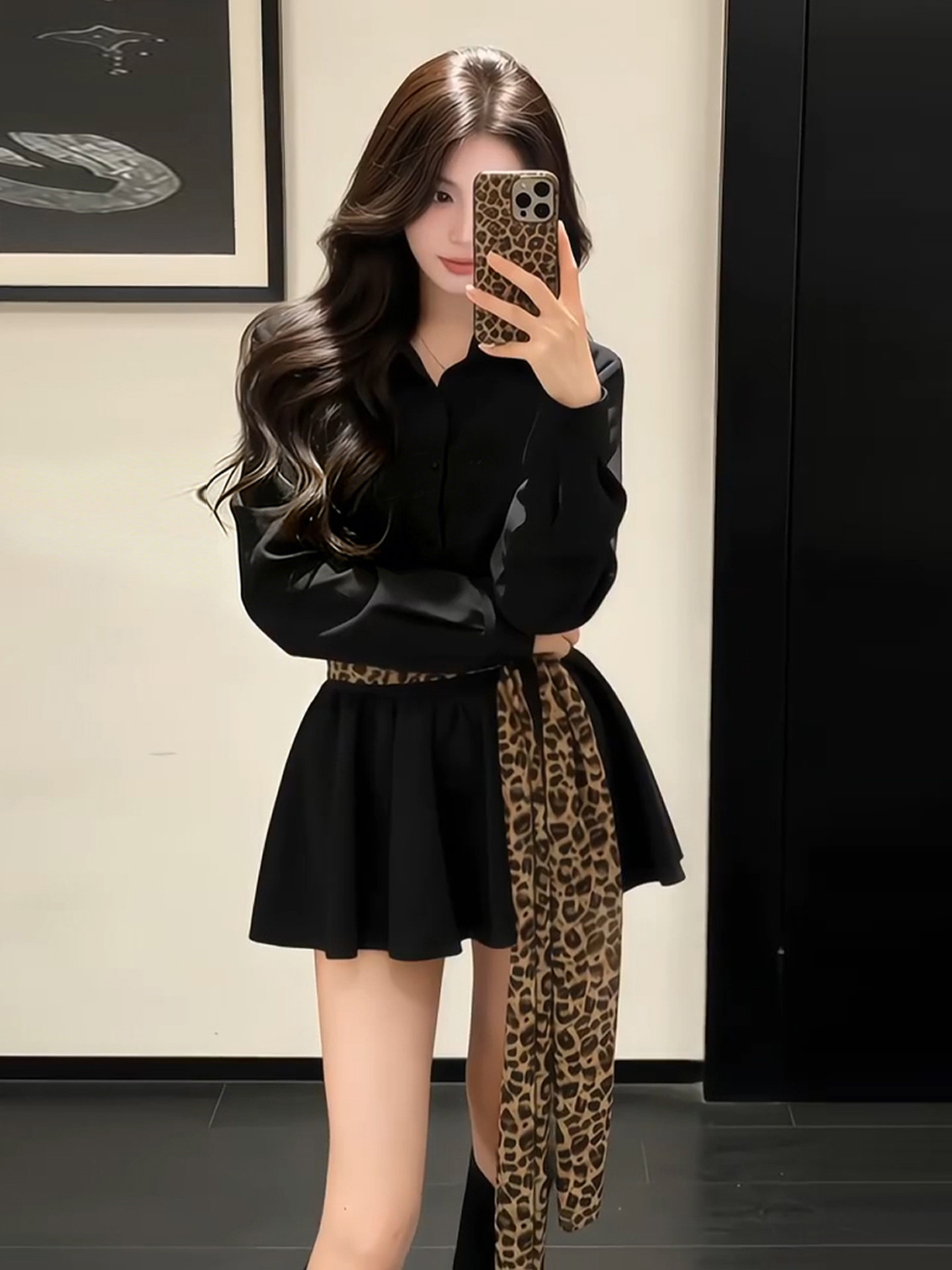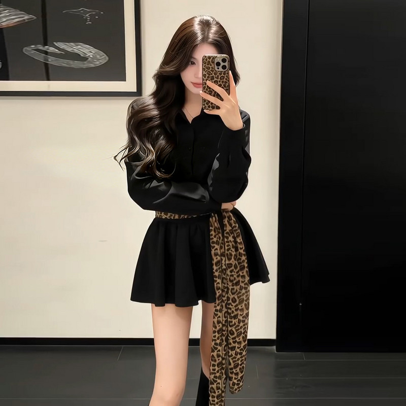 French Hepburn style black shirt dress women's autumn and winter 2026 new high-end small waist skirt