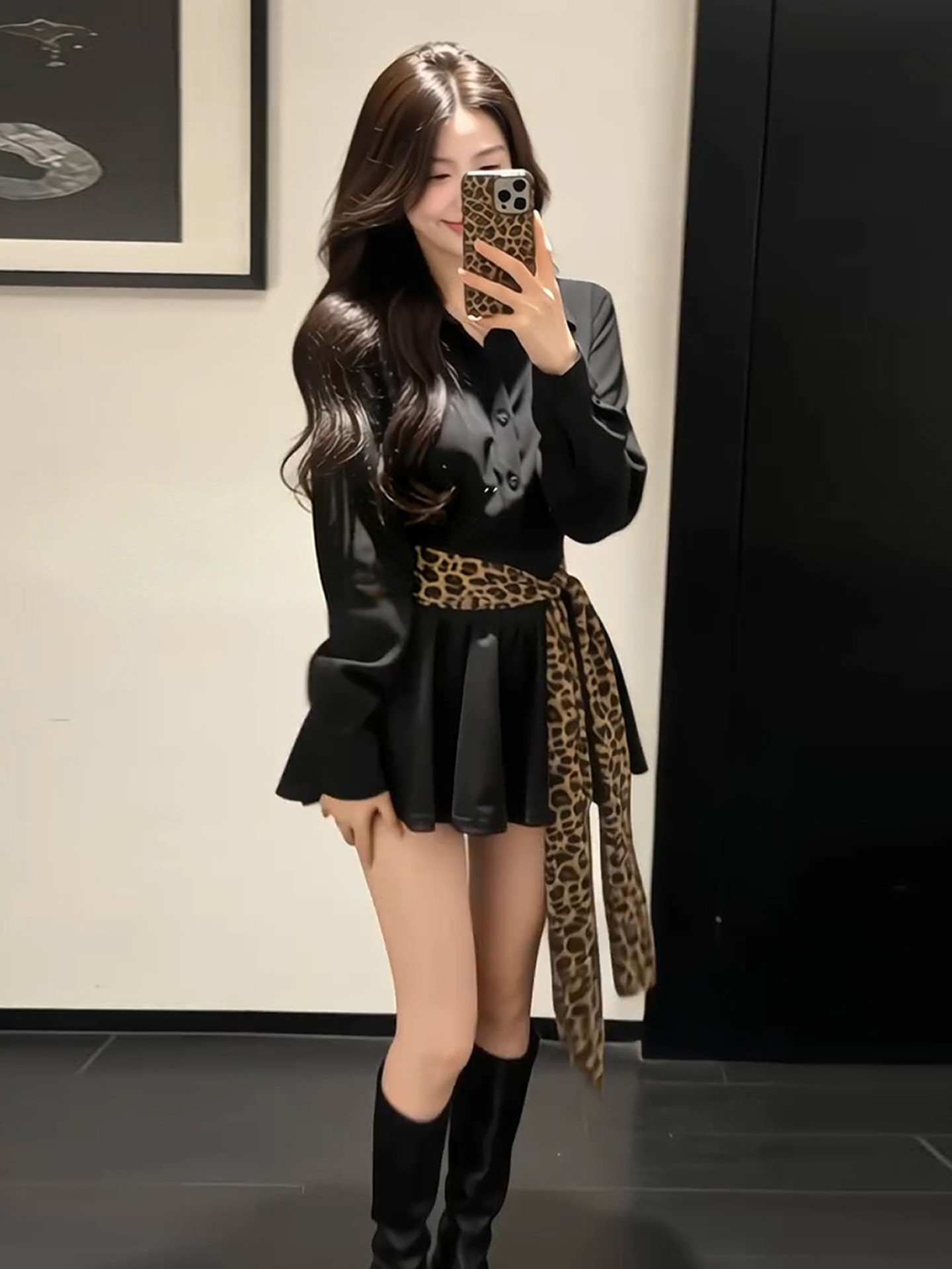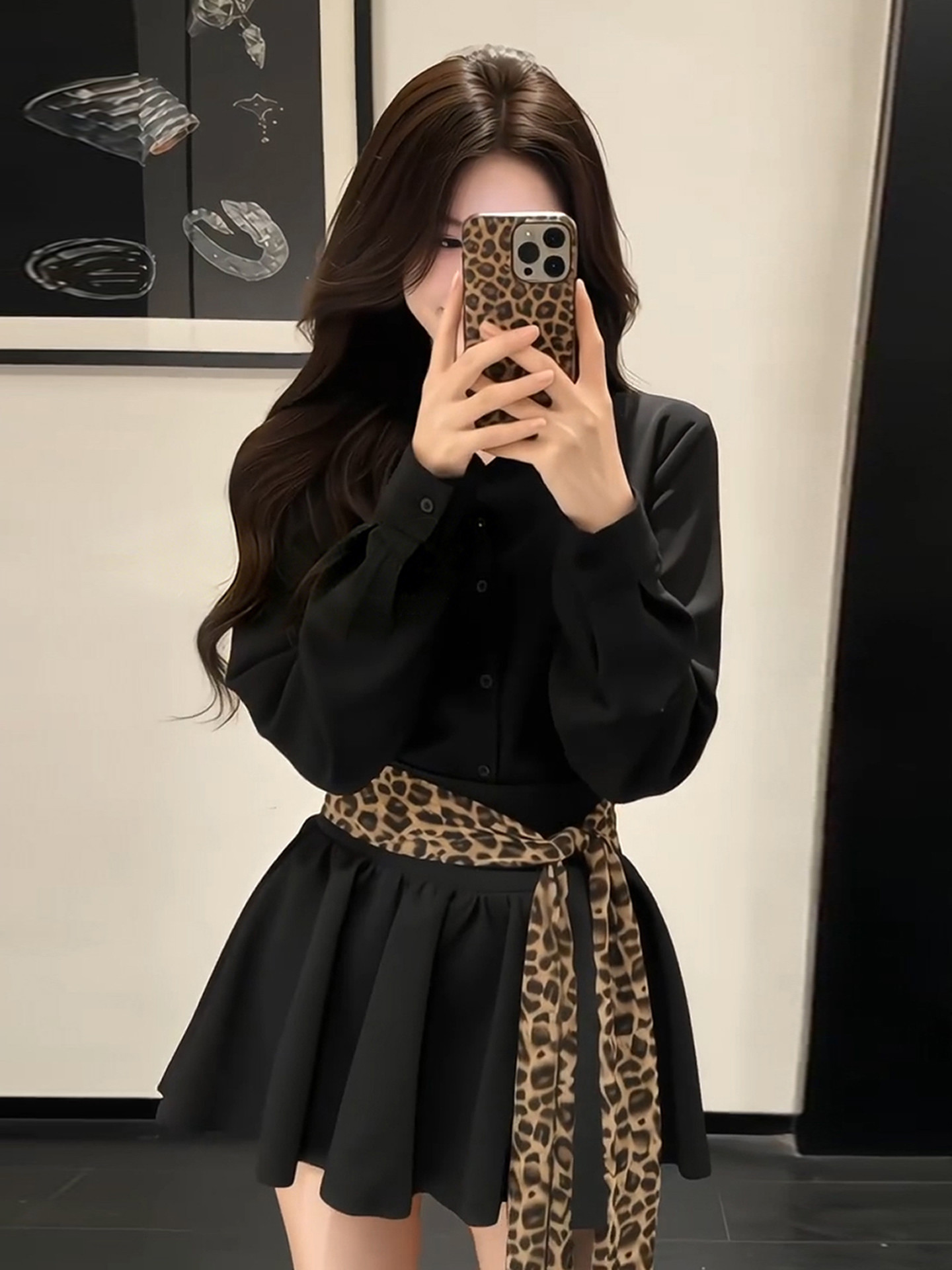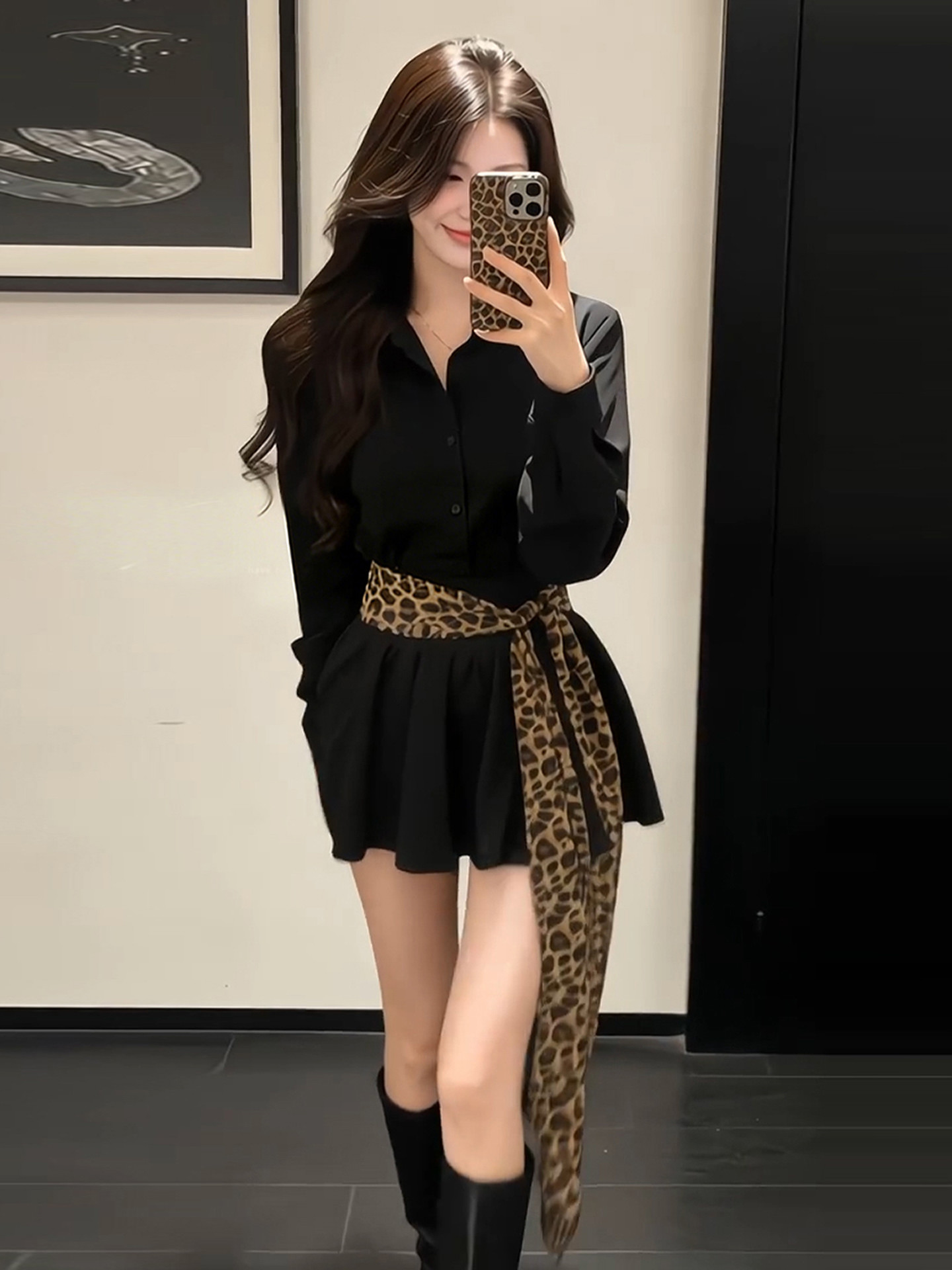 French Hepburn style black shirt dress women's autumn and winter 2026 new high-end small waist skirt
