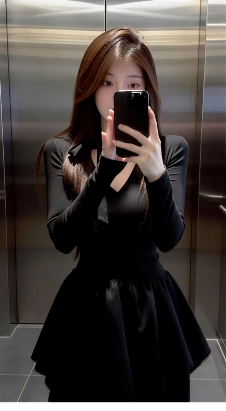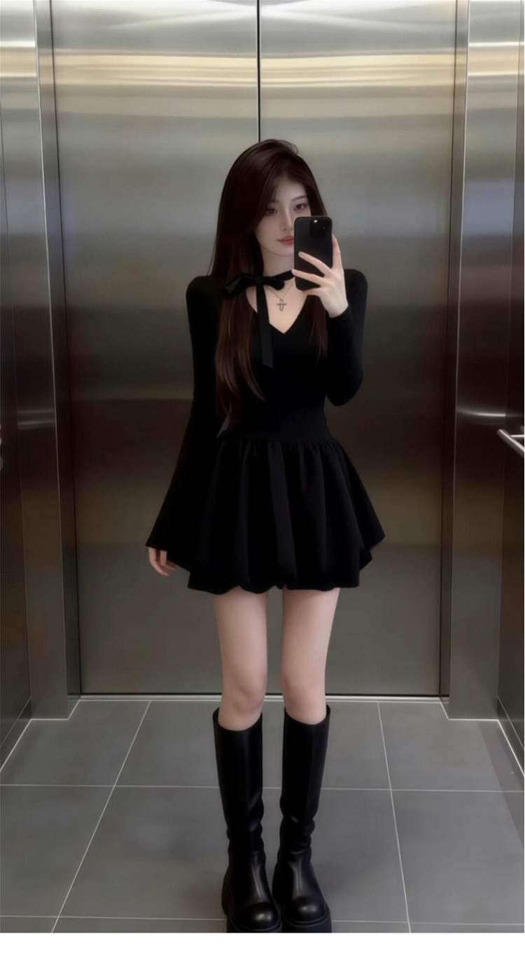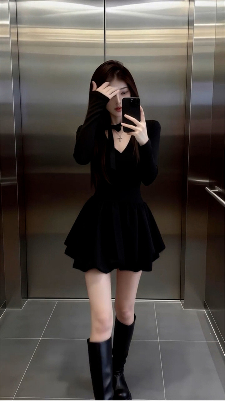 French Hepburn style V-neck dress for women, 2026 new black waist slimming temperament bud fluffy skirt
