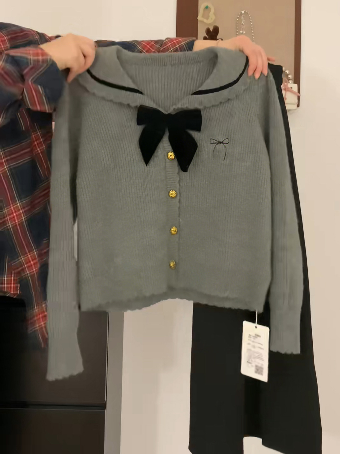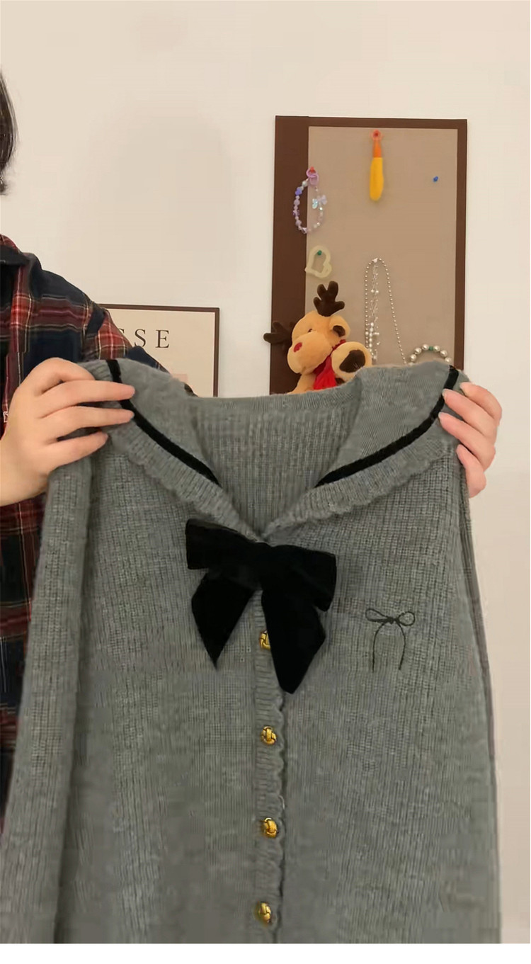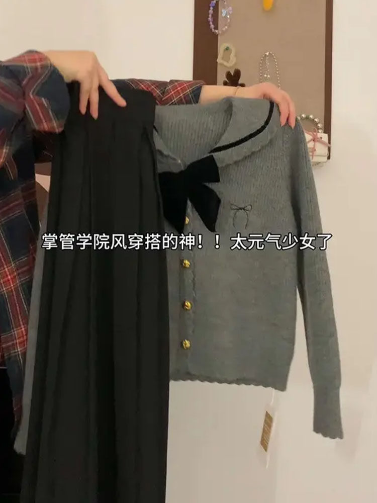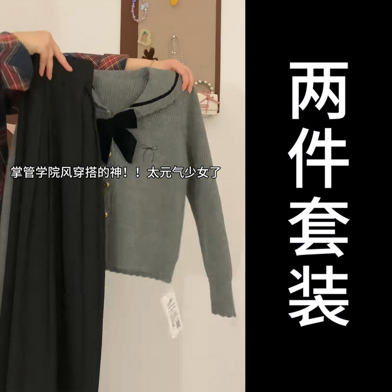 Preppy gray knitted dress for women, early spring 2026, the new small man wears a complete set of long skirts