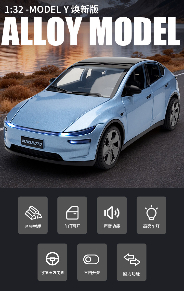 New Tesla Model Y car model edamame Y rejuvenated alloy simulation car model ornament boy toy car