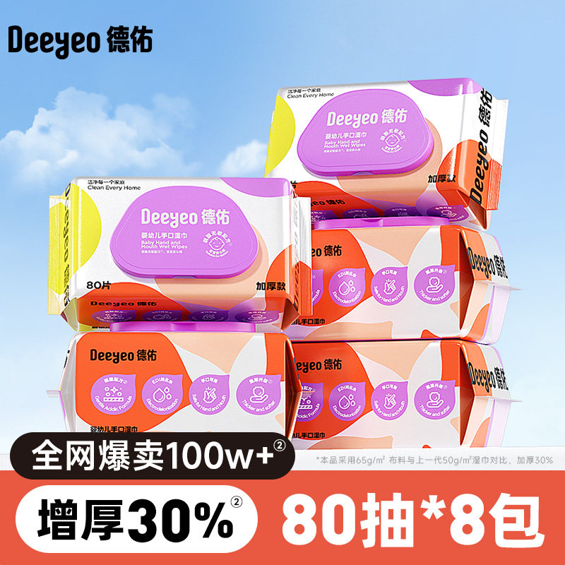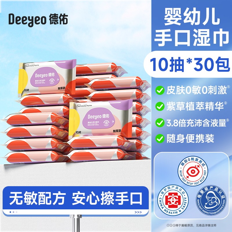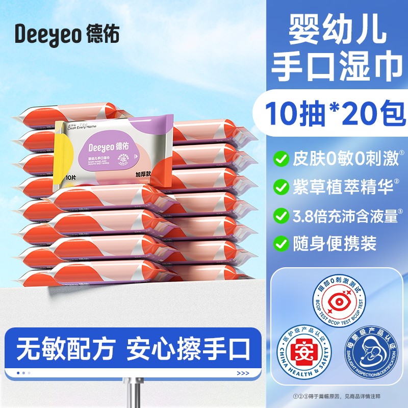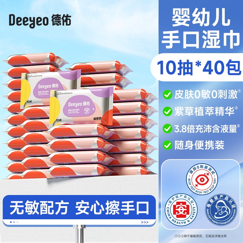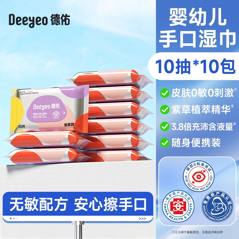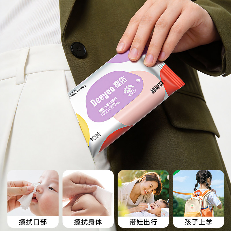 Deyou wet wipes portable small pack baby hand and mouth special wet wipes for primary school students carry with you 10 packs of non-alcohol
