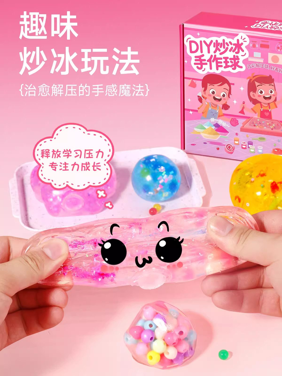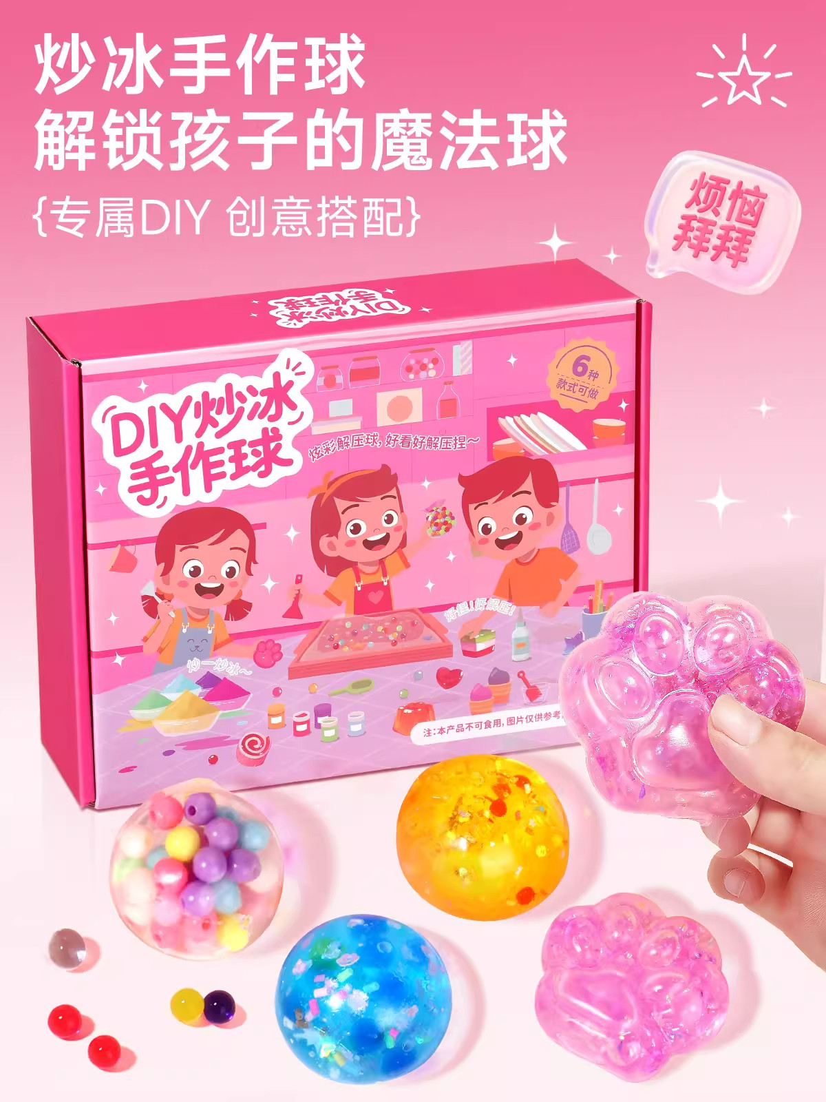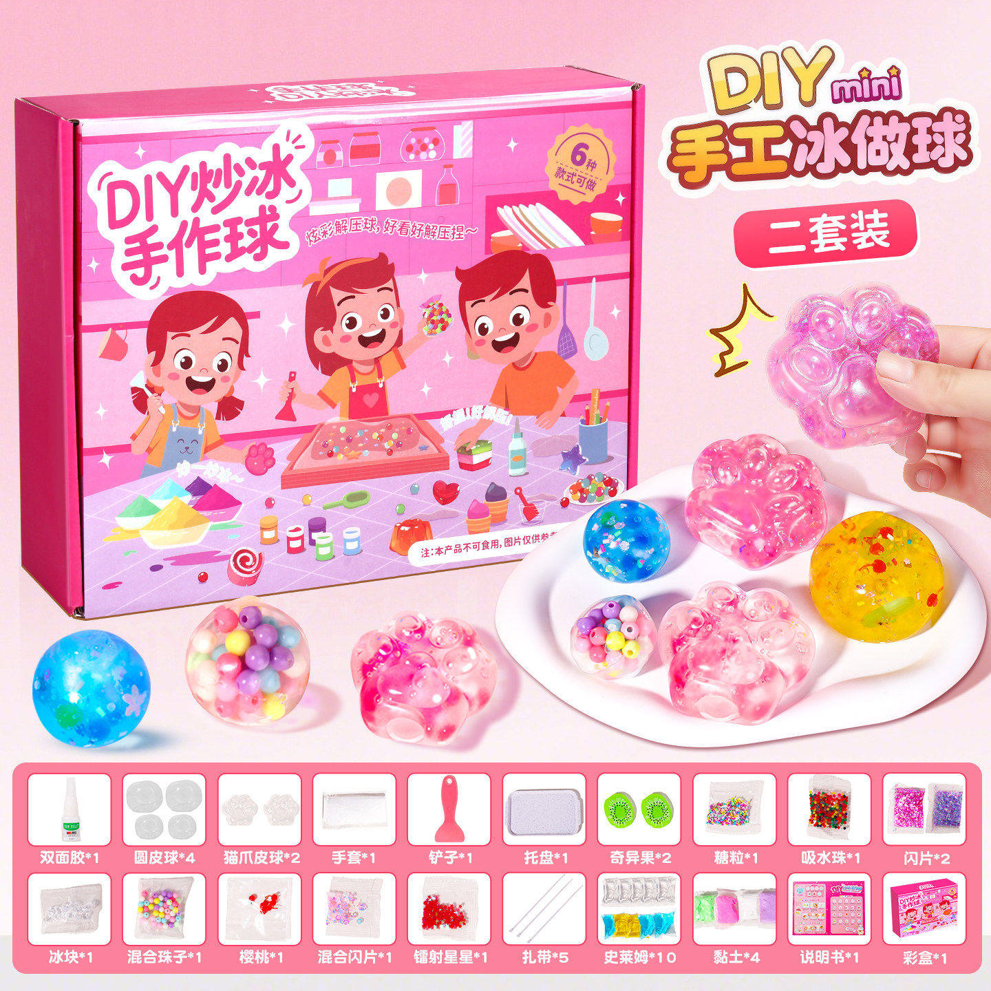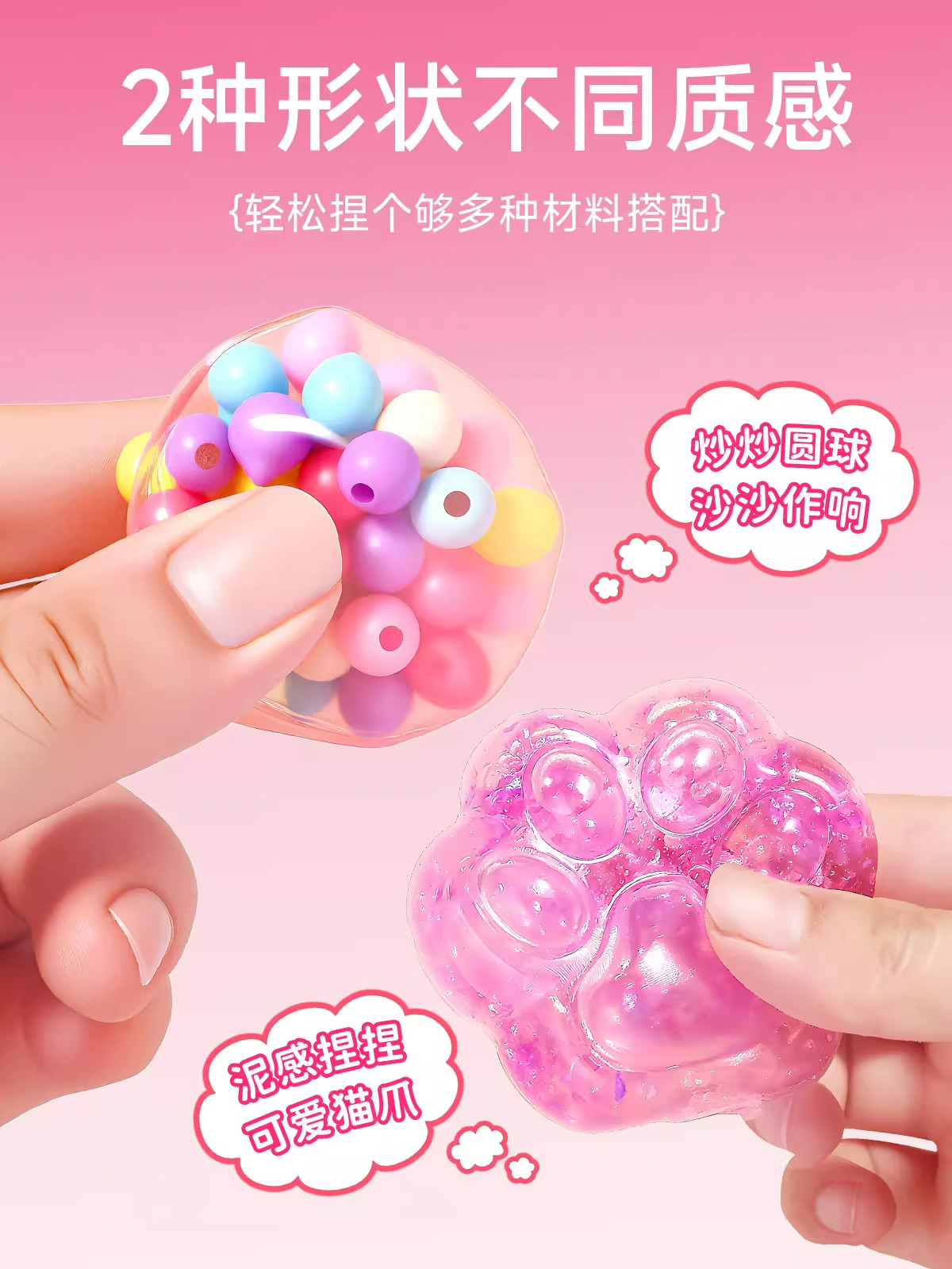 Ice stir-fry handmade balls, children's stress relief toys, non-toxic, homemade cat claw pinching music set, girls' New Year's gifts