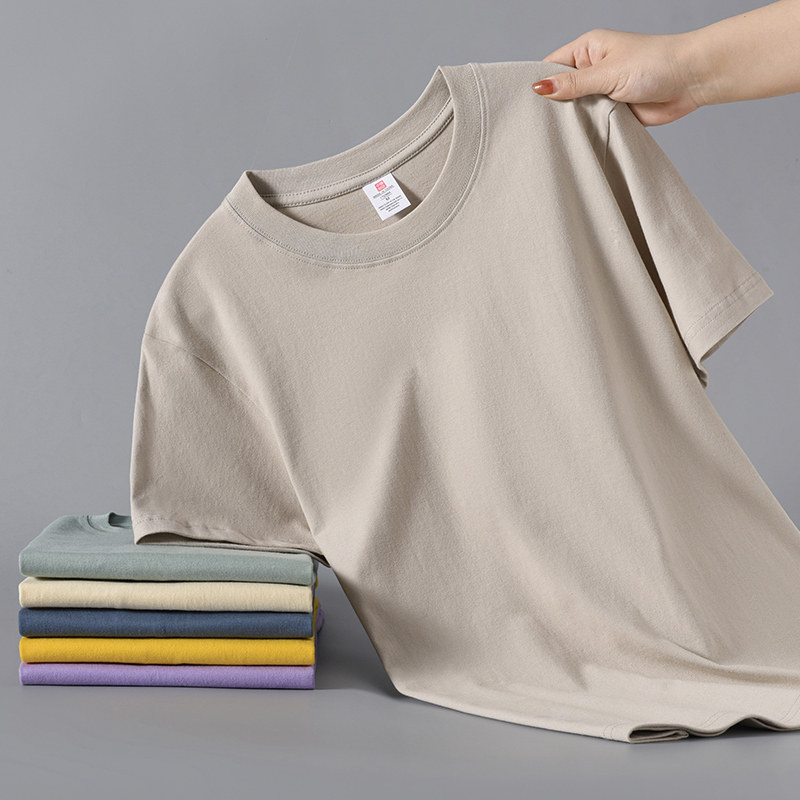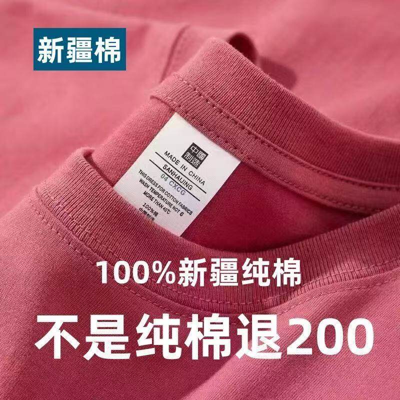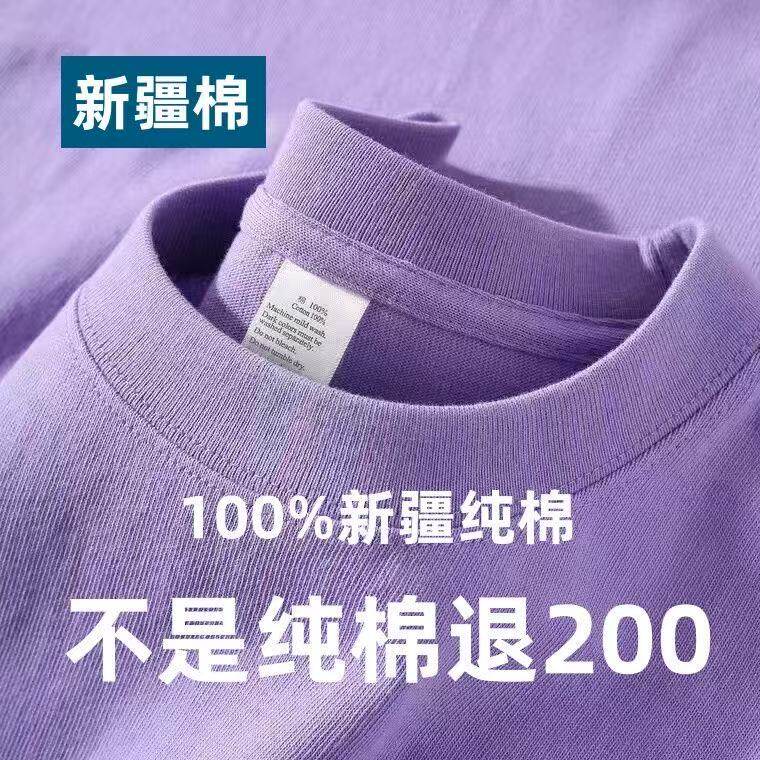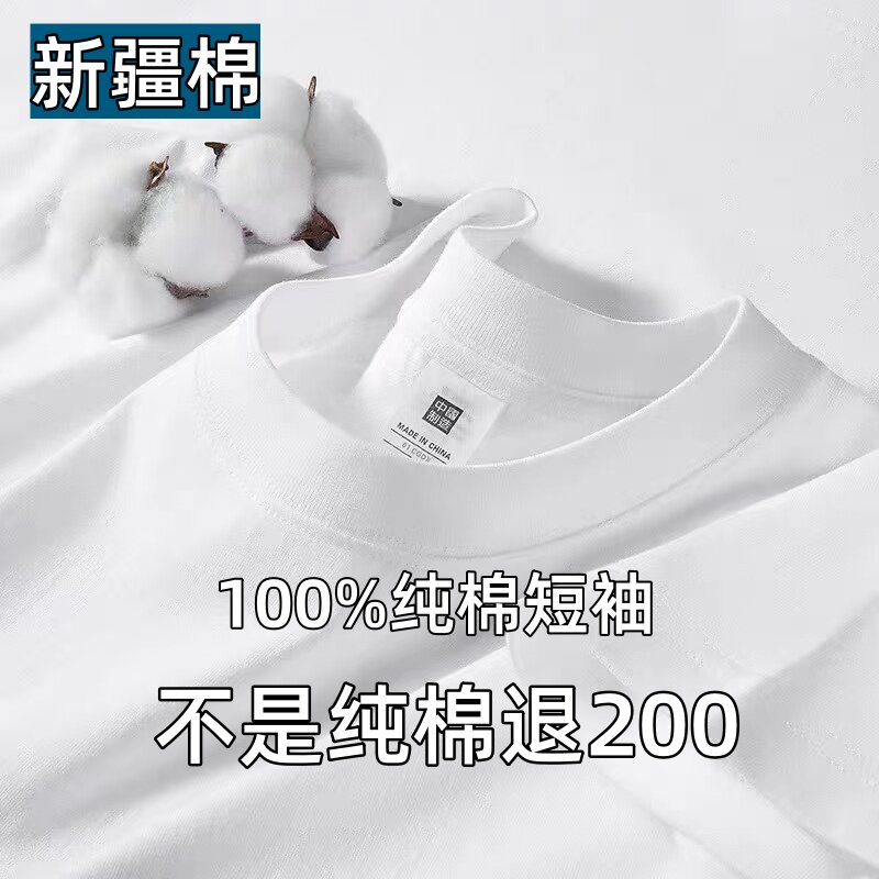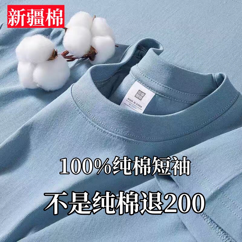 Xinjiang cotton 200G heavy 100% cotton short sleeve T-shirt for men and women summer loose and versatile half-sleeved plus-size shirt