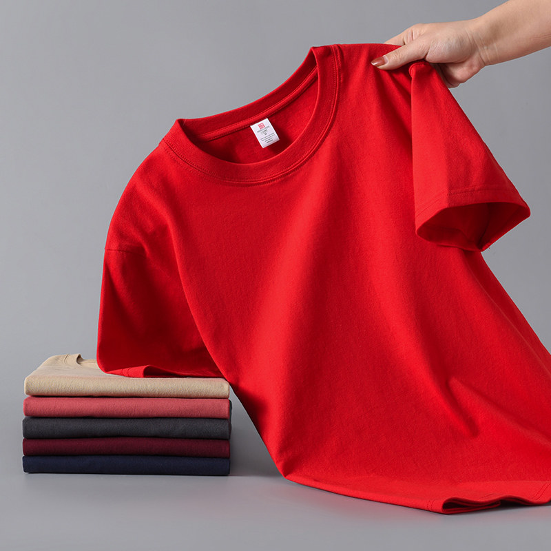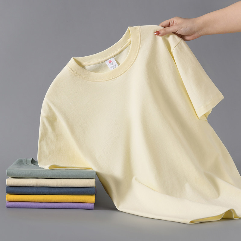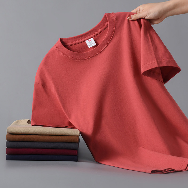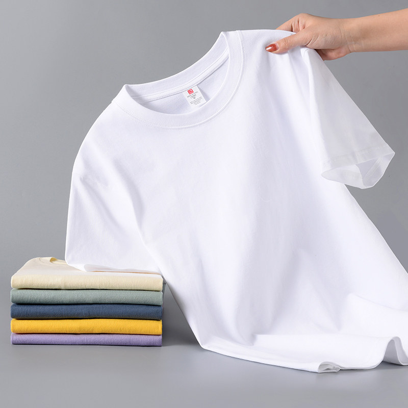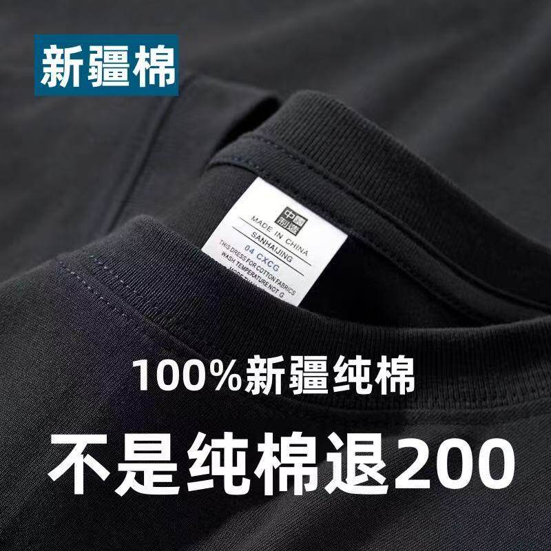 Xinjiang cotton 200G heavy 100% cotton short sleeve T-shirt for men and women summer loose and versatile half-sleeved plus-size shirt