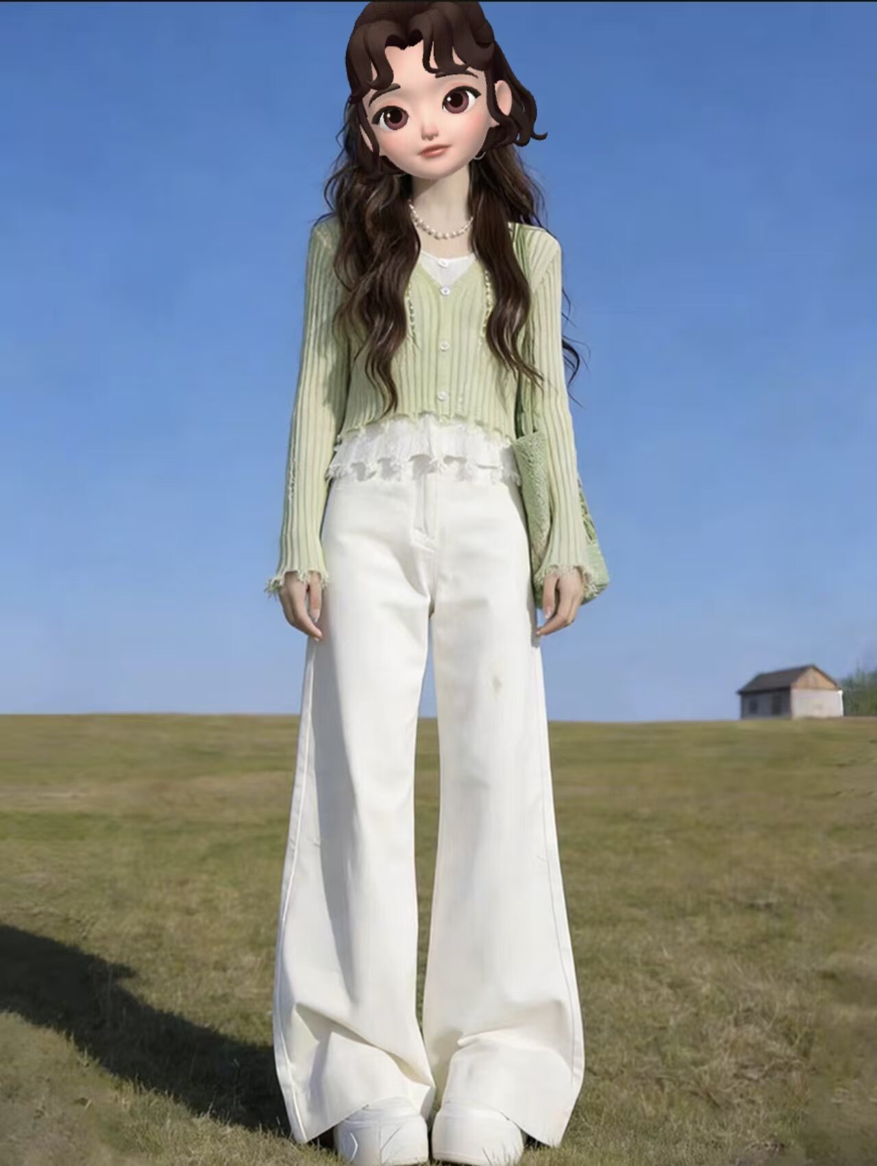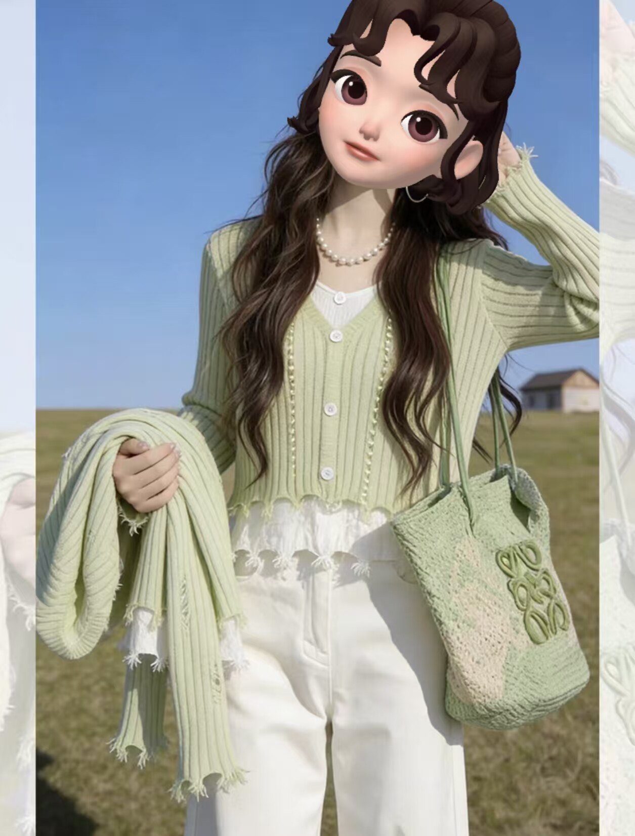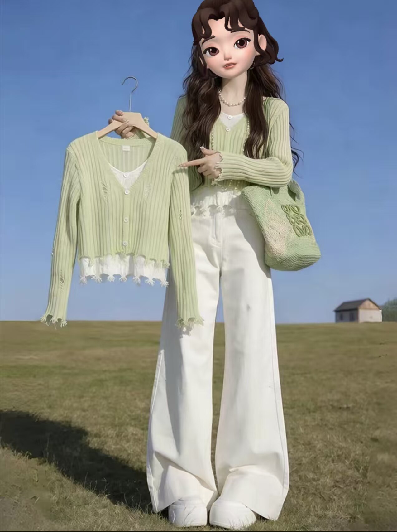 Green fake two slim fit, inner with a bottom knitted sweater, women's 2026 spring giant good-looking, lazy and loose, beautiful top