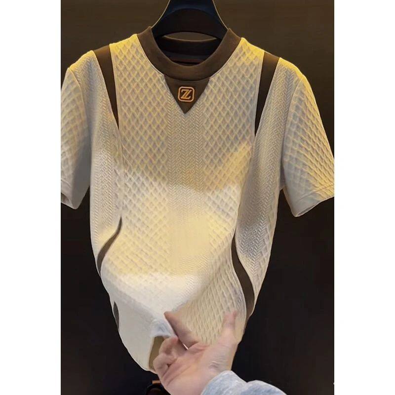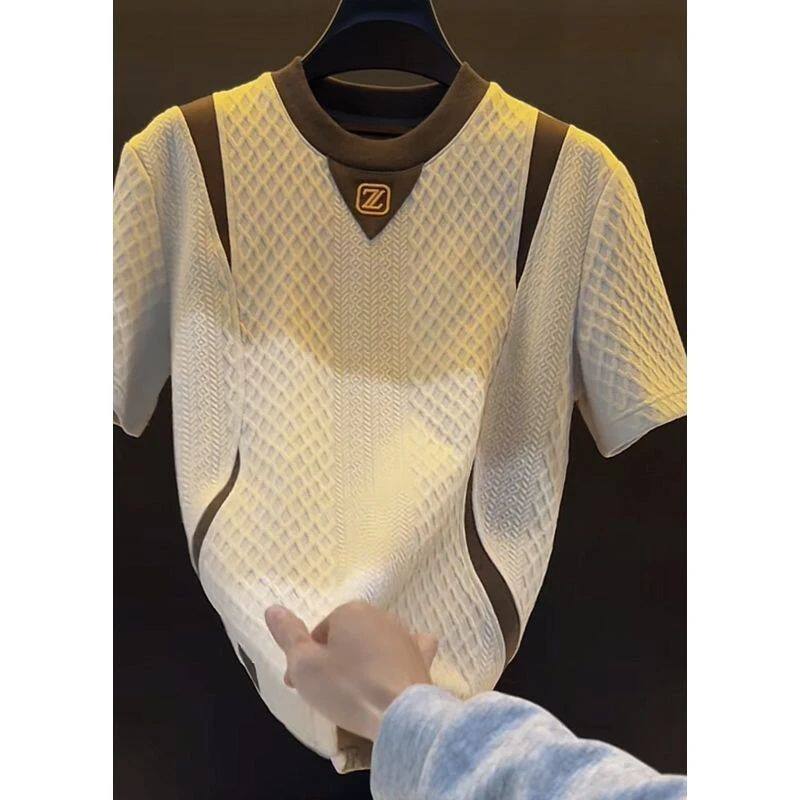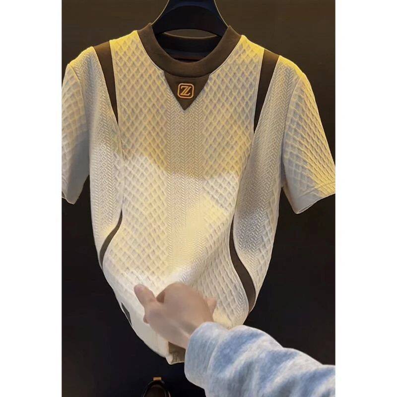 Summer new men's T-shirt light luxury style contrast splicing round neck short sleeve old money style breathable high-end base shirt for men