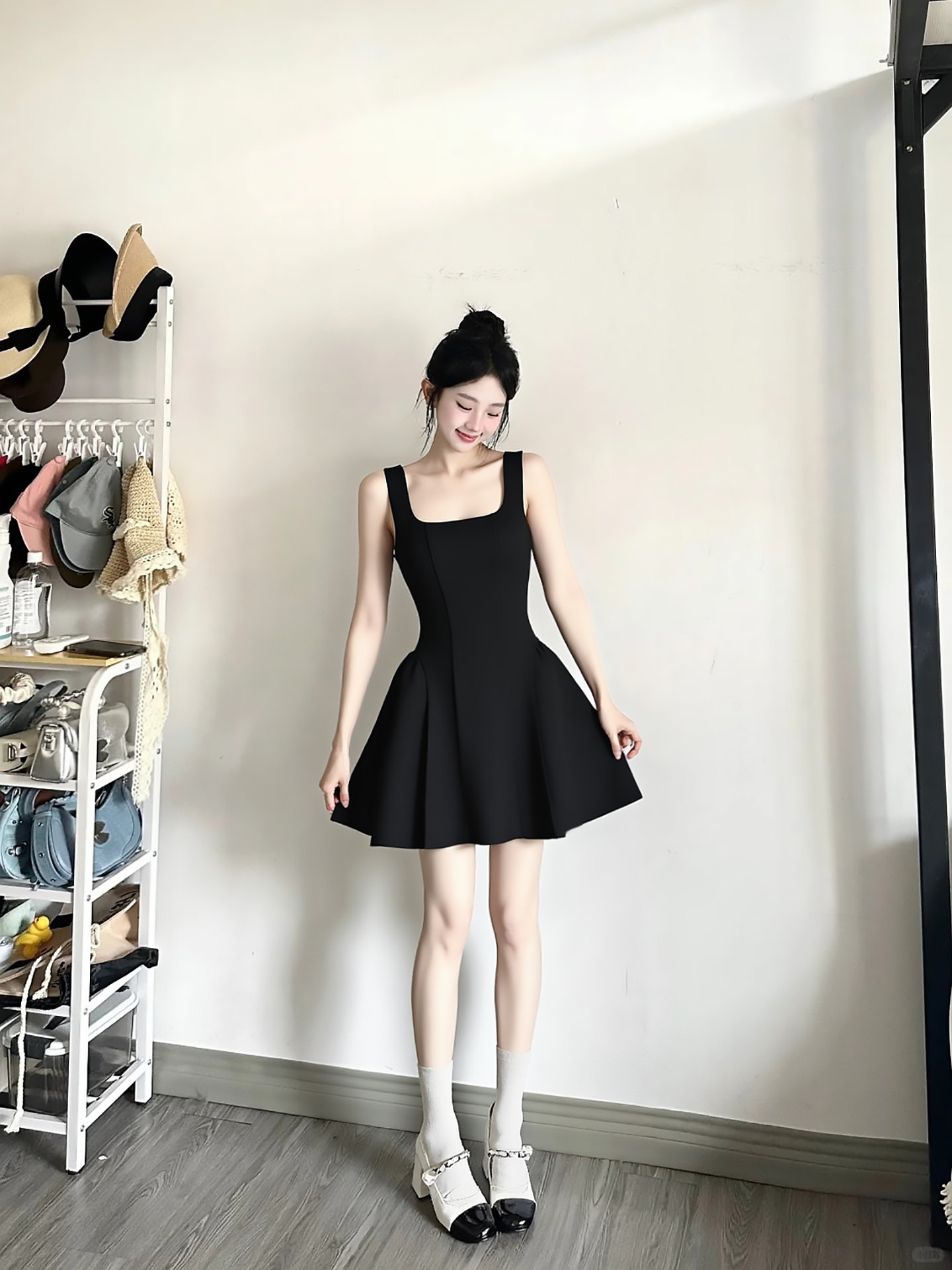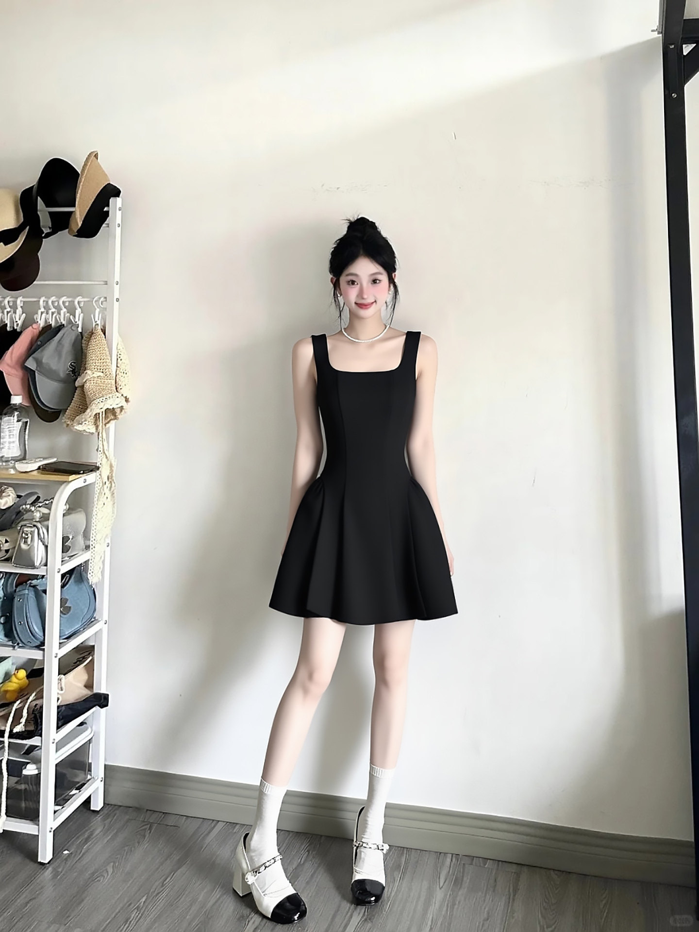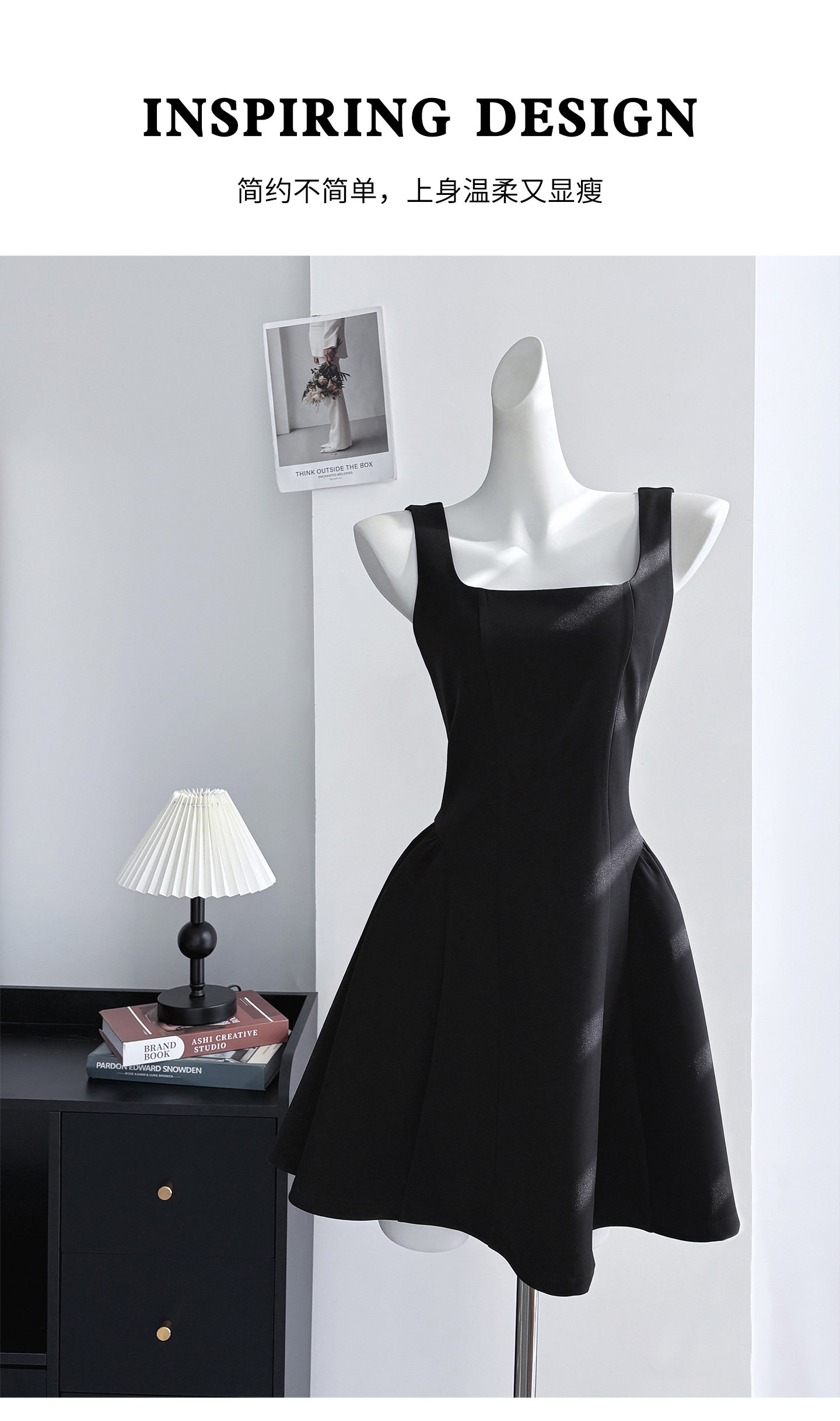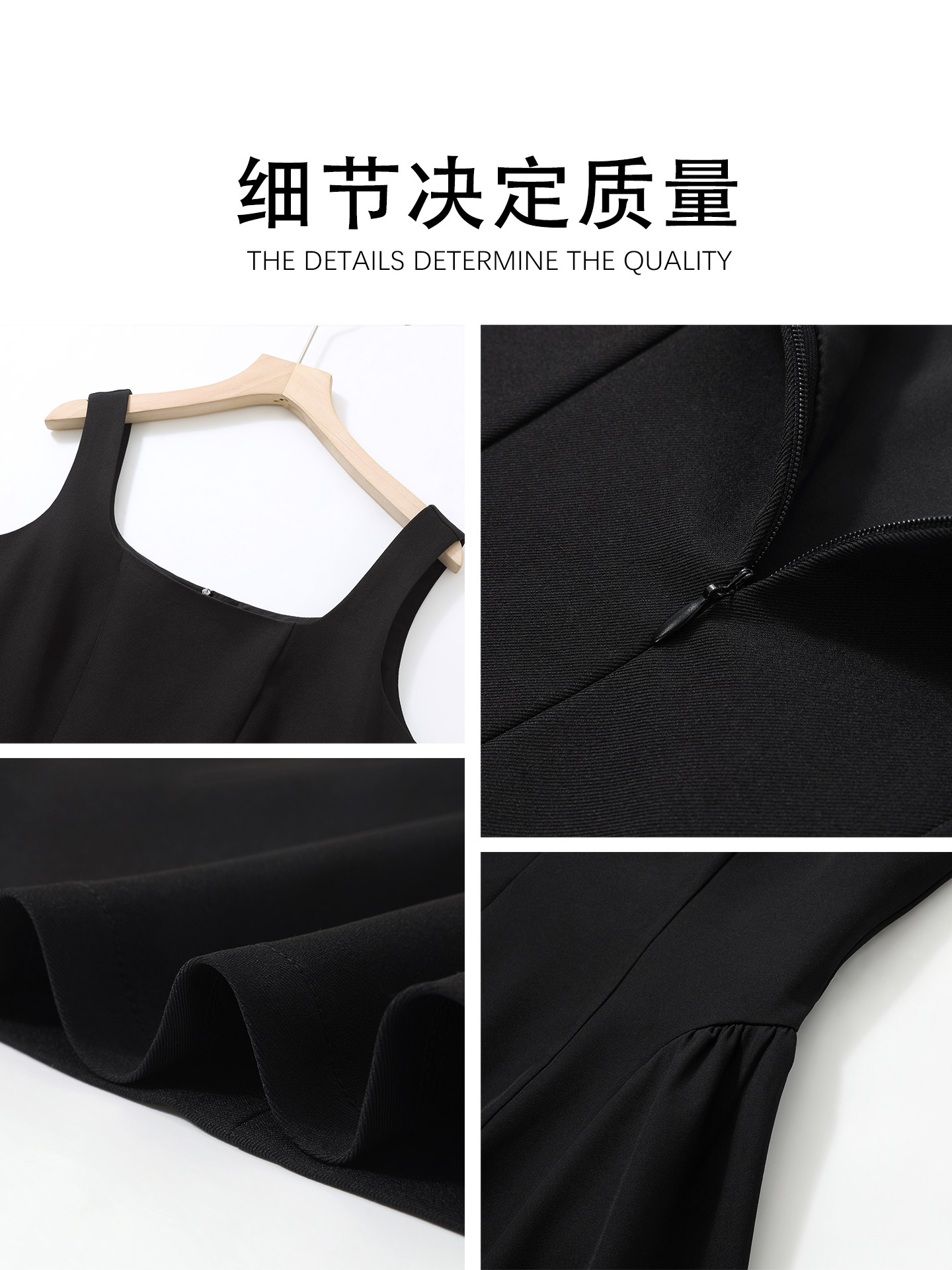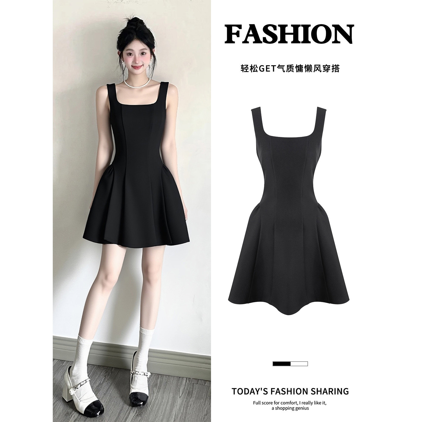 Black waist camisole dress for women, unique and beautiful waist skirt Hepburn-style little black dress A-line short
