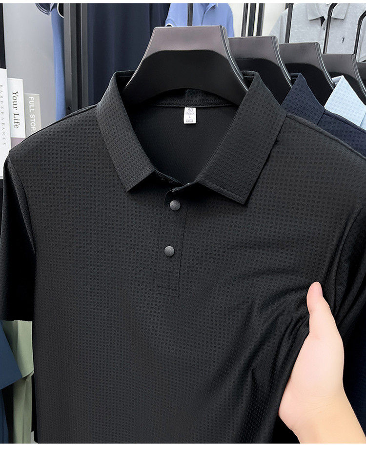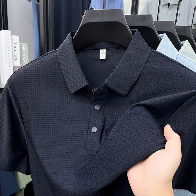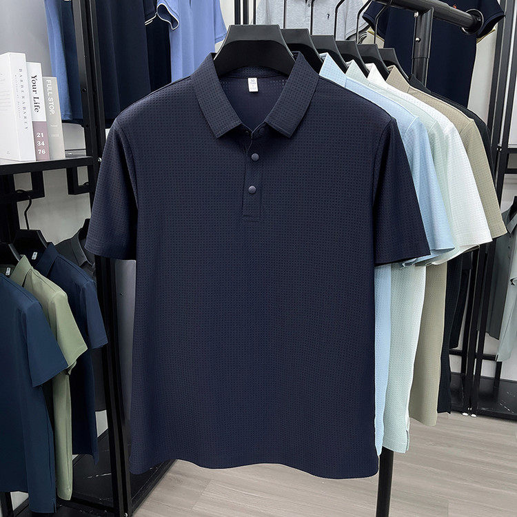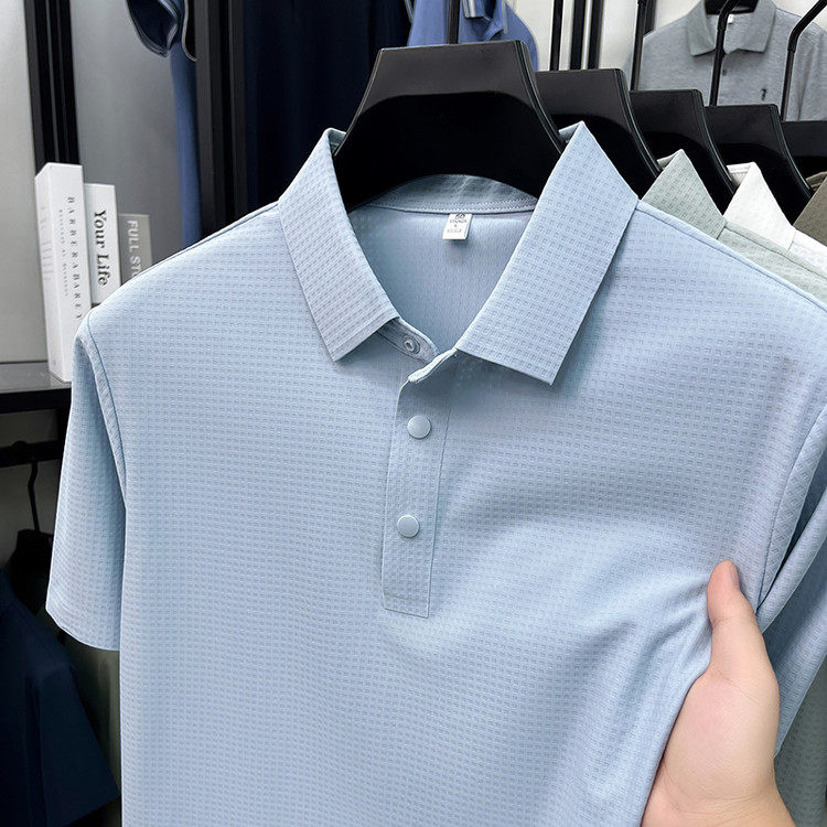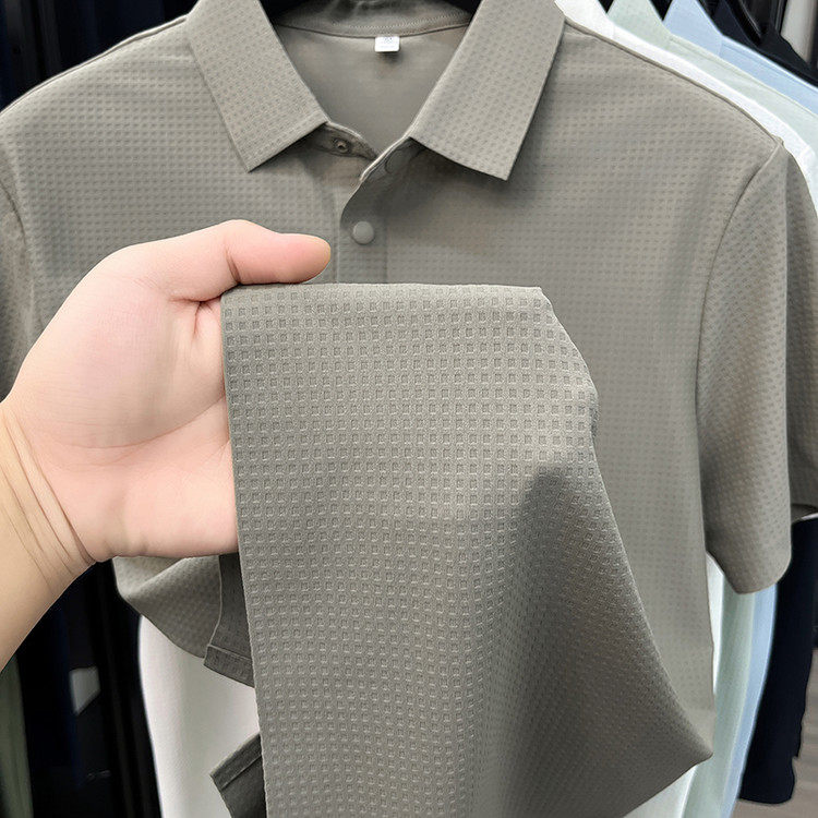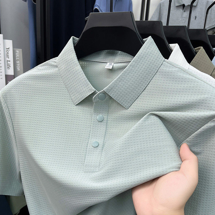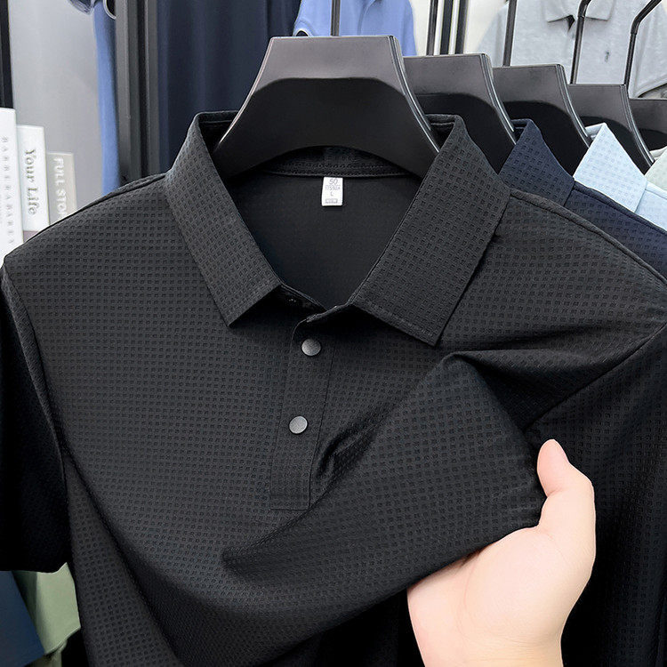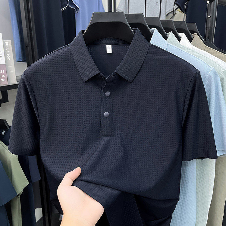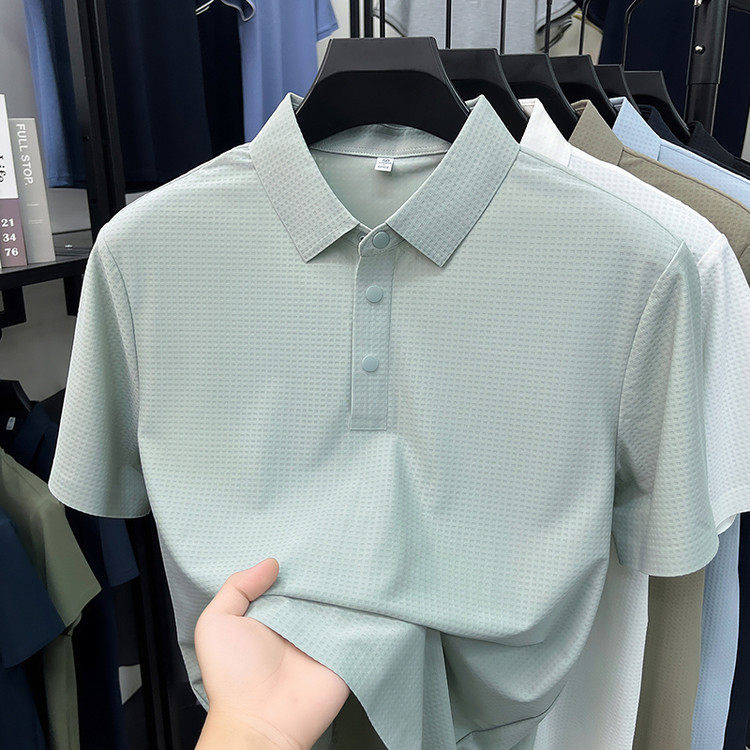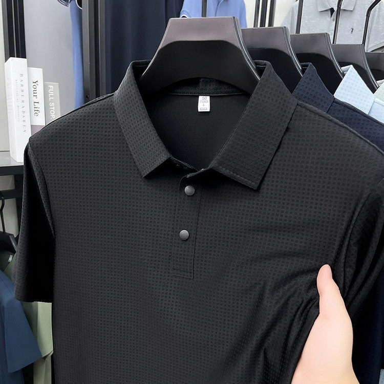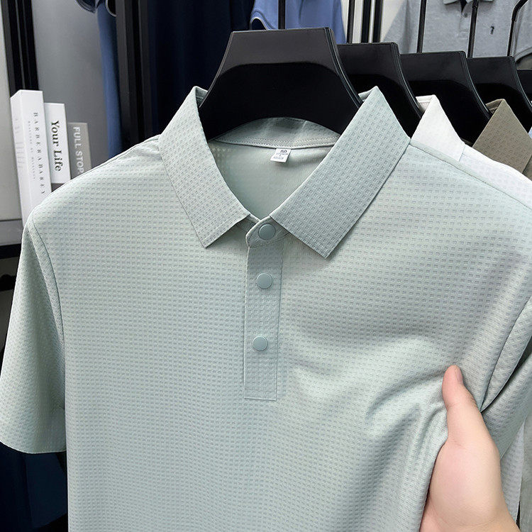 New men's ice silk seamless short-sleeved T-shirt 2026 summer middle-aged fashion casual lapel polo shirt top trend