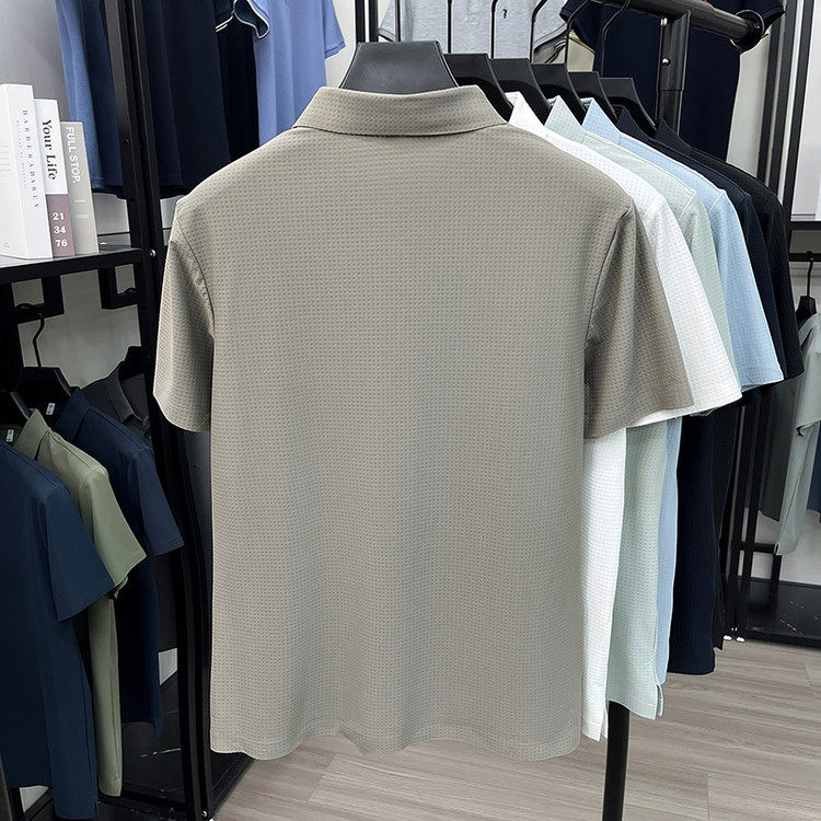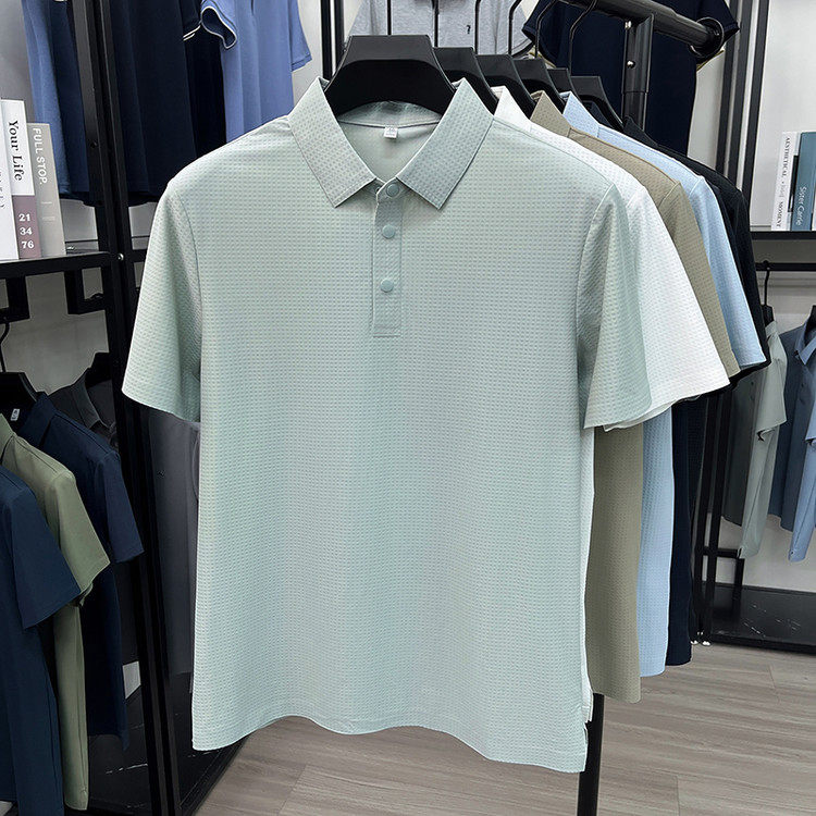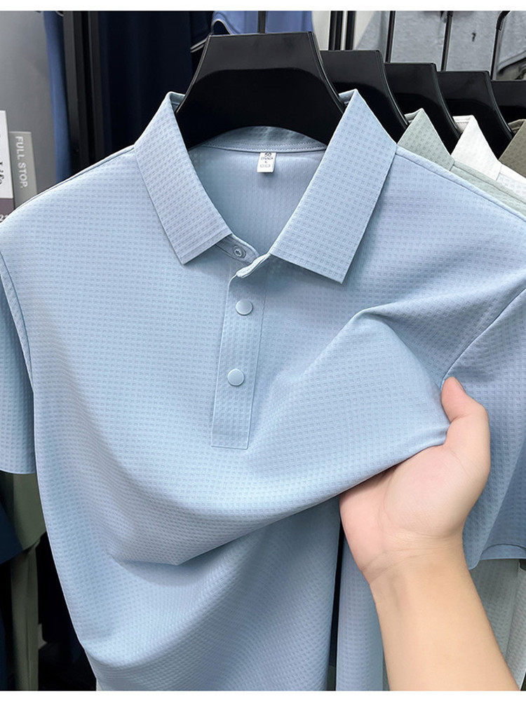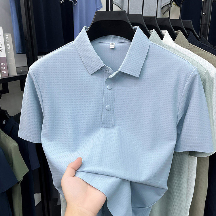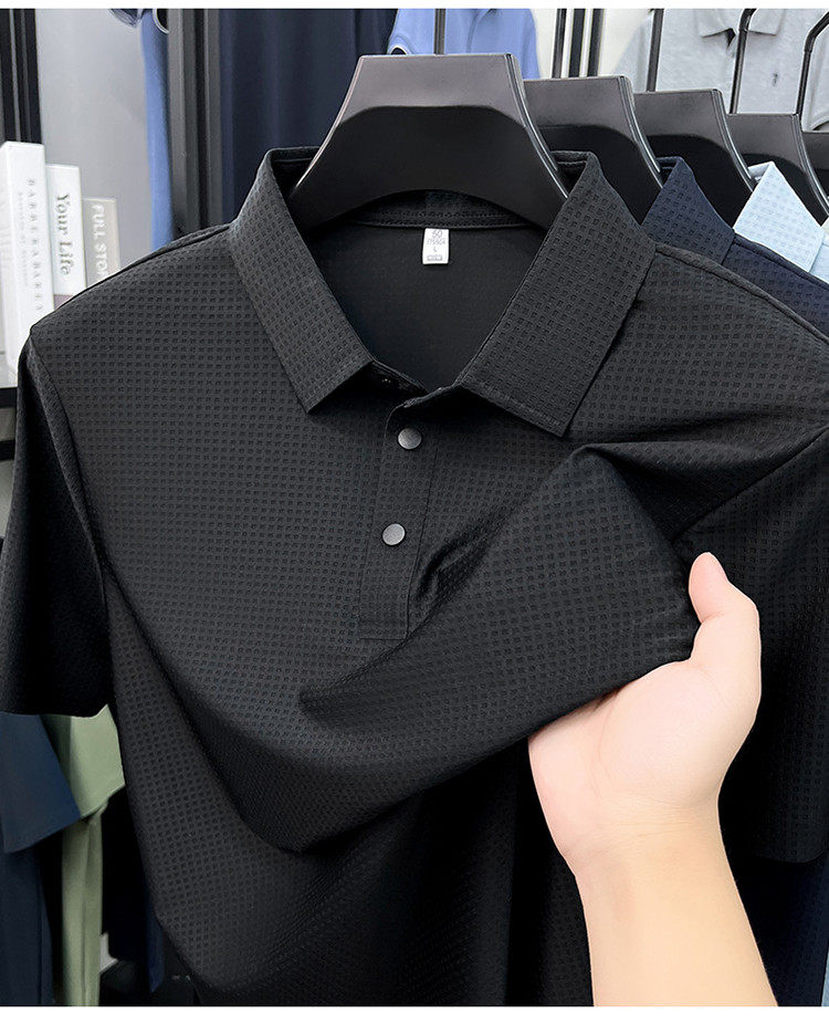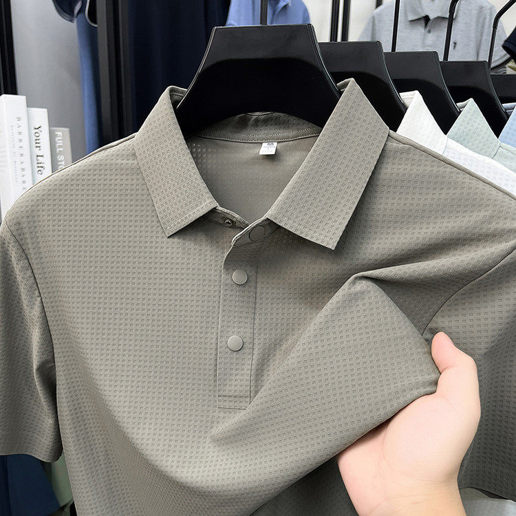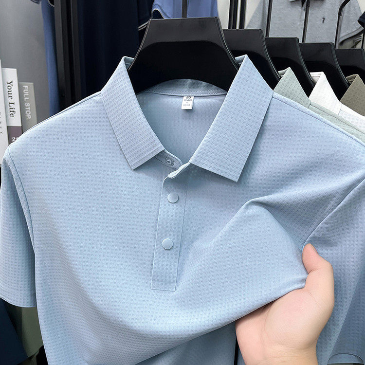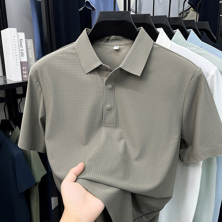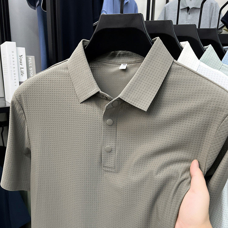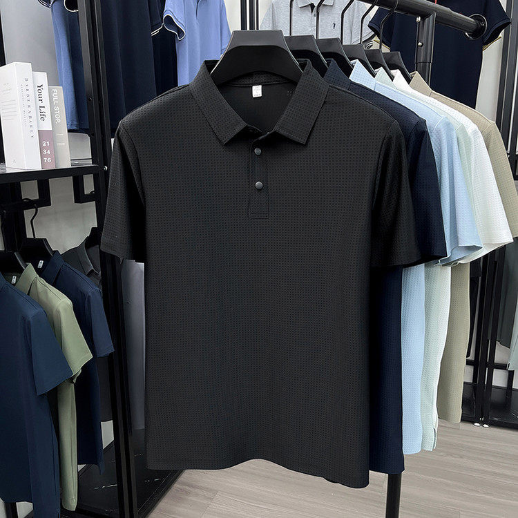 New men's ice silk seamless short-sleeved T-shirt 2026 summer middle-aged fashion casual lapel polo shirt top trend