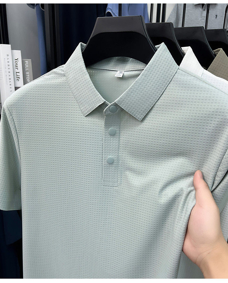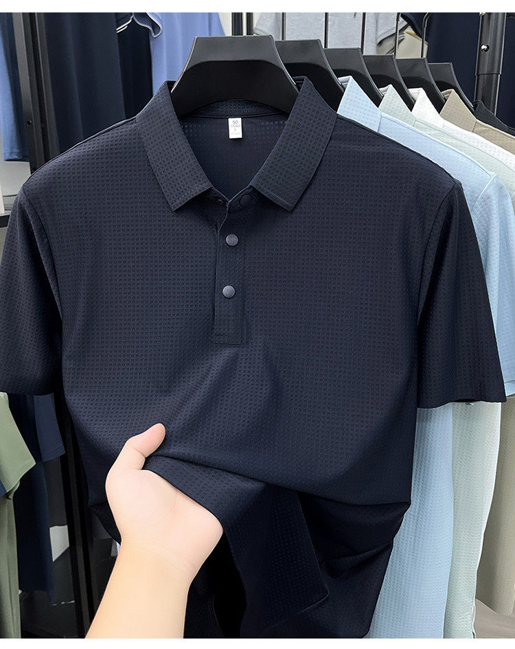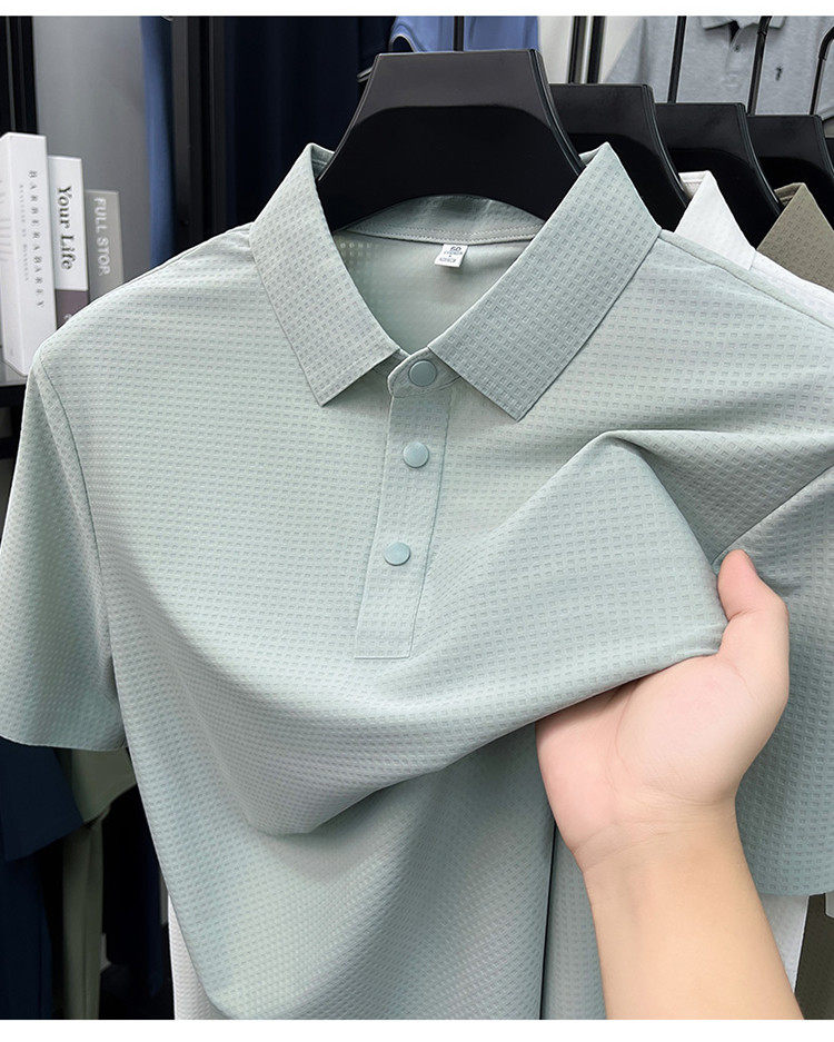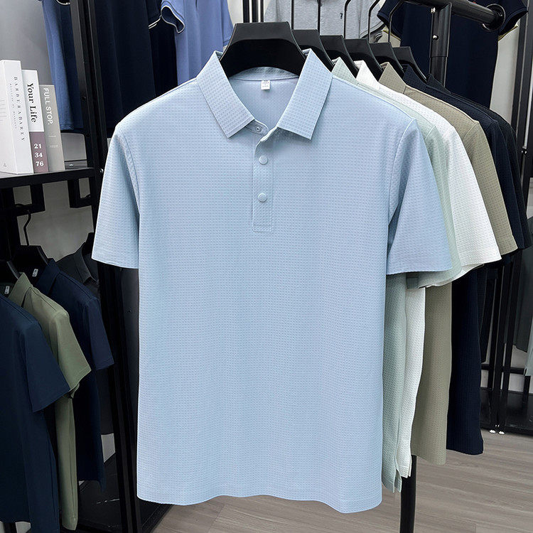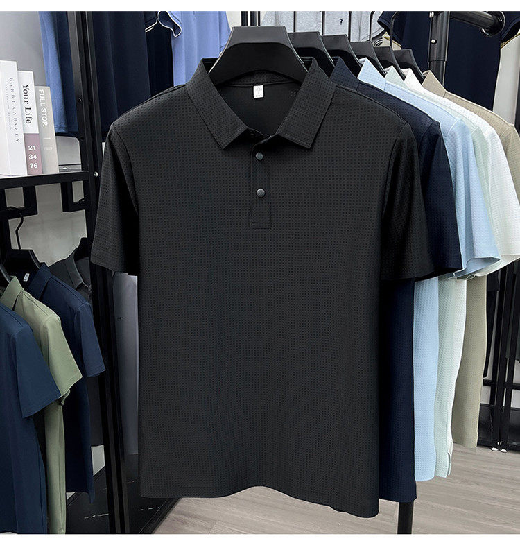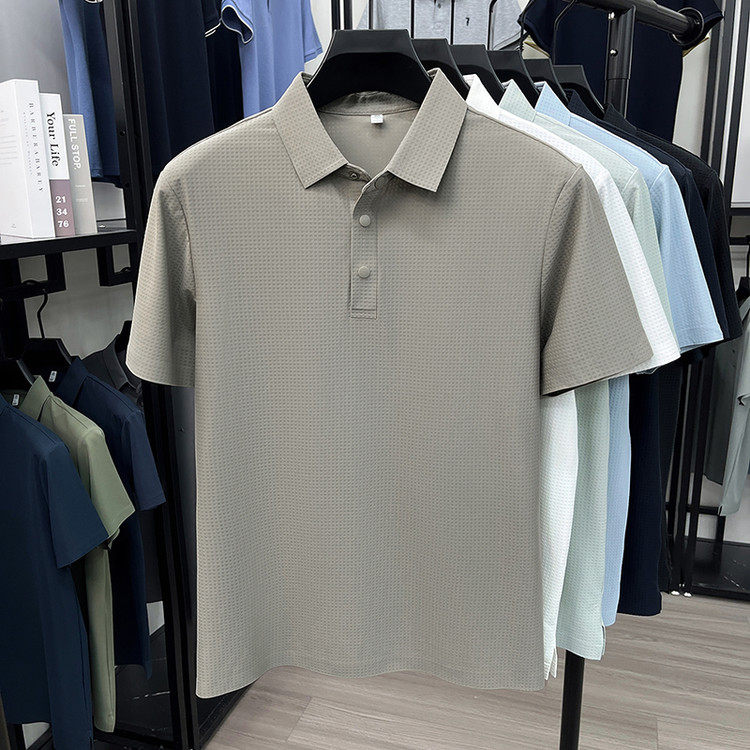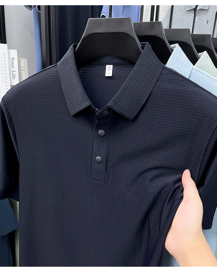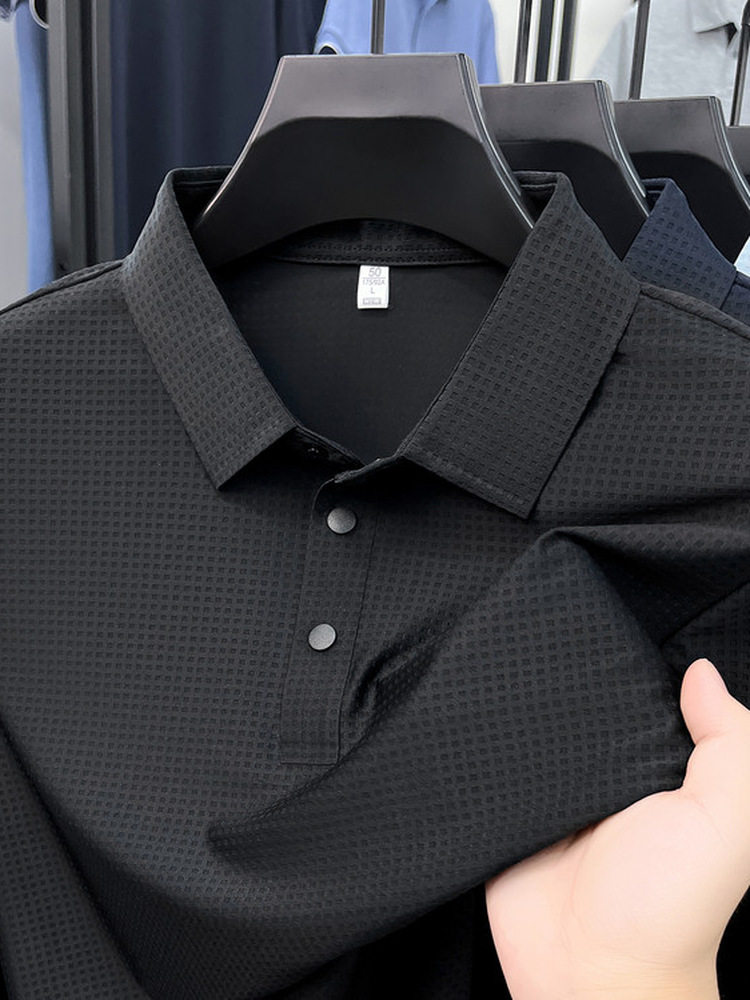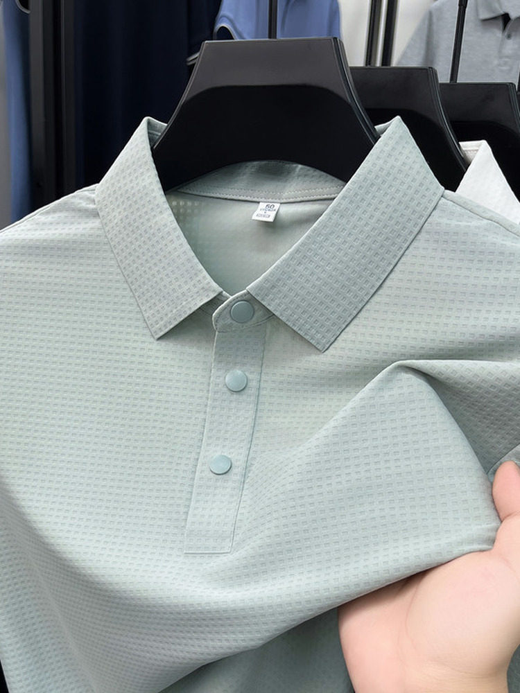 New men's ice silk seamless short-sleeved T-shirt 2026 summer middle-aged fashion casual lapel polo shirt top trend