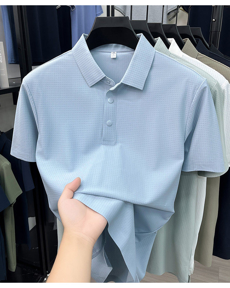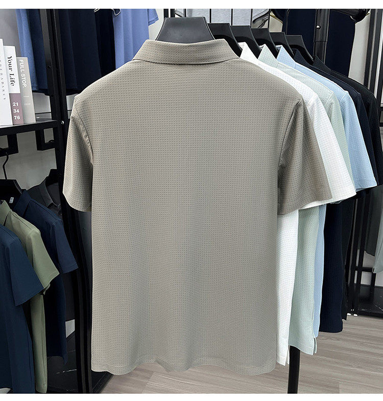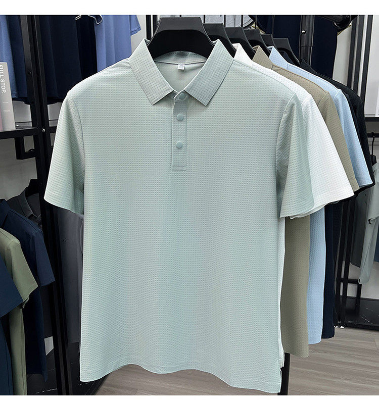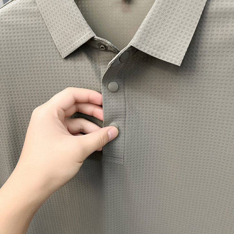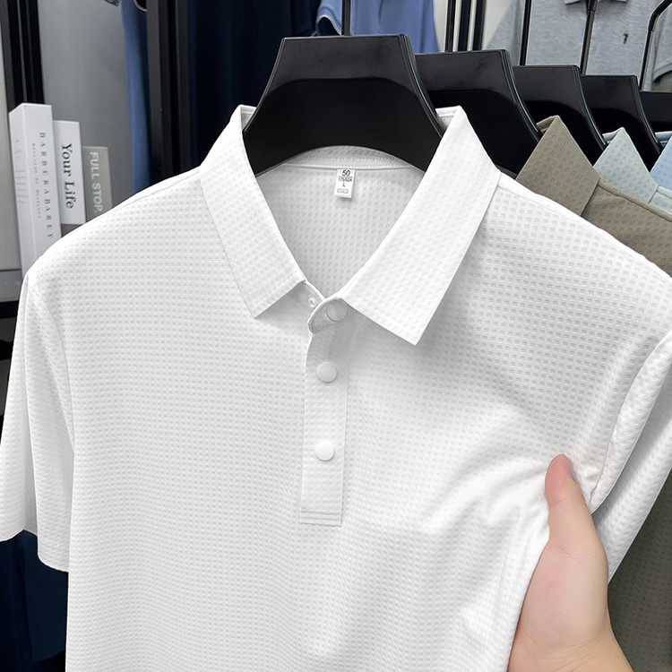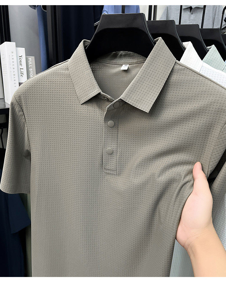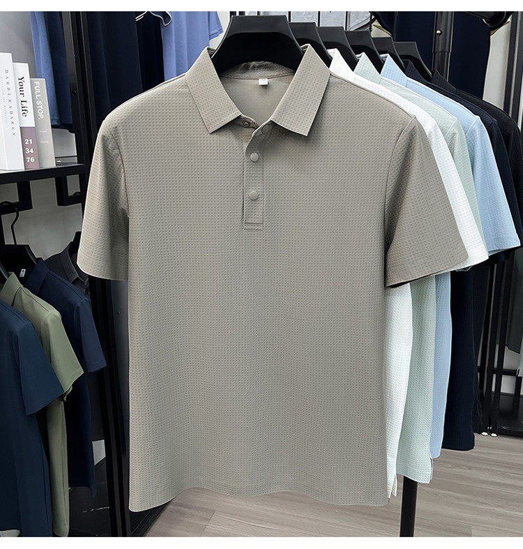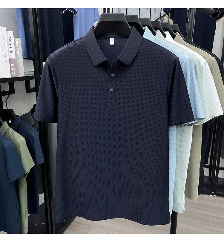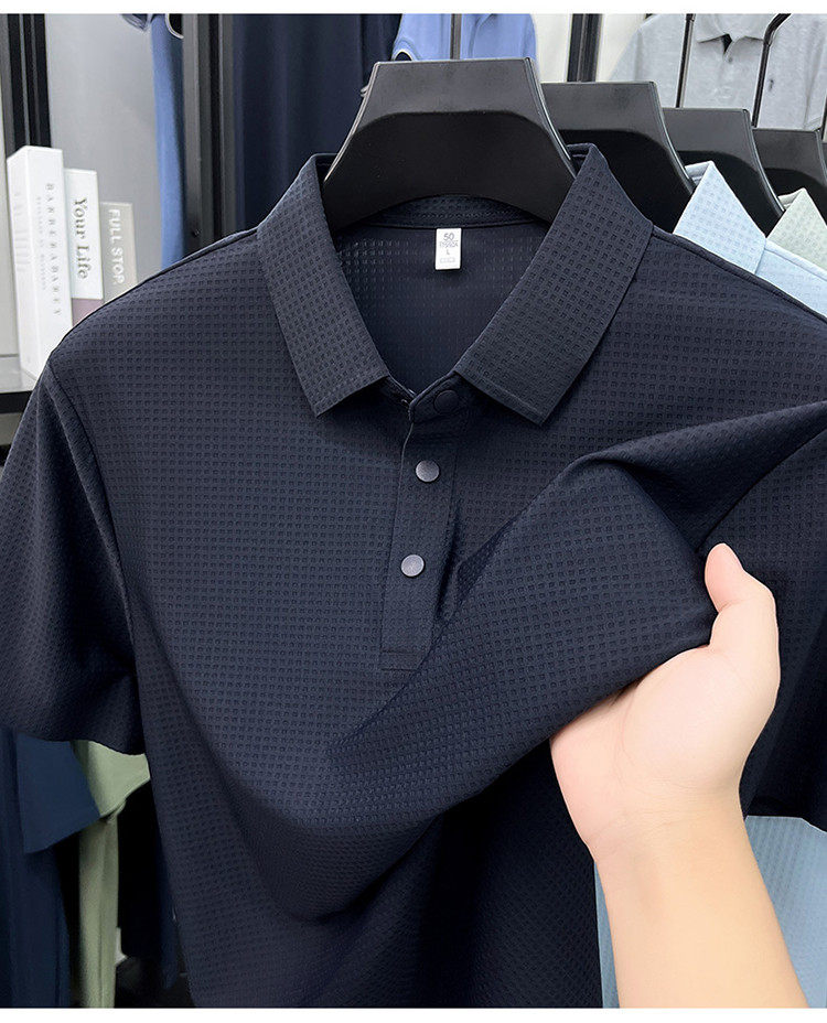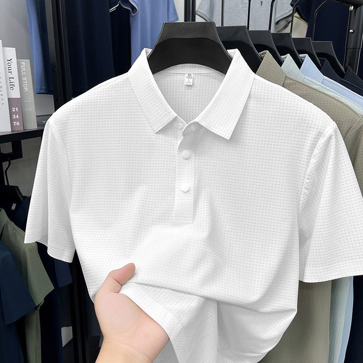New men's ice silk seamless short-sleeved T-shirt 2026 summer middle-aged fashion casual lapel polo shirt top trend