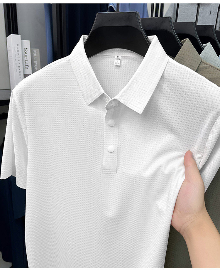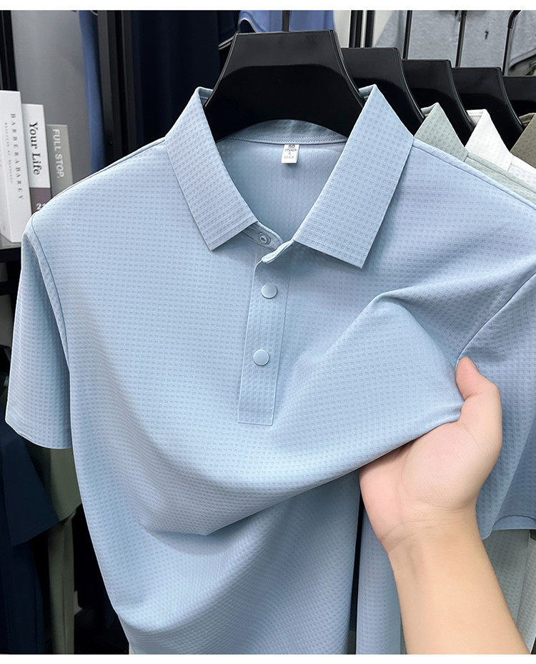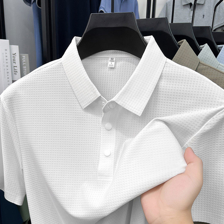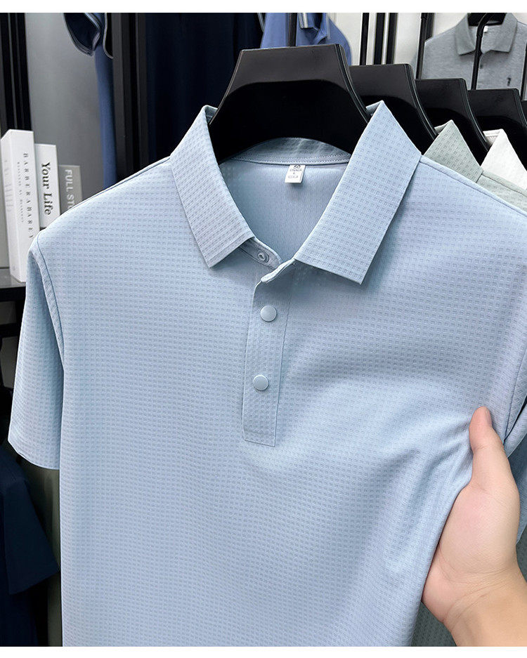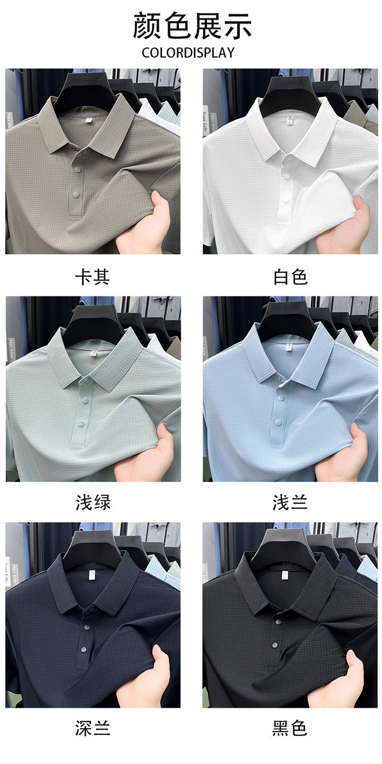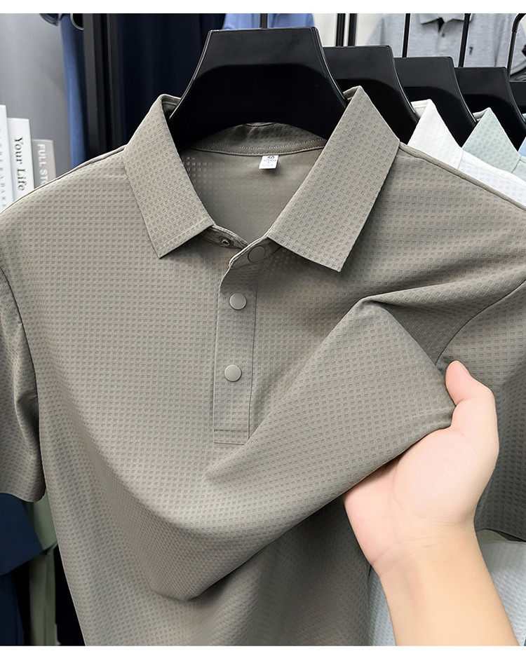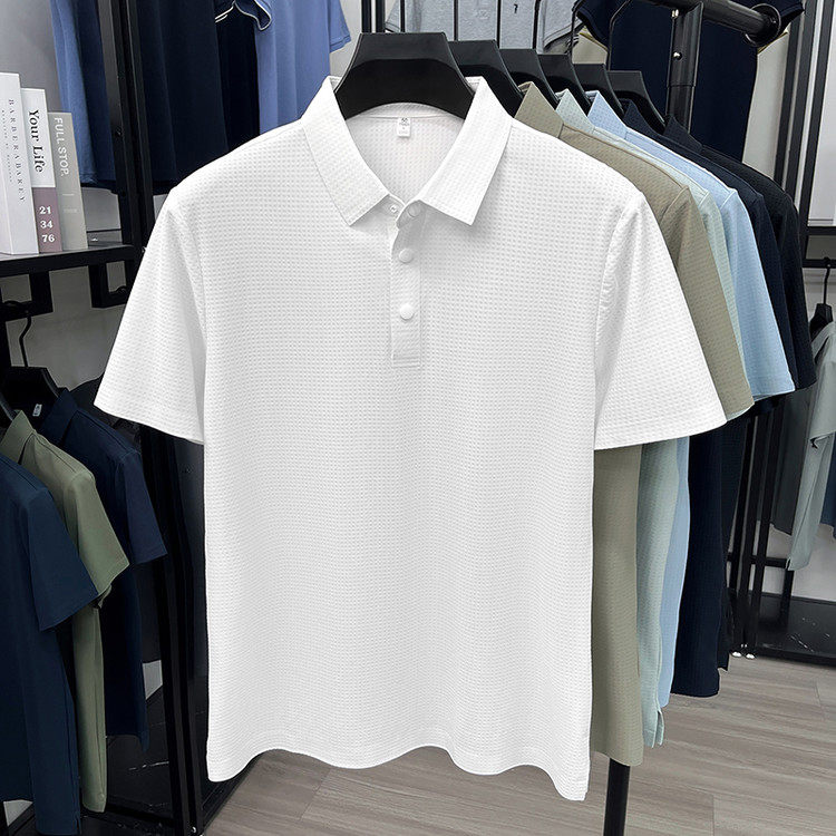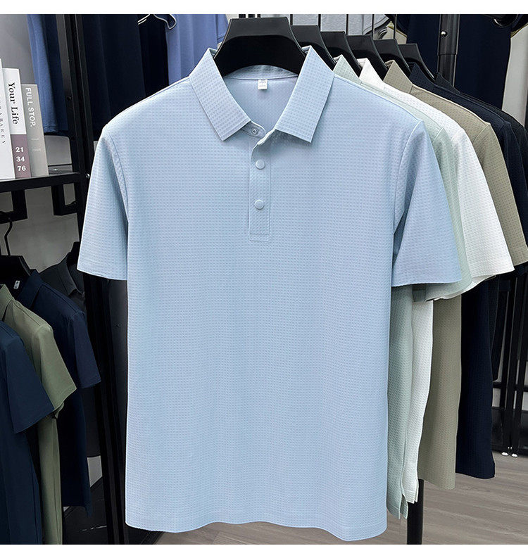 New men's ice silk seamless short-sleeved T-shirt 2026 summer middle-aged fashion casual lapel polo shirt top trend