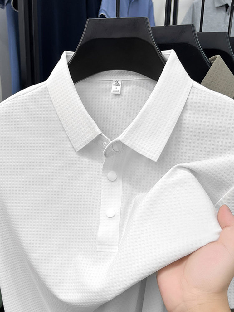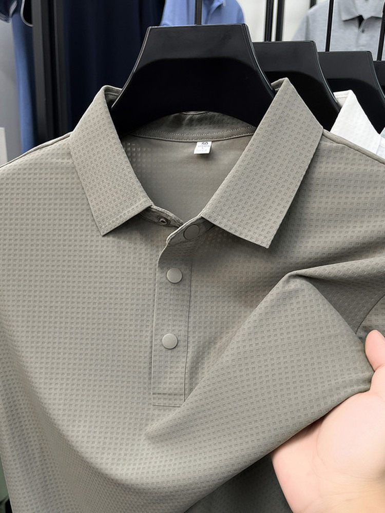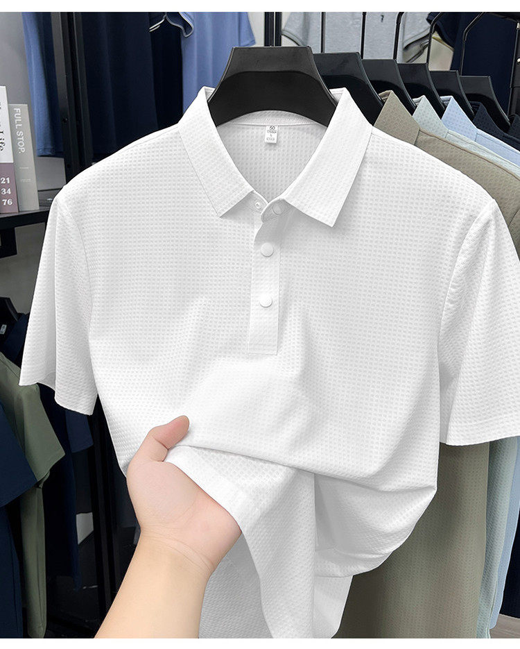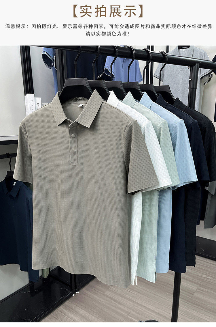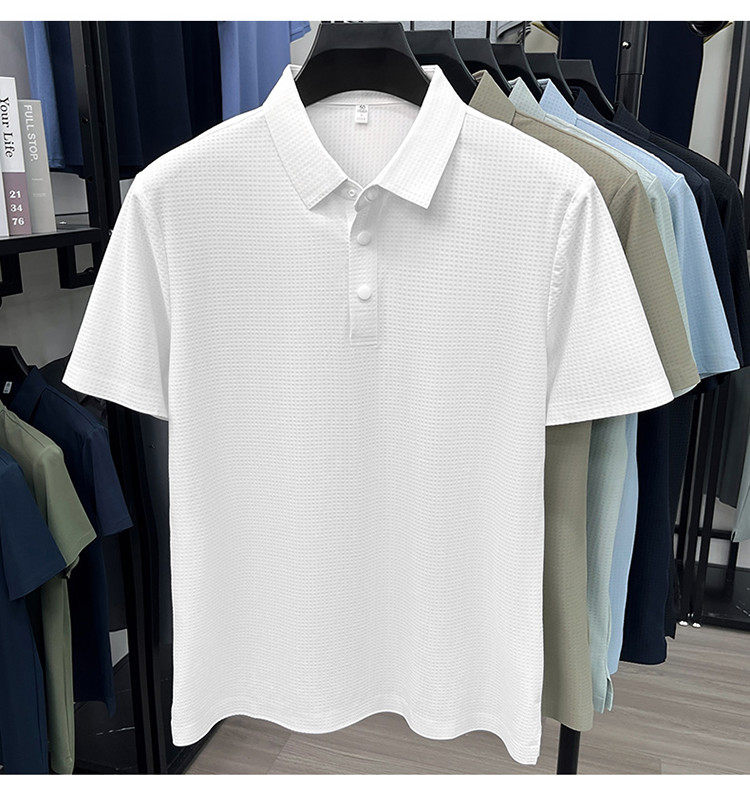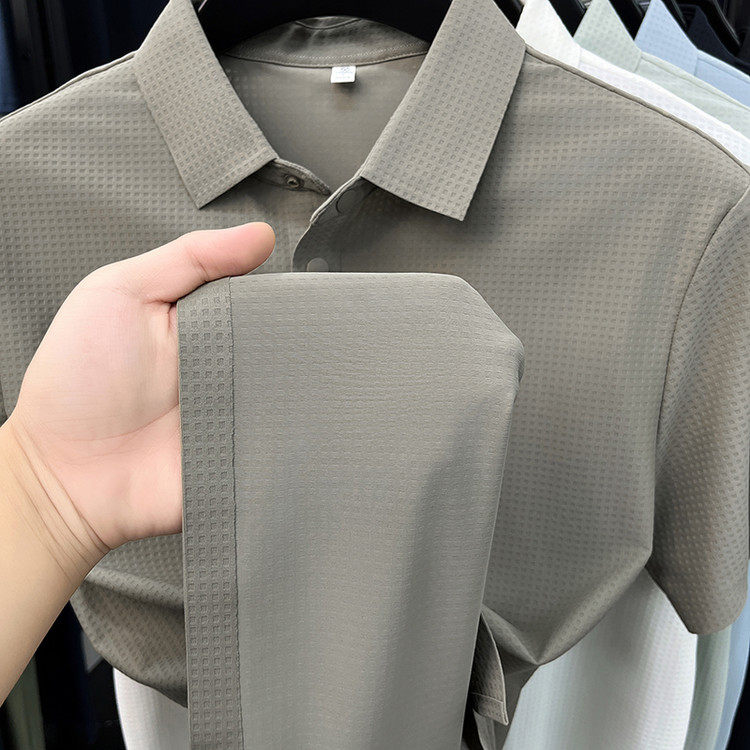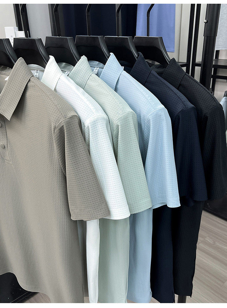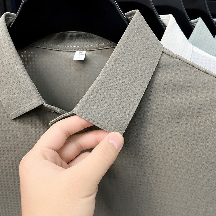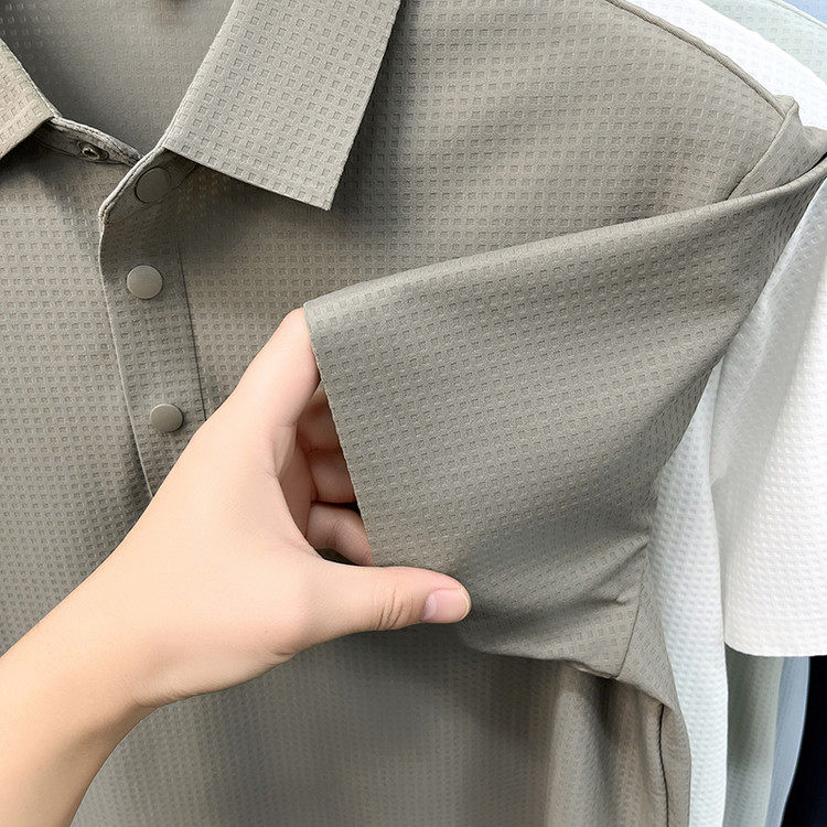 New men's ice silk seamless short-sleeved T-shirt 2026 summer middle-aged fashion casual lapel polo shirt top trend