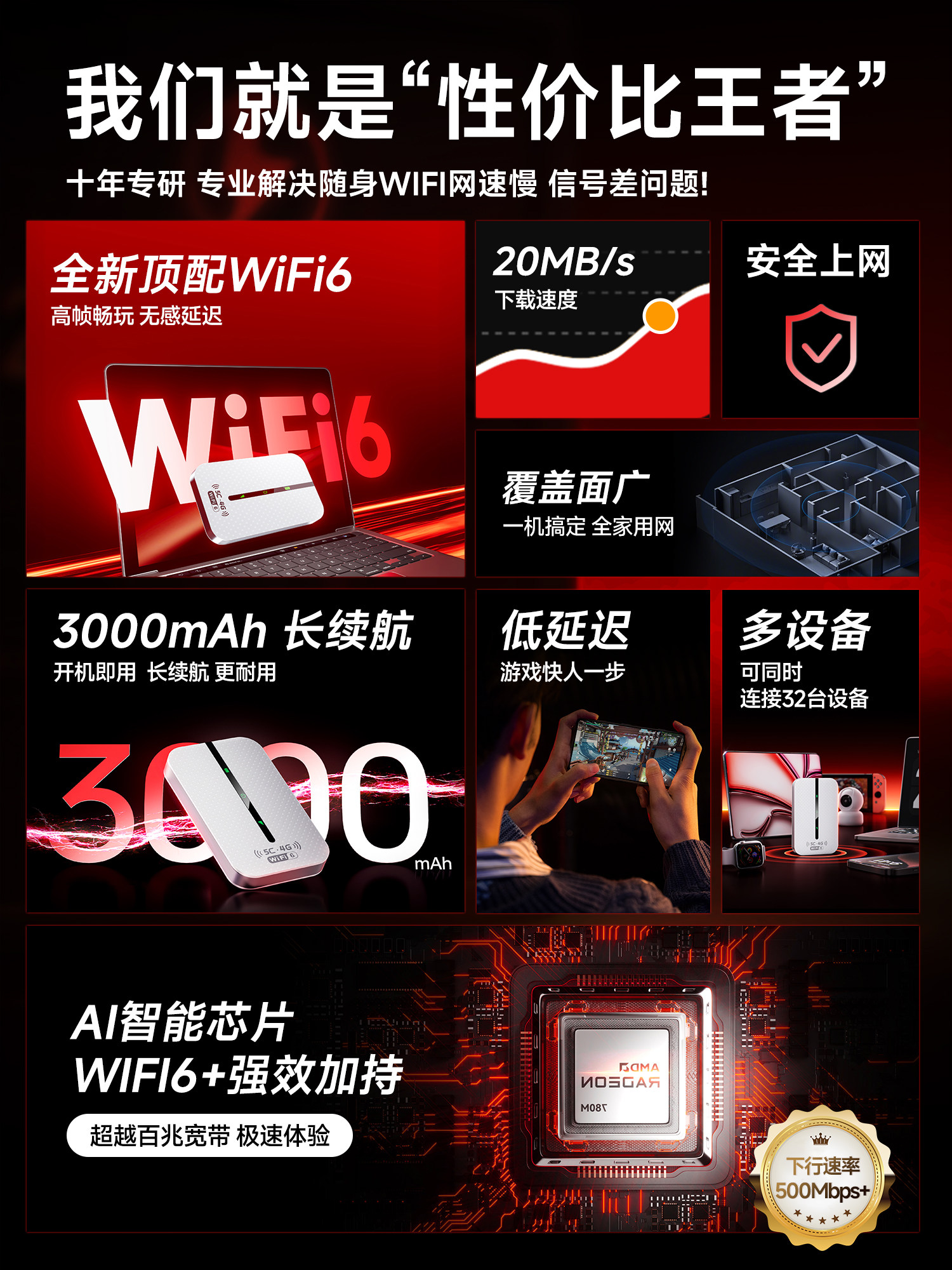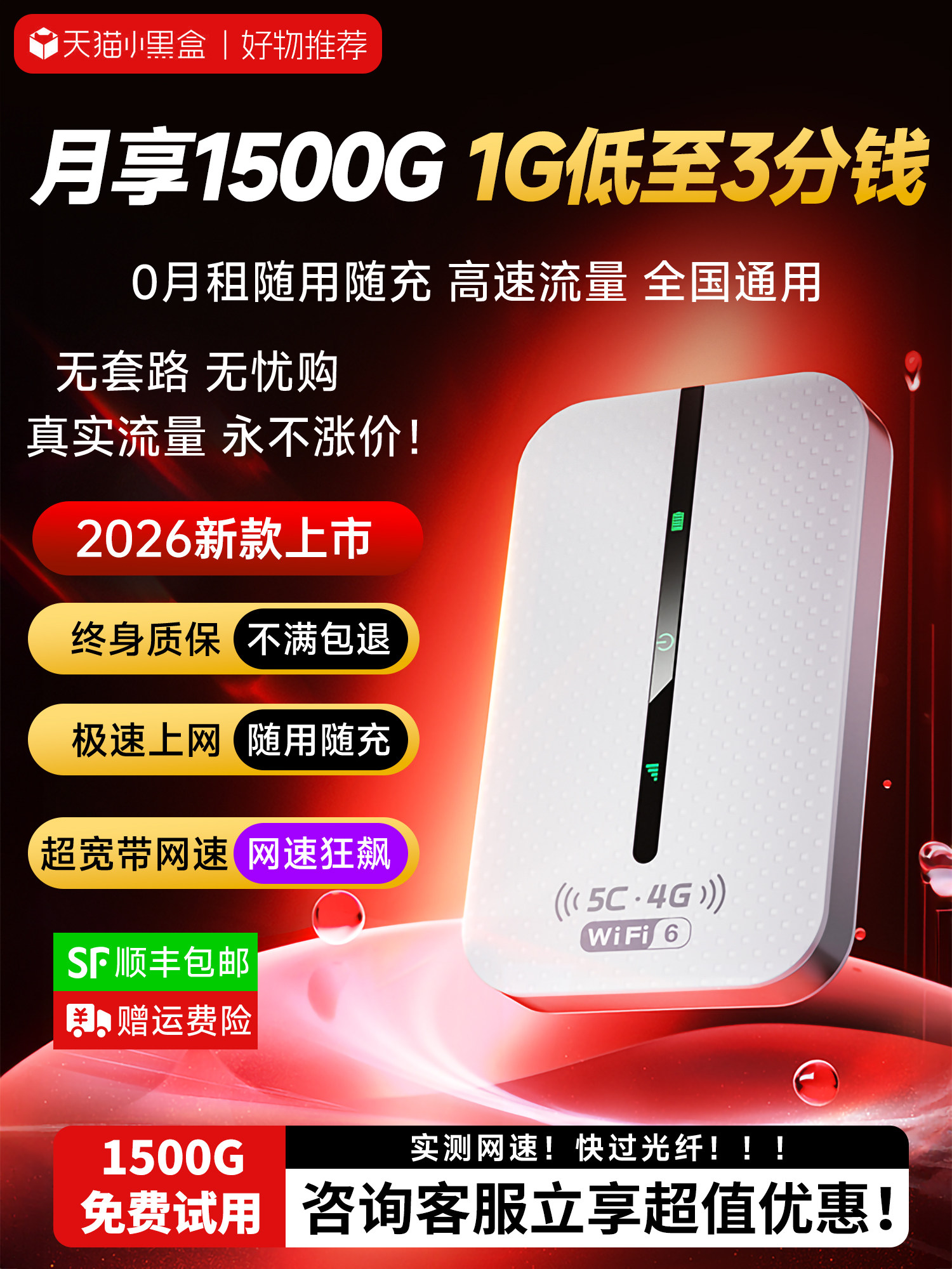 Portable wifi6 wireless network 2026 new mobile data nationwide high-end portable portable smart home Internet car wi-fi router hotspot official genuine flagship store