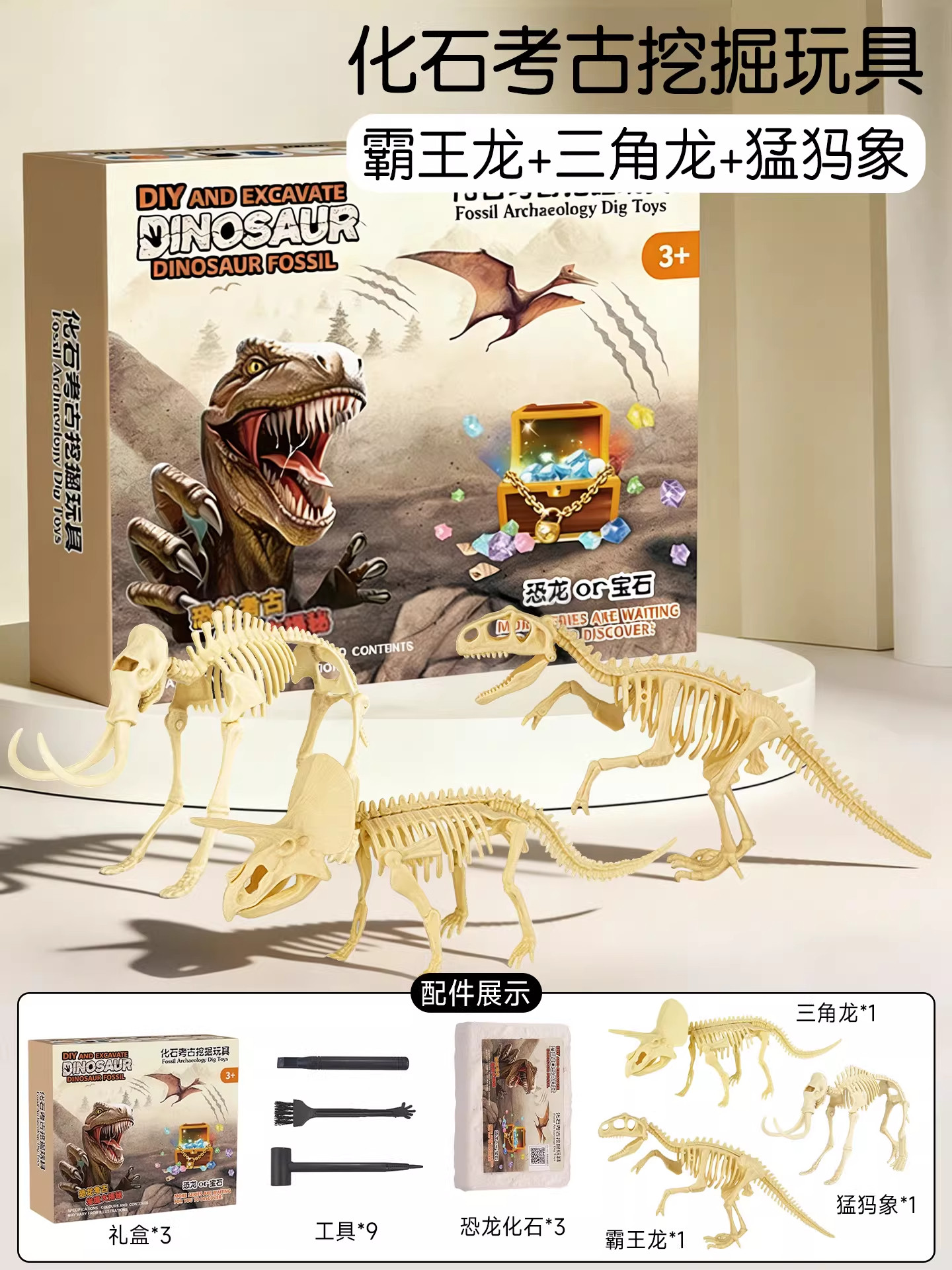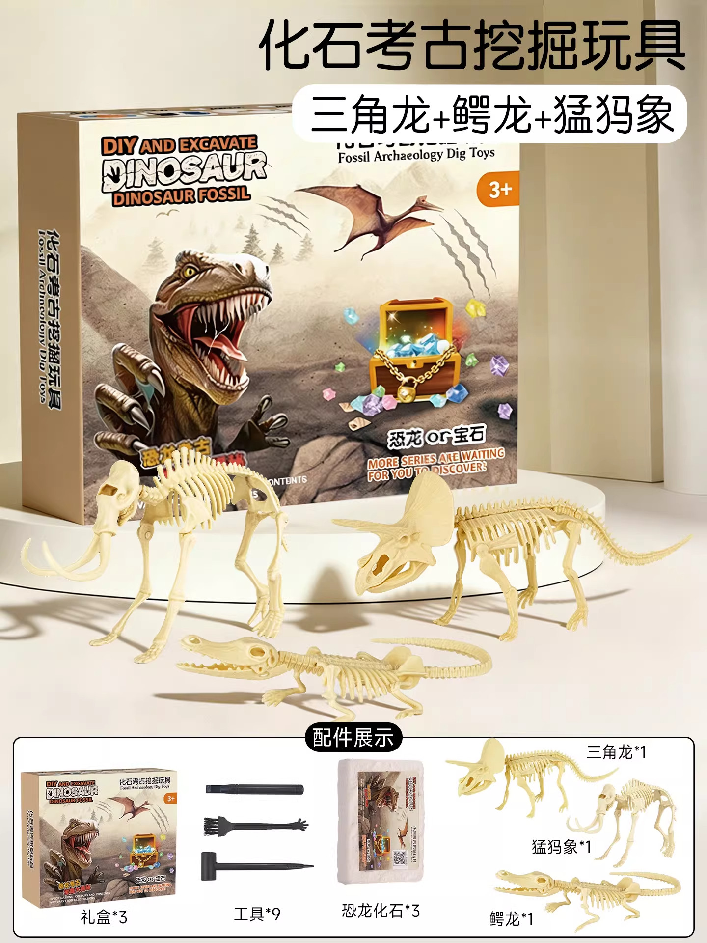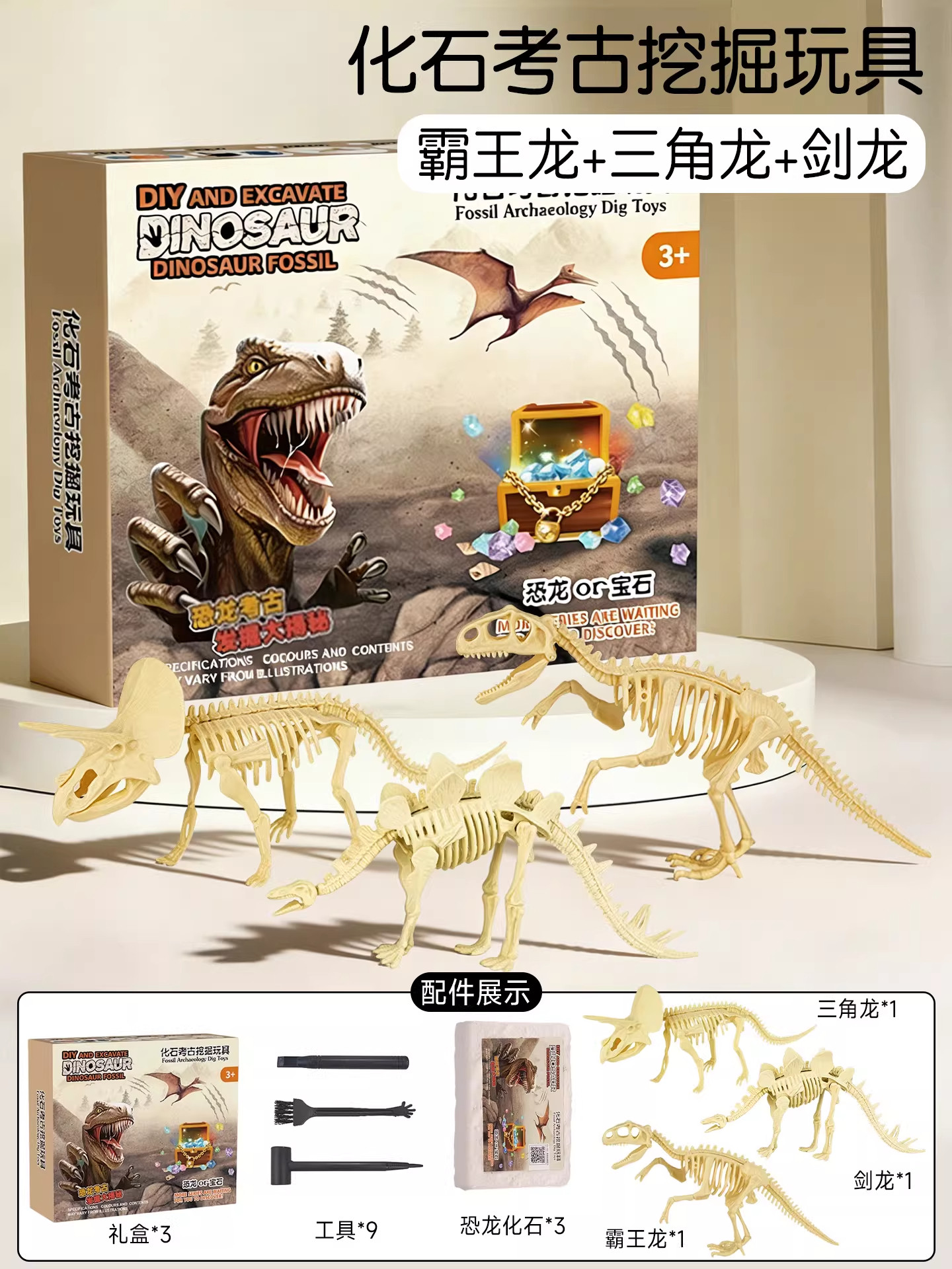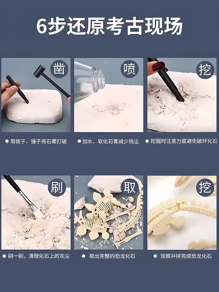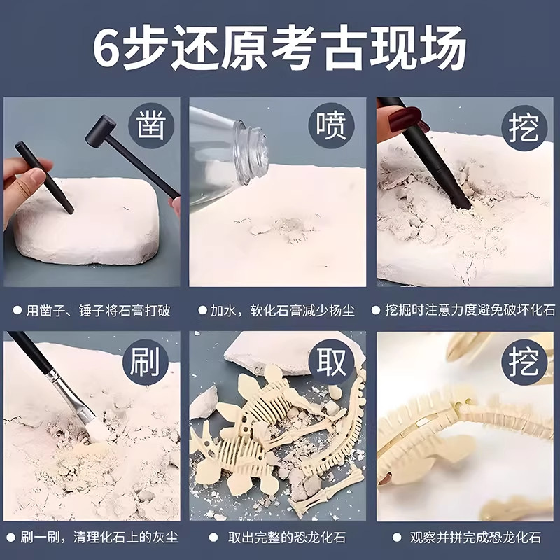 Dinosaur fossil archaeological excavation toys children hand smash plaster can be assembled skeleton model ornaments boys gifts