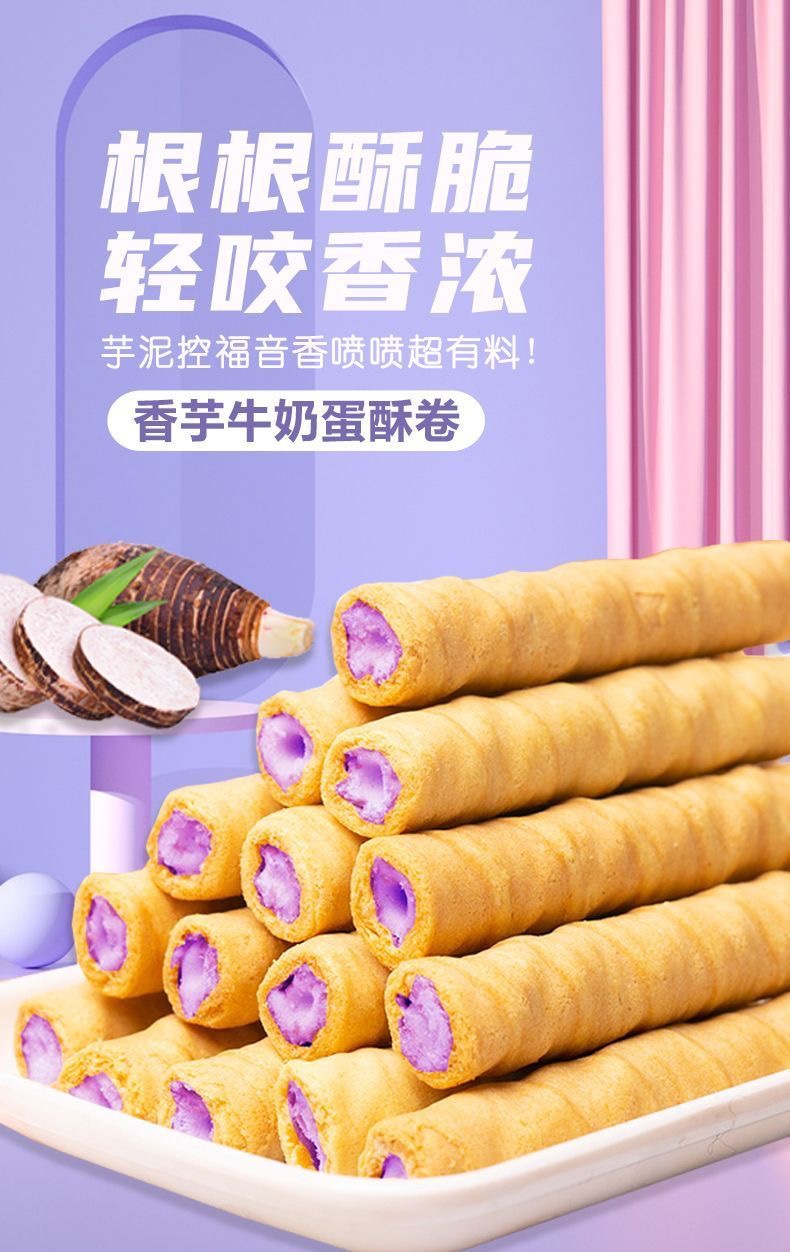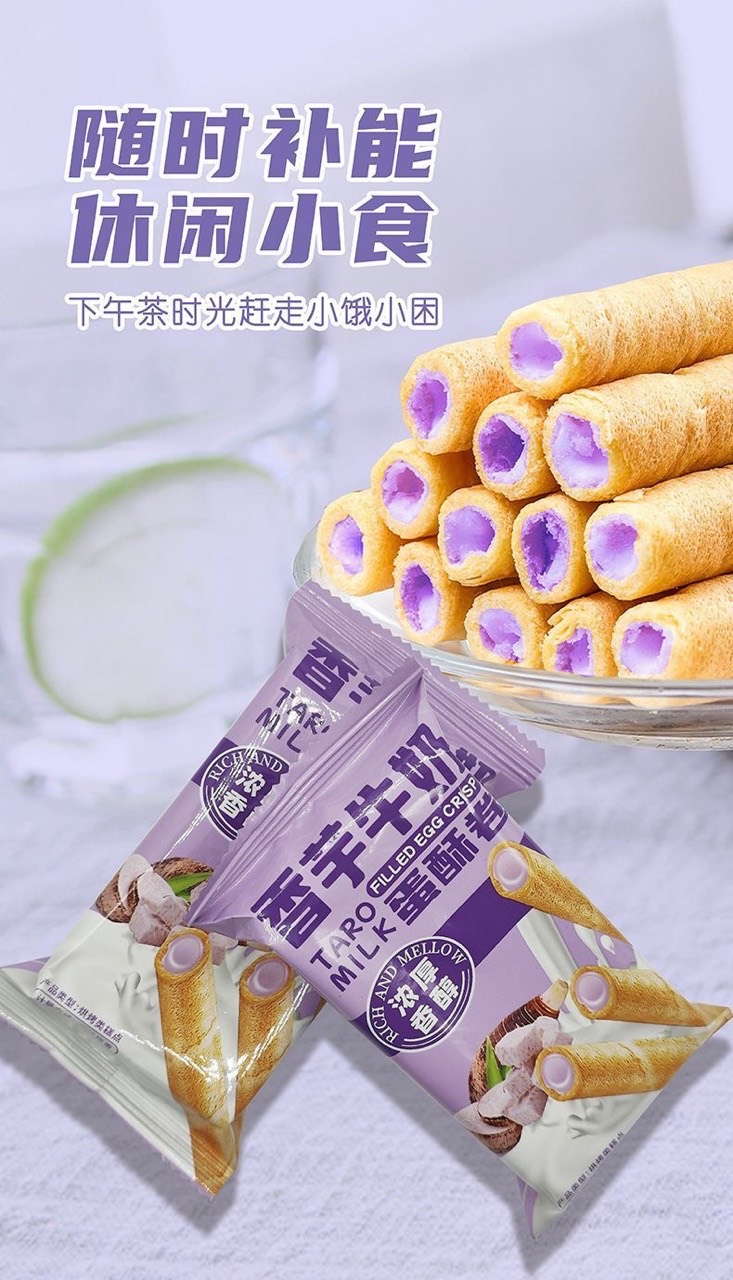Buy one, get one free, taro milk sandwich egg rolls, taro puree, milky heartfelt egg rolls, casual cravings, snacks, biscuits