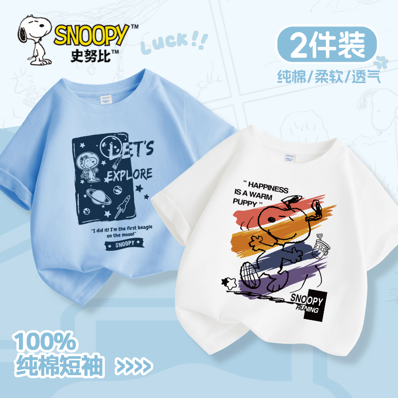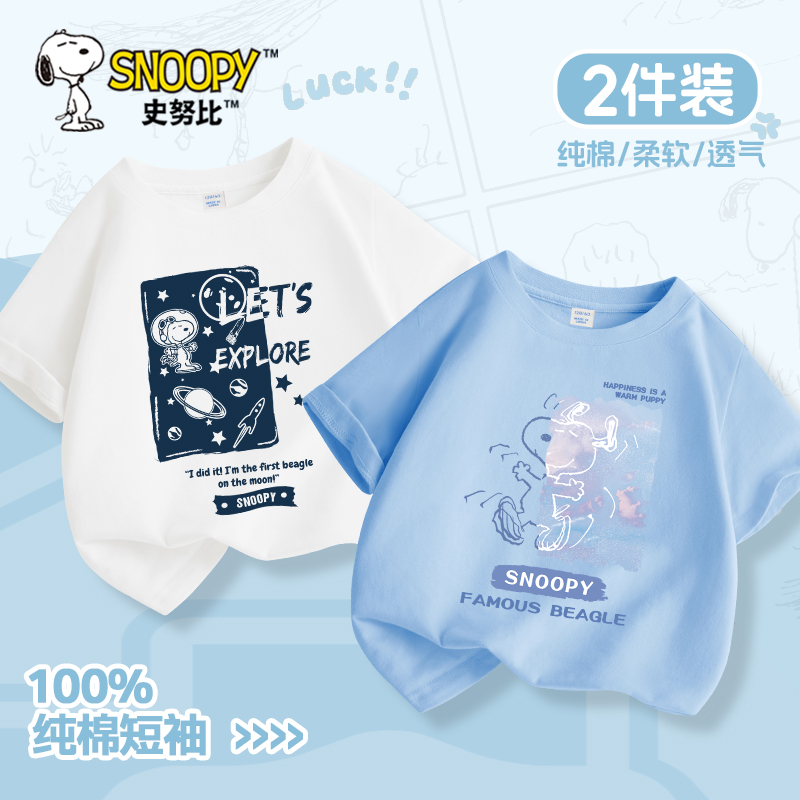 Snoopy Boys Short Sleeve T-Shirt 2025 New Cotton Half Sleeve Boys Summer Dress T-shirt Children's Tops Summer Thin