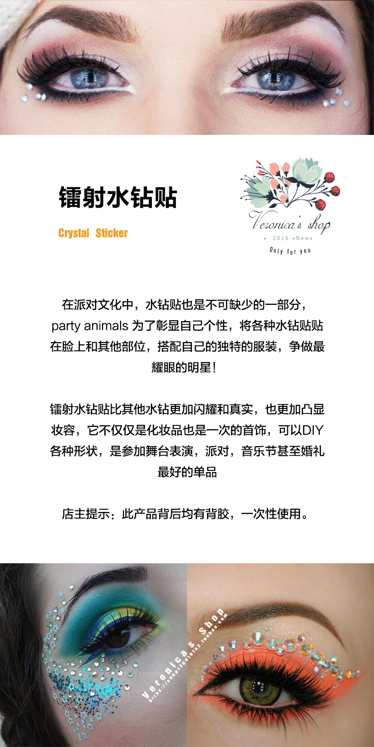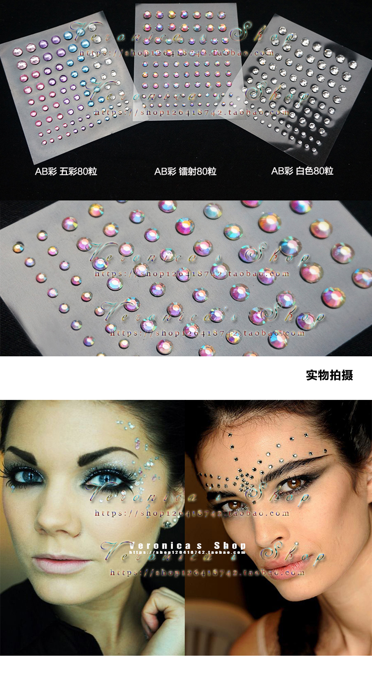 European and American hot music festival EDM makeup special effects face fashionista street shooting water diamond stickers beauty accessories