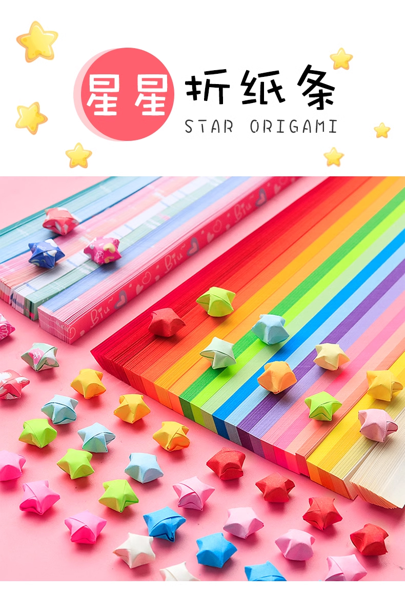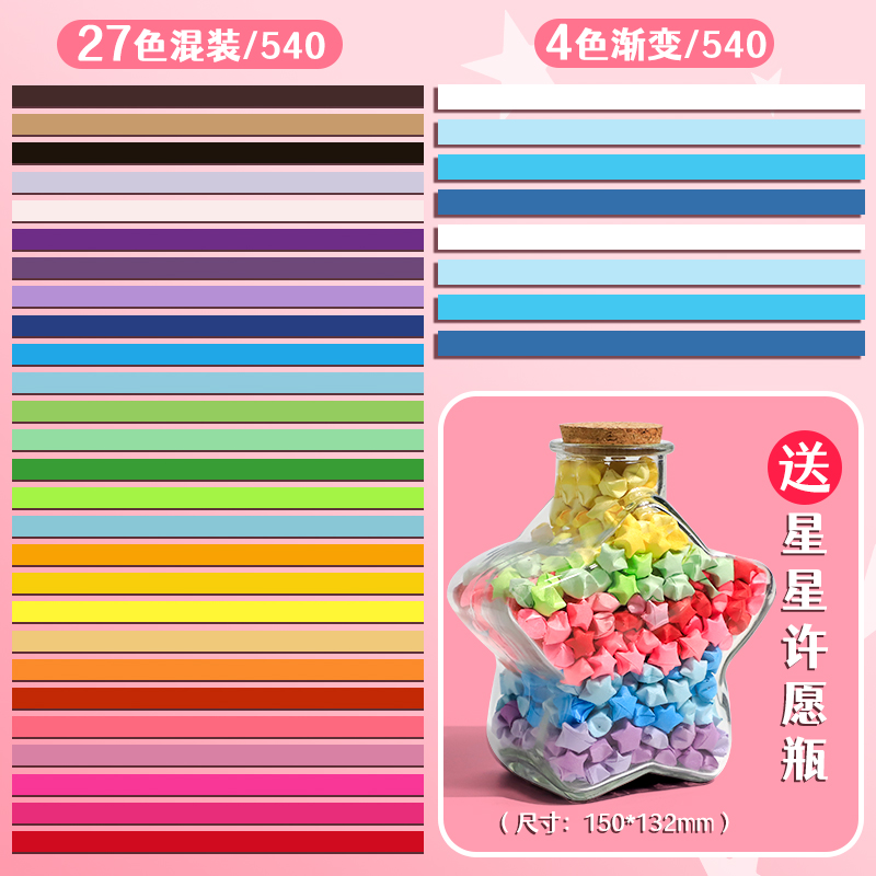 Color star origami strip gradient color lucky star five-pointed star paper hand-folded star special paper small star long strip conferry kindergarten wishing bottle glass bottle luminous DIY cute
