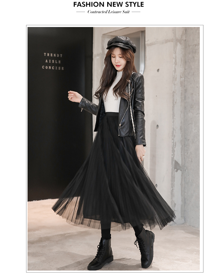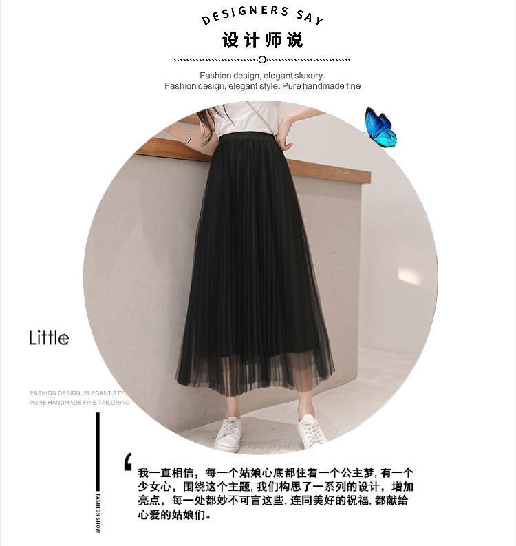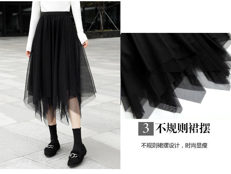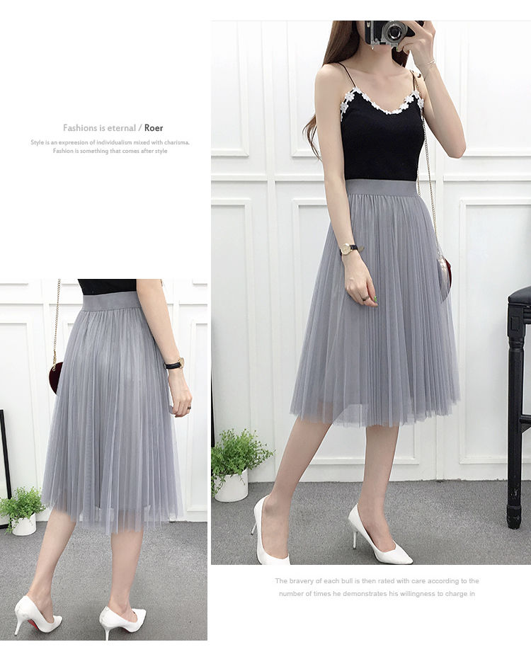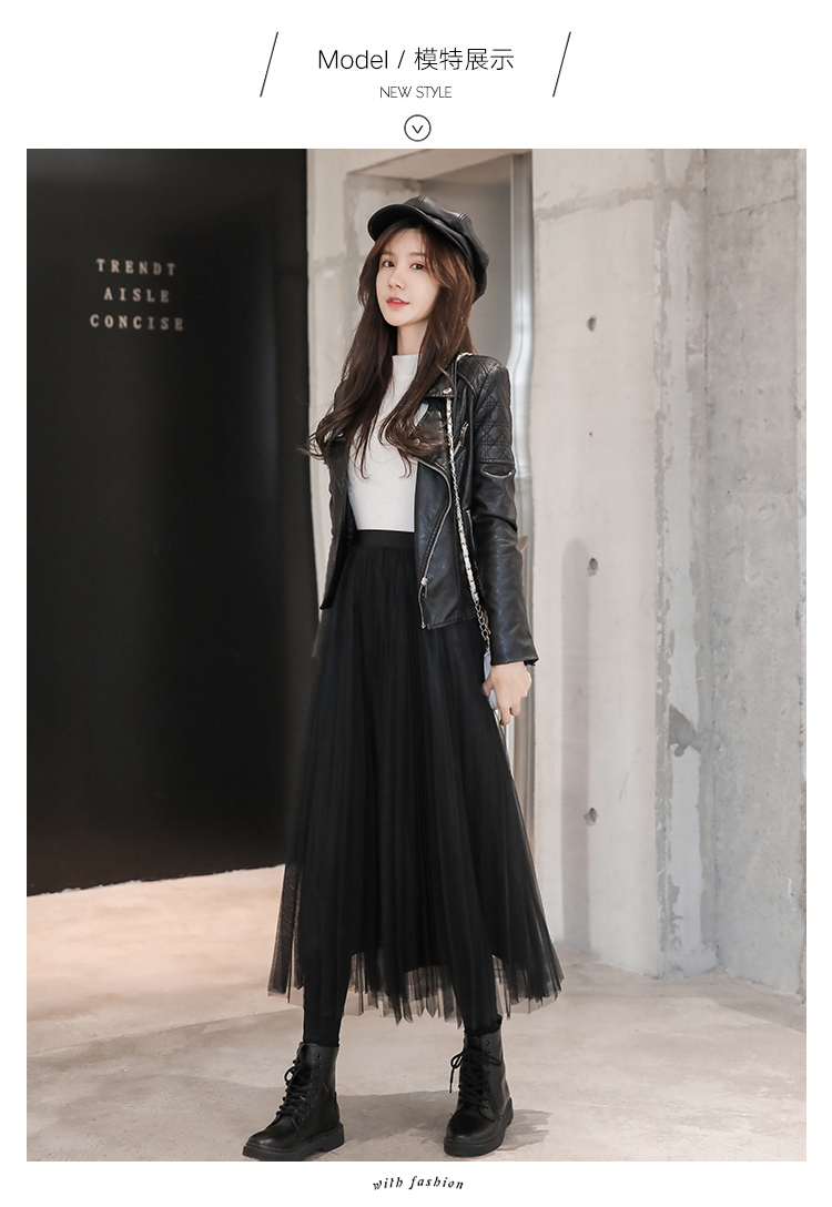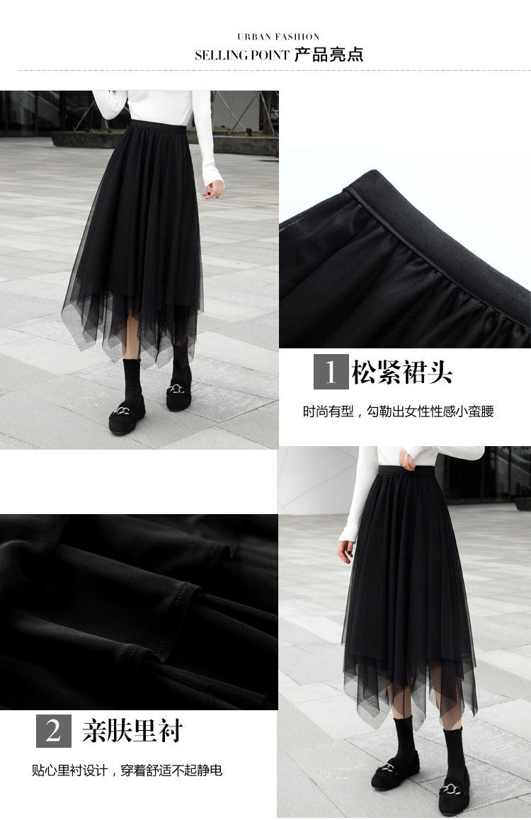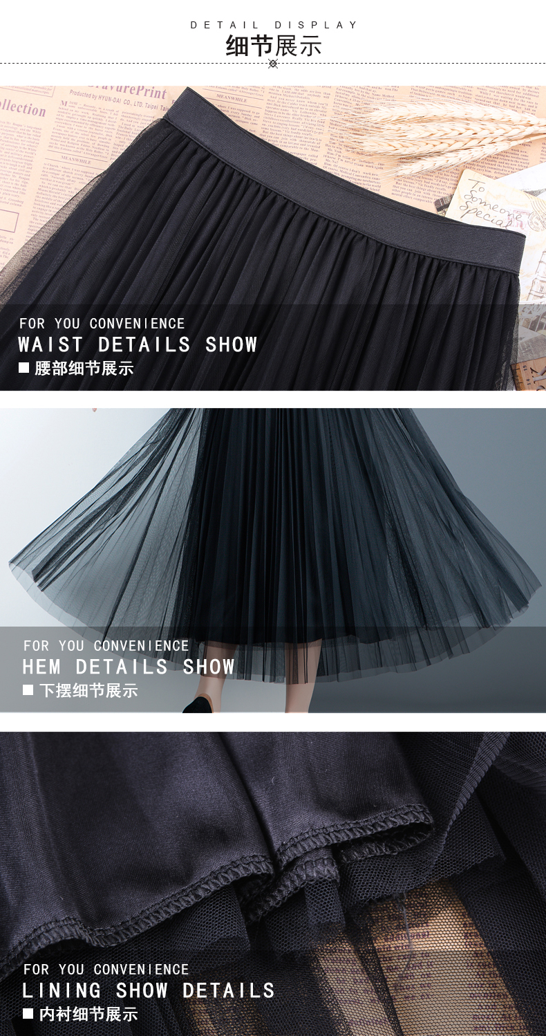 Fleece mesh skirt 2025 winter new high-waisted slimming mid-length fairy A-line pleated skirt