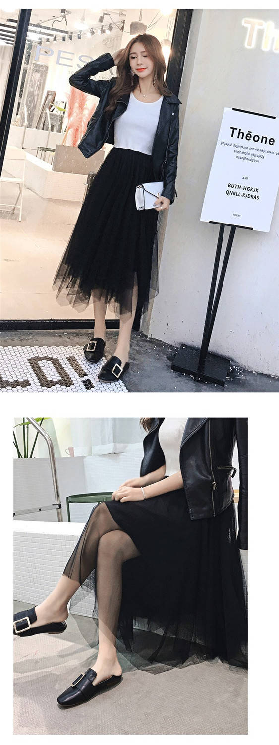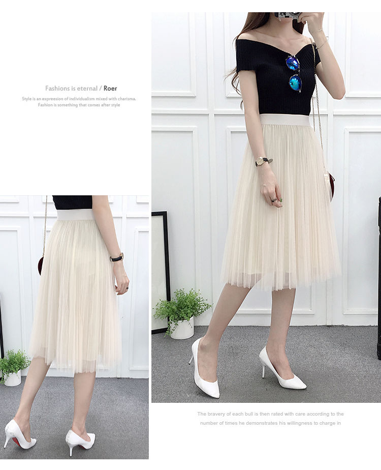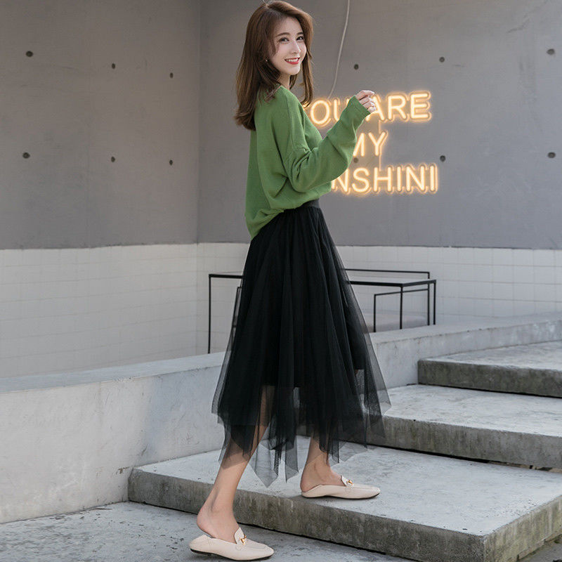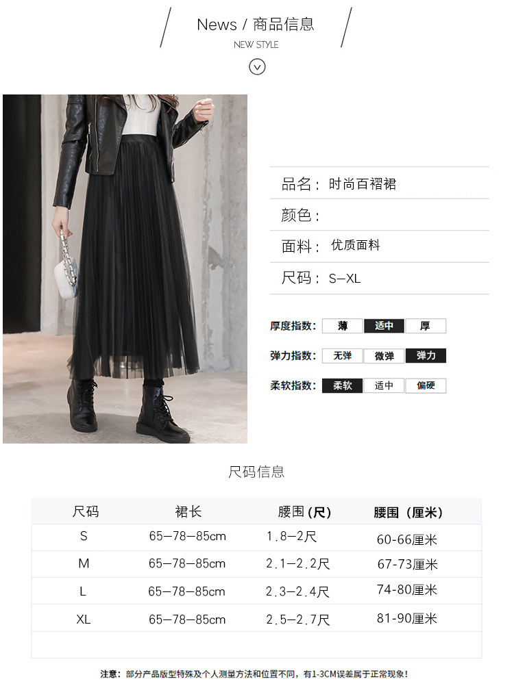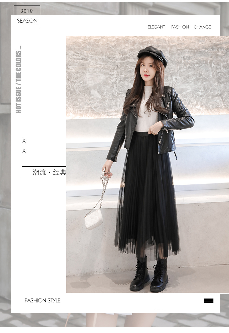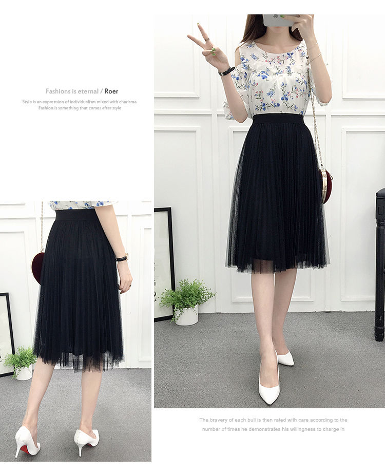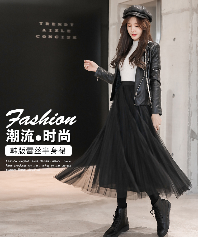 Fleece mesh skirt 2025 winter new high-waisted slimming mid-length fairy A-line pleated skirt