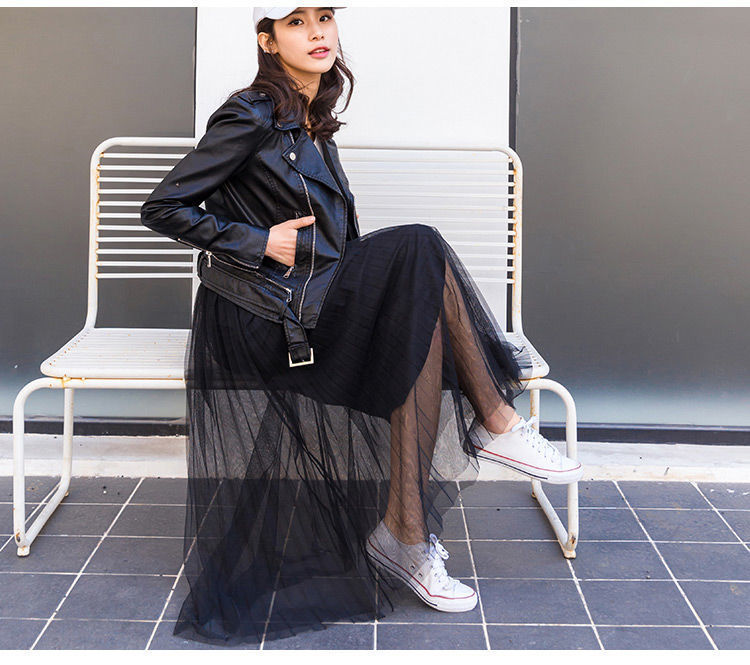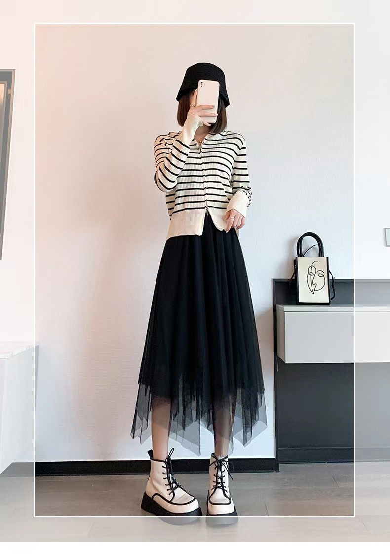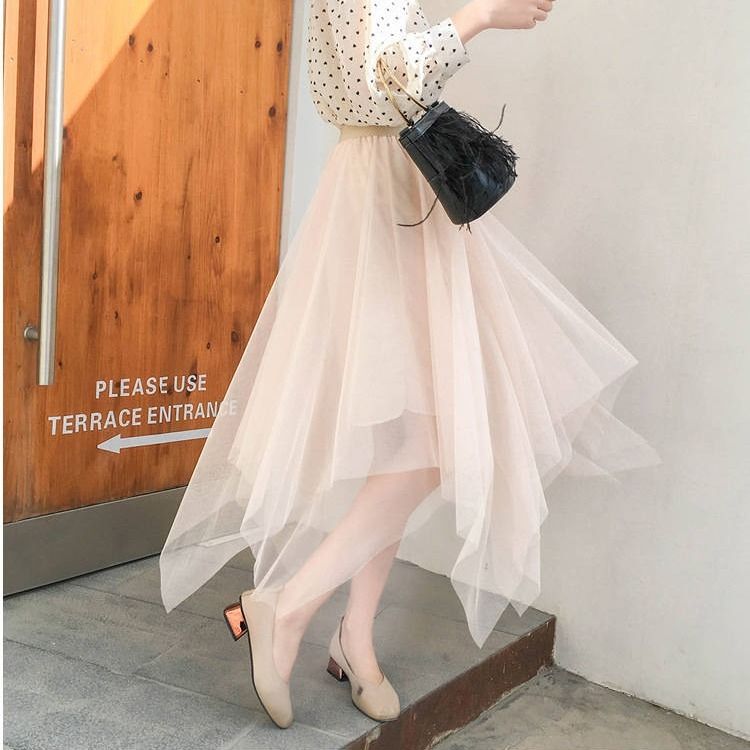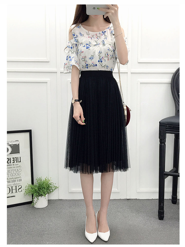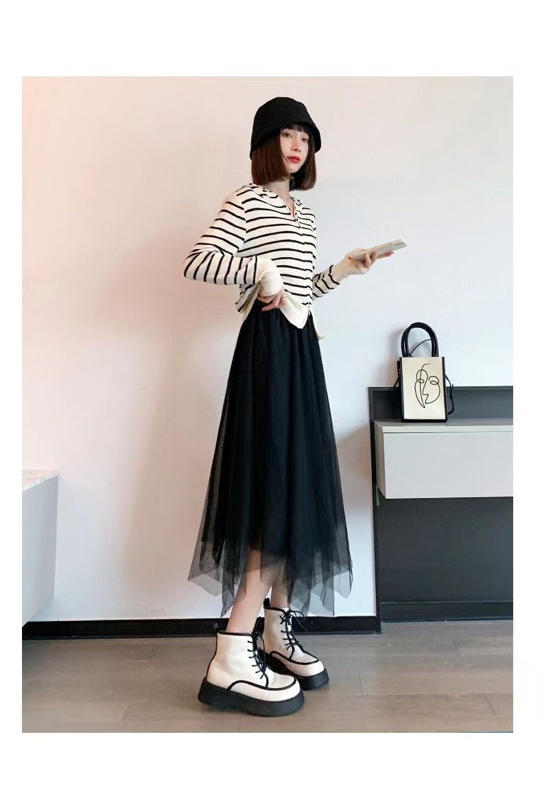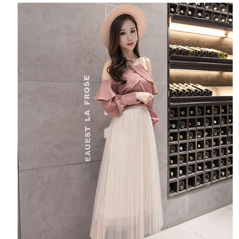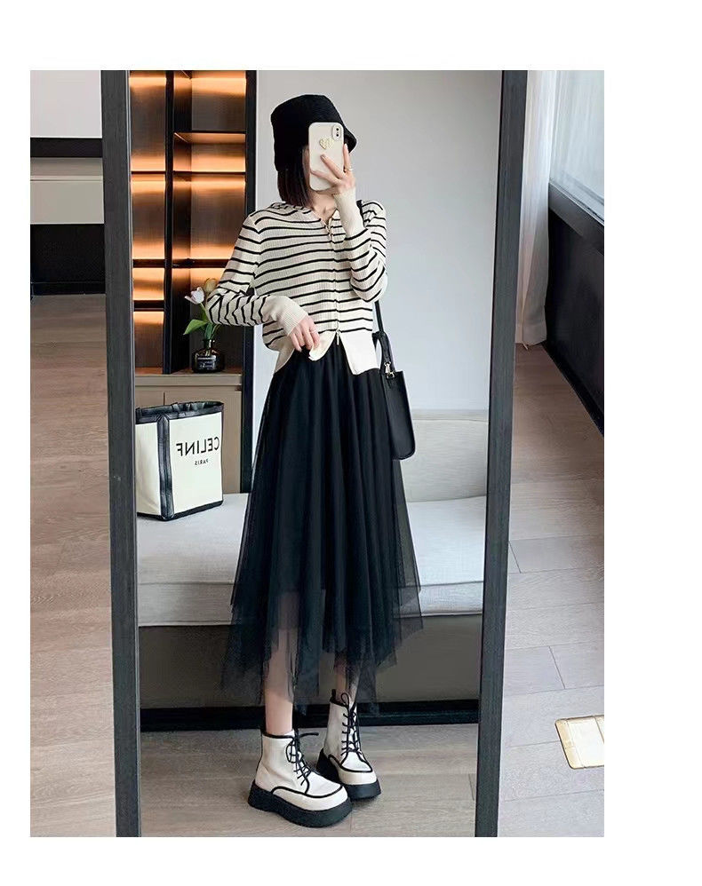 Fleece mesh skirt 2025 winter new high-waisted slimming mid-length fairy A-line pleated skirt