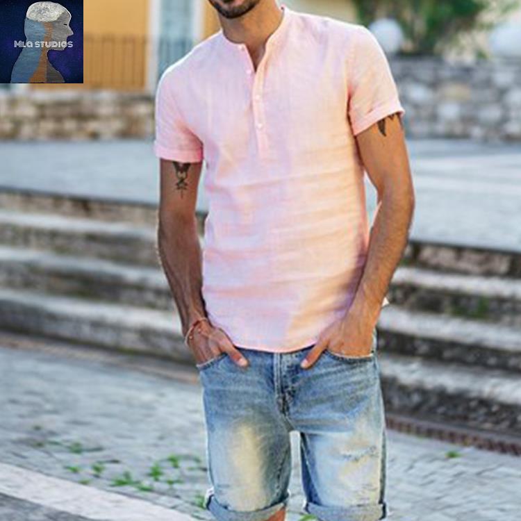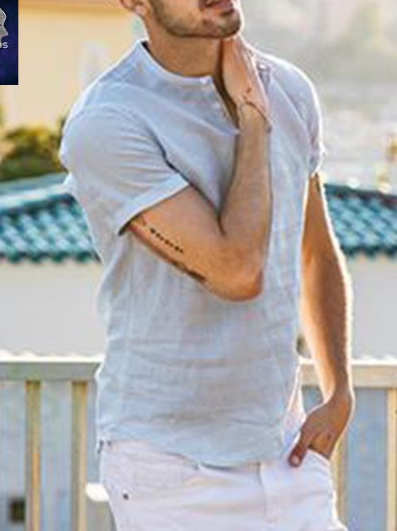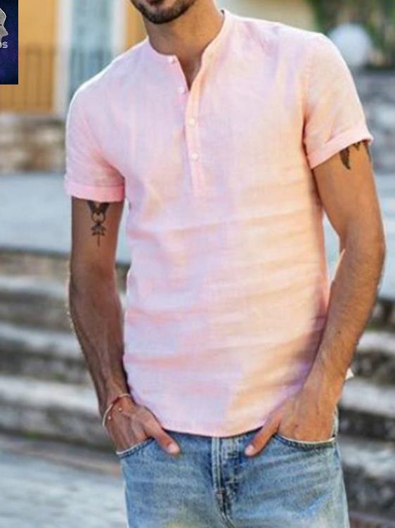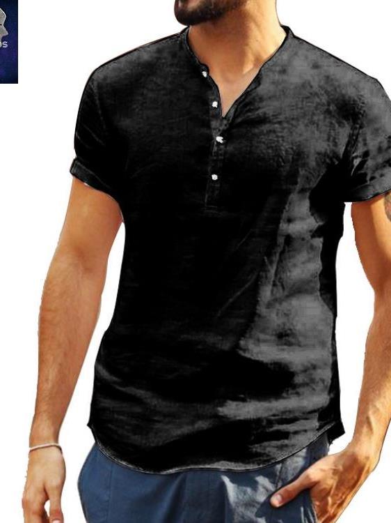 Summer new personality short-sleeved T-shirt men's solid color wild European and American V-neck tops trendy Clothes Men Shirts