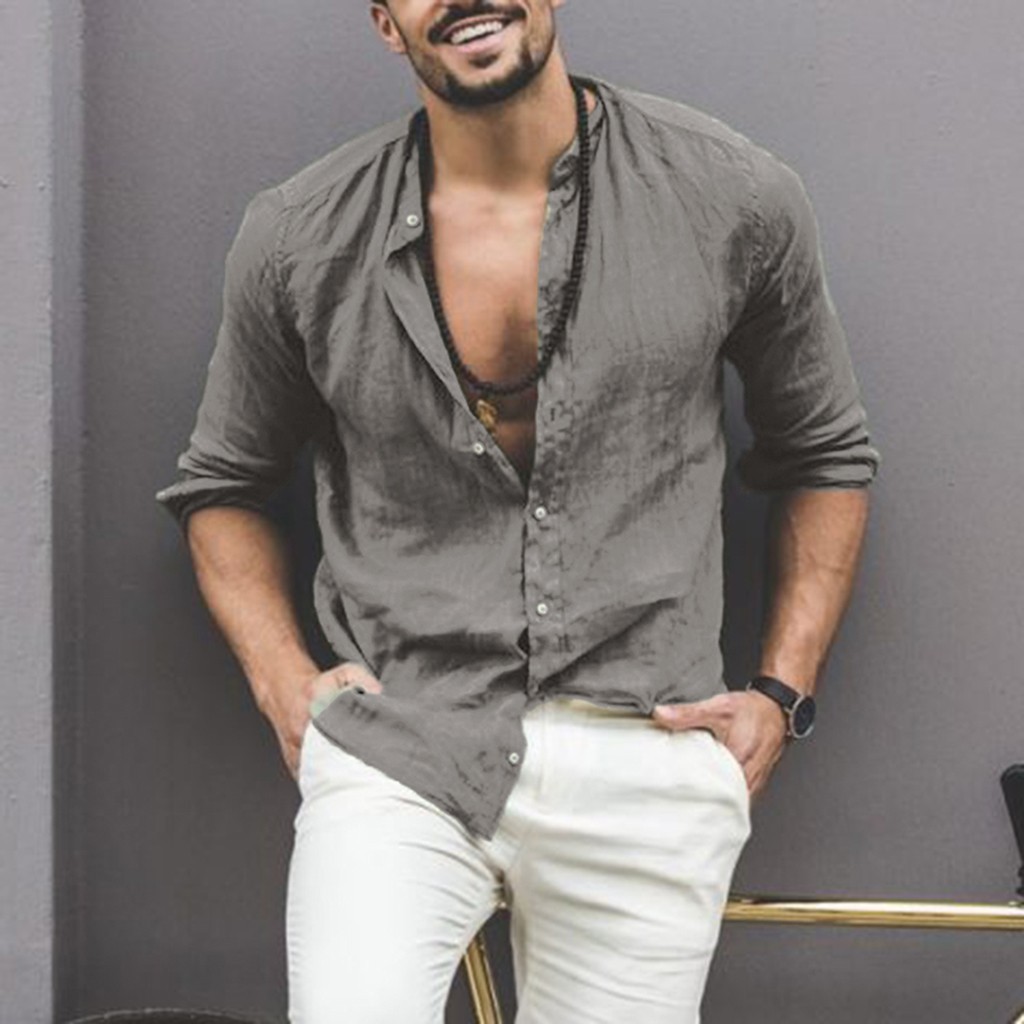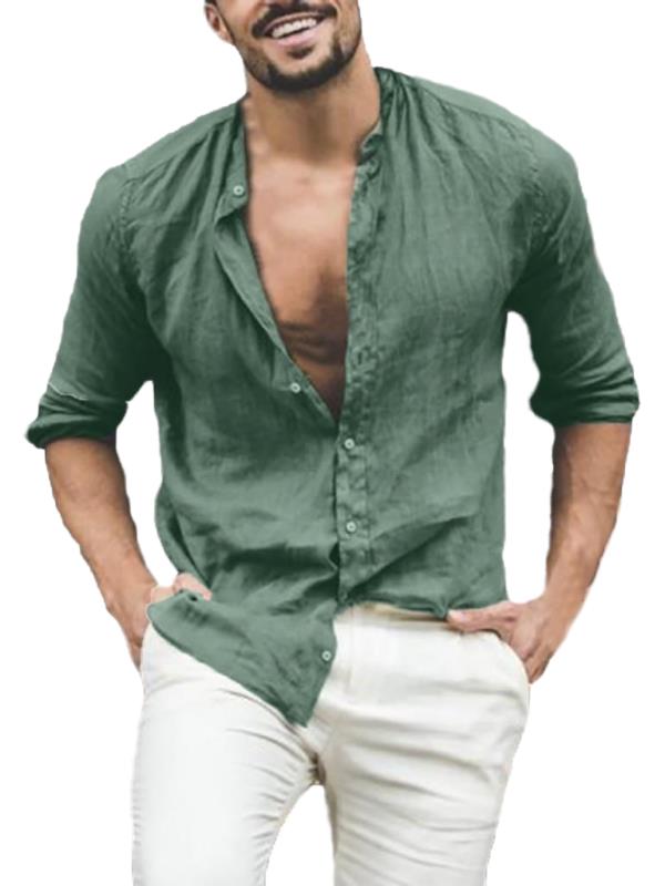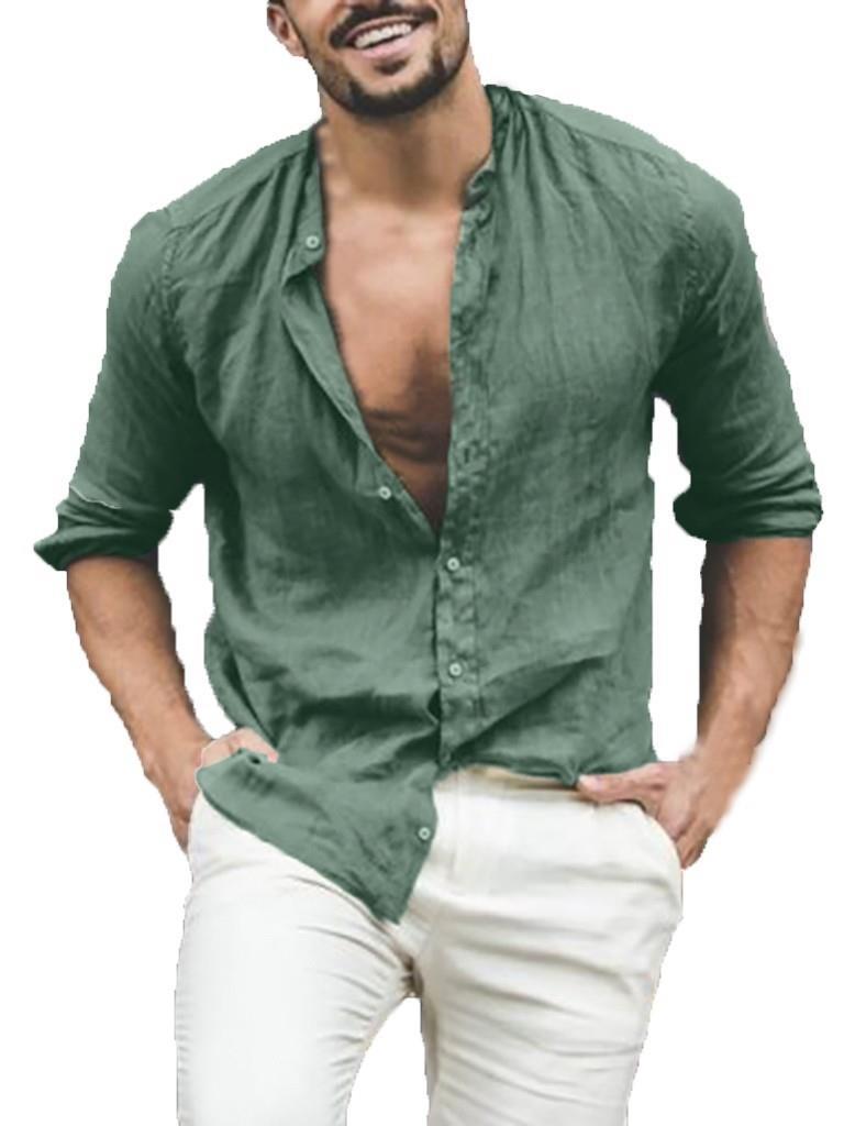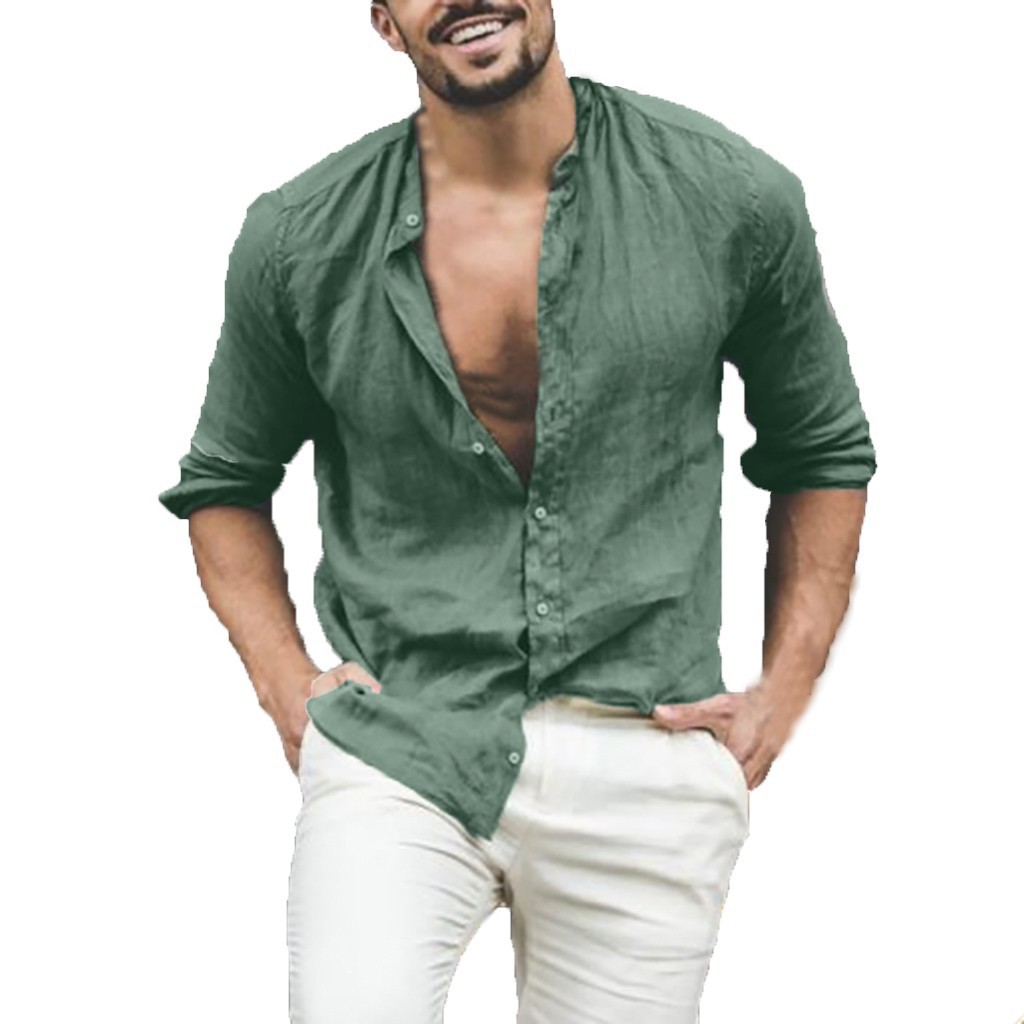 Men shirt 2025 European and American hot personality imitation cotton and linen long-sleeved shirt men's thin casual loose shirt tide